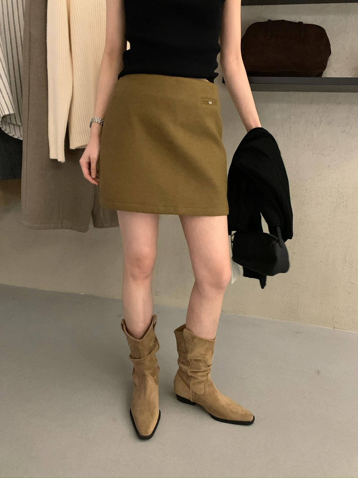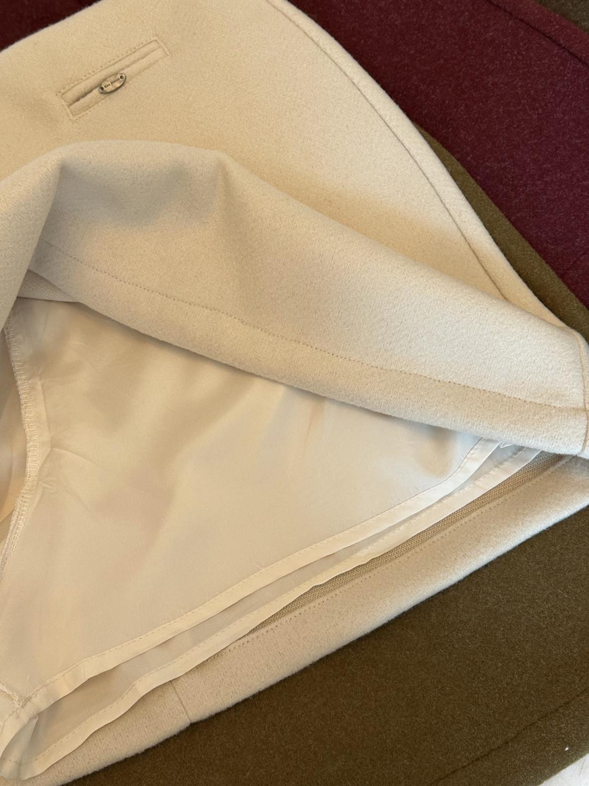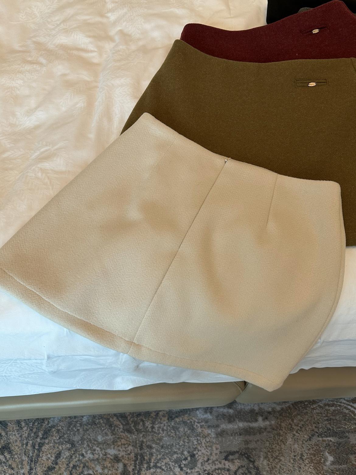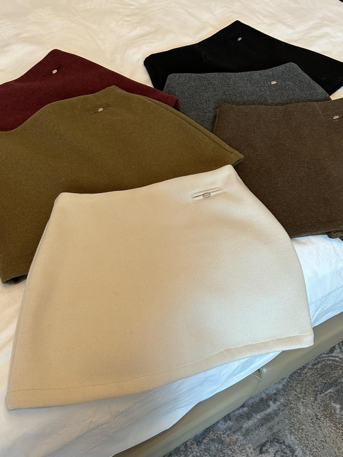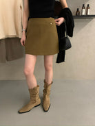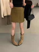 3. 【C8324】簡約氣質中腰呢料a字短裙半身裙-芥綠