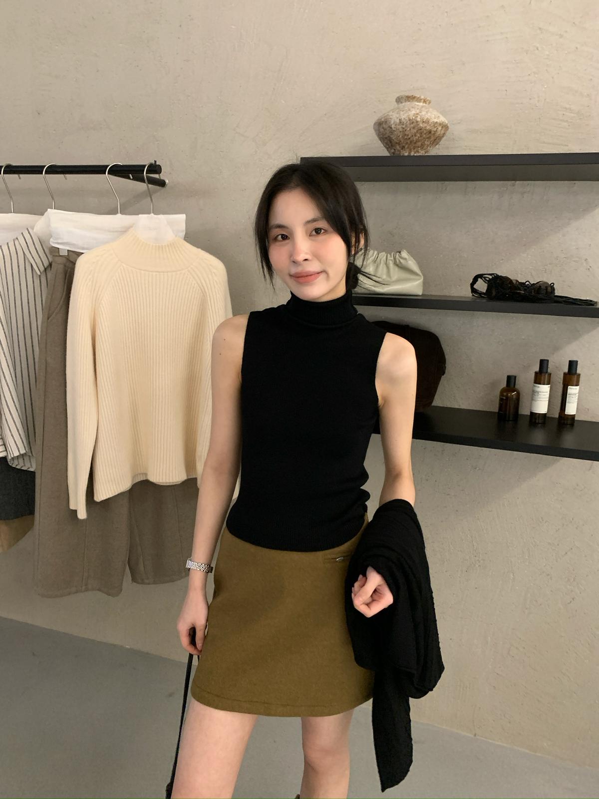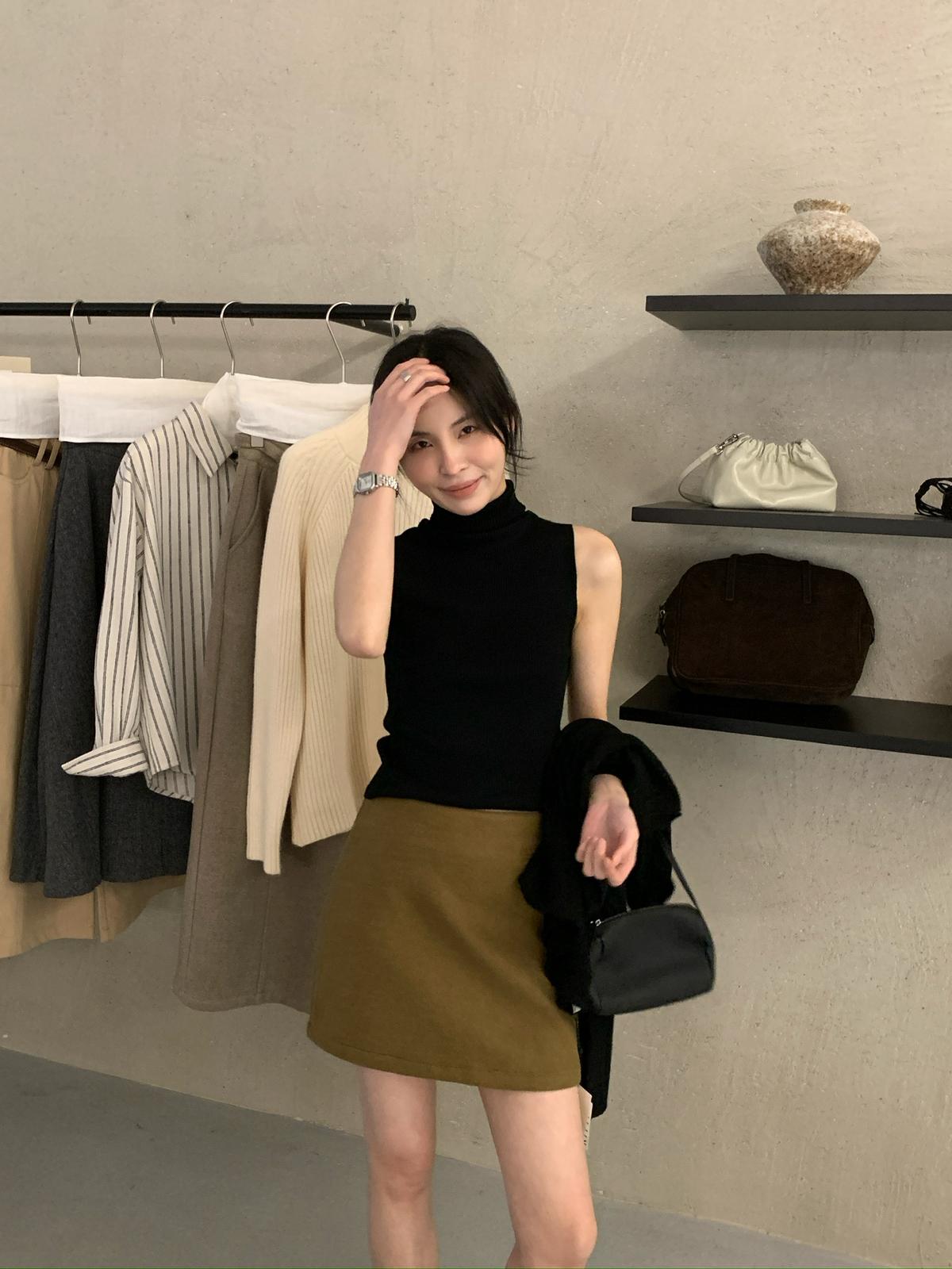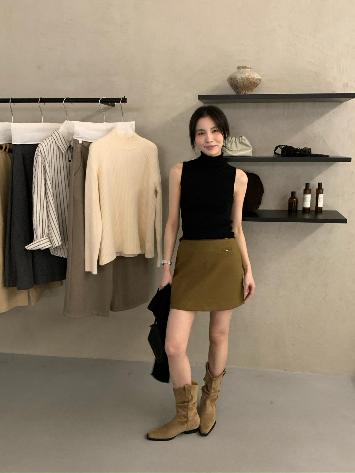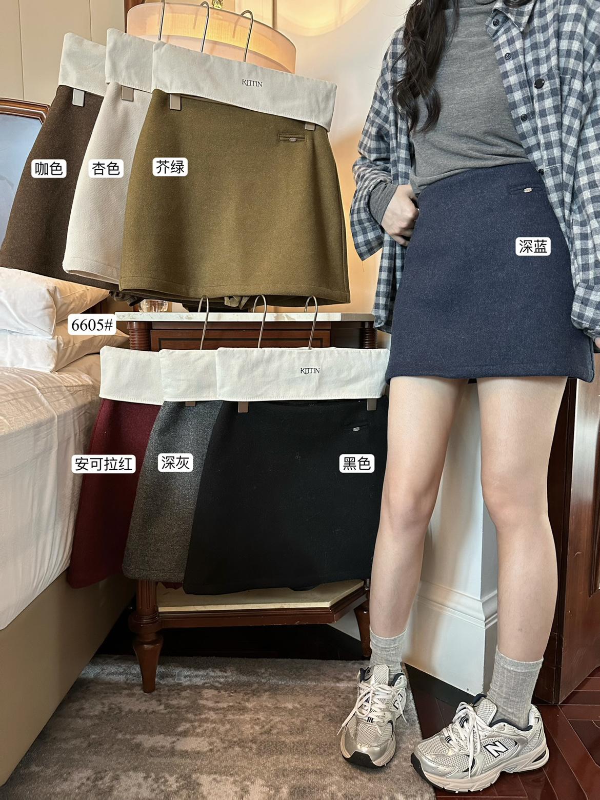 3. 【C8324】簡約氣質中腰呢料a字短裙半身裙-芥綠