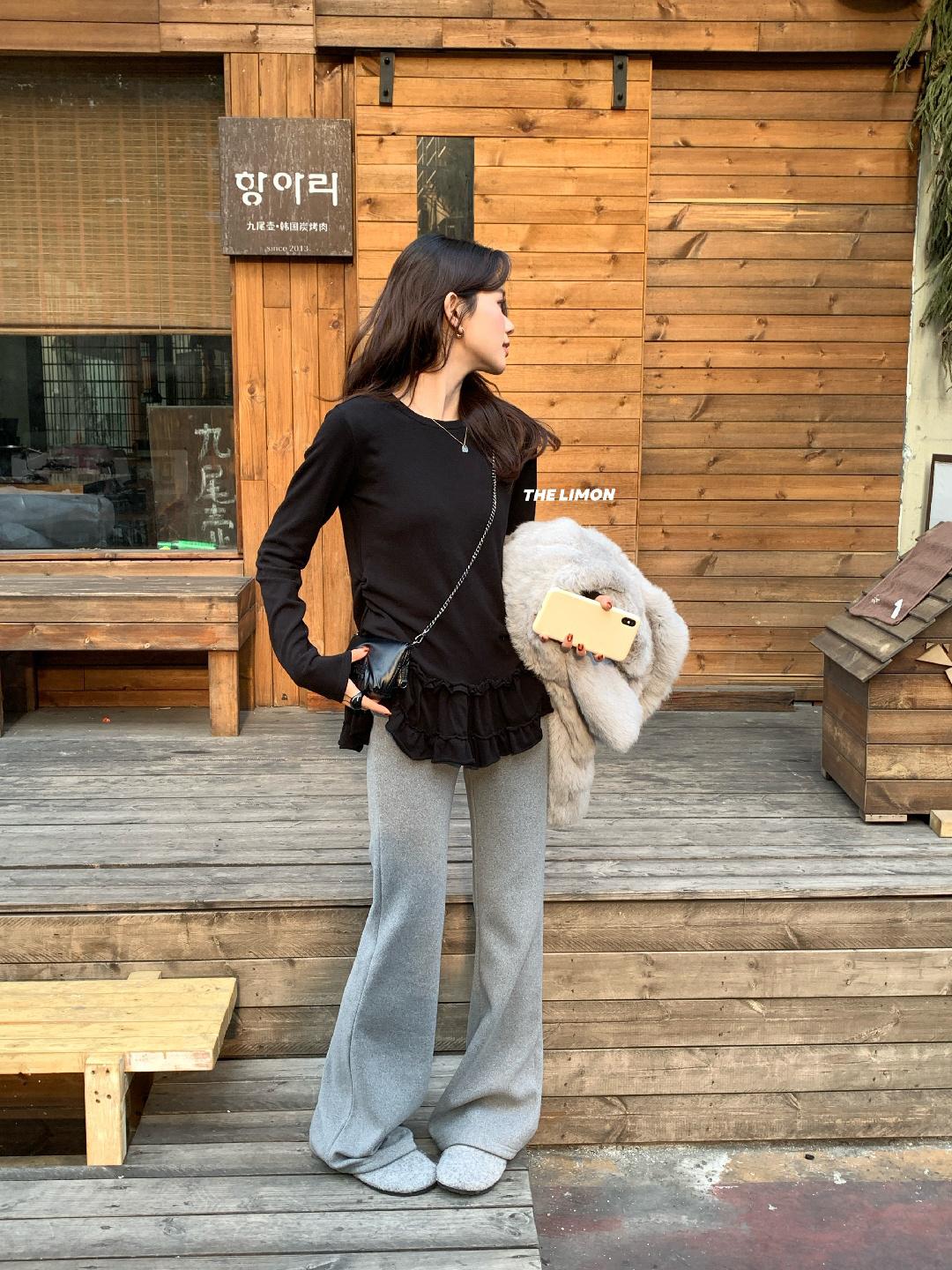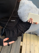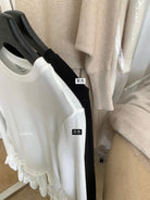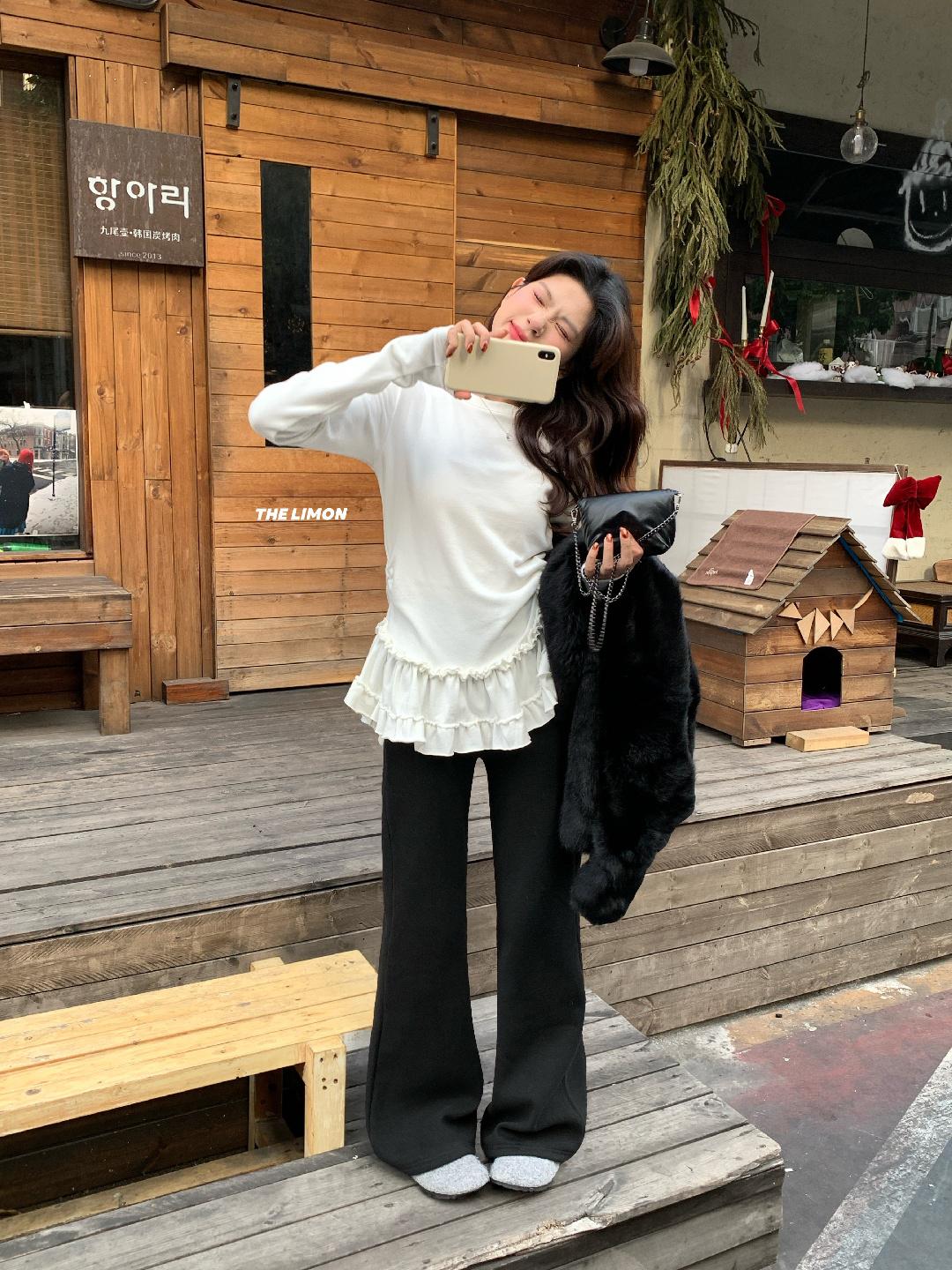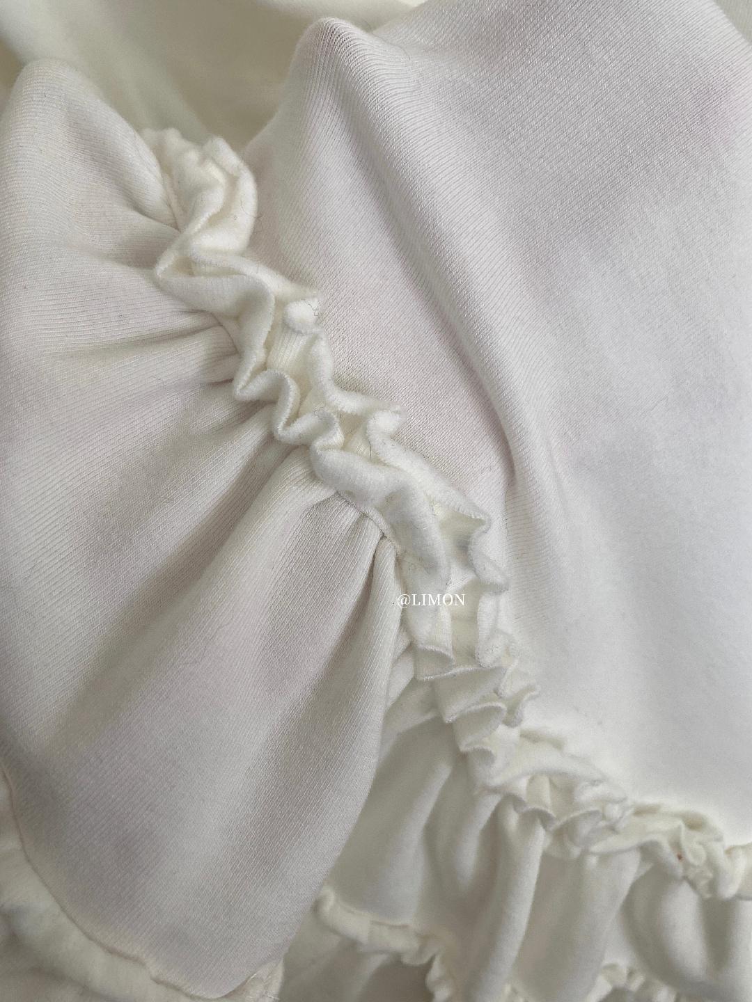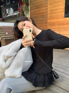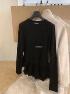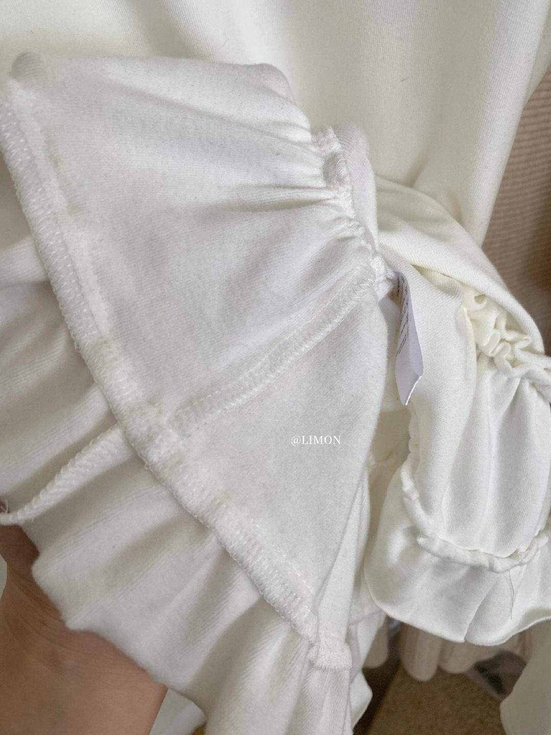 【C8332】設計感芭蕾花邊裙襬圓領抓毛長袖T恤