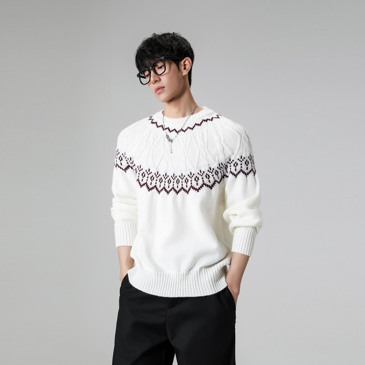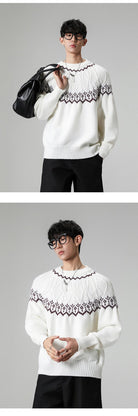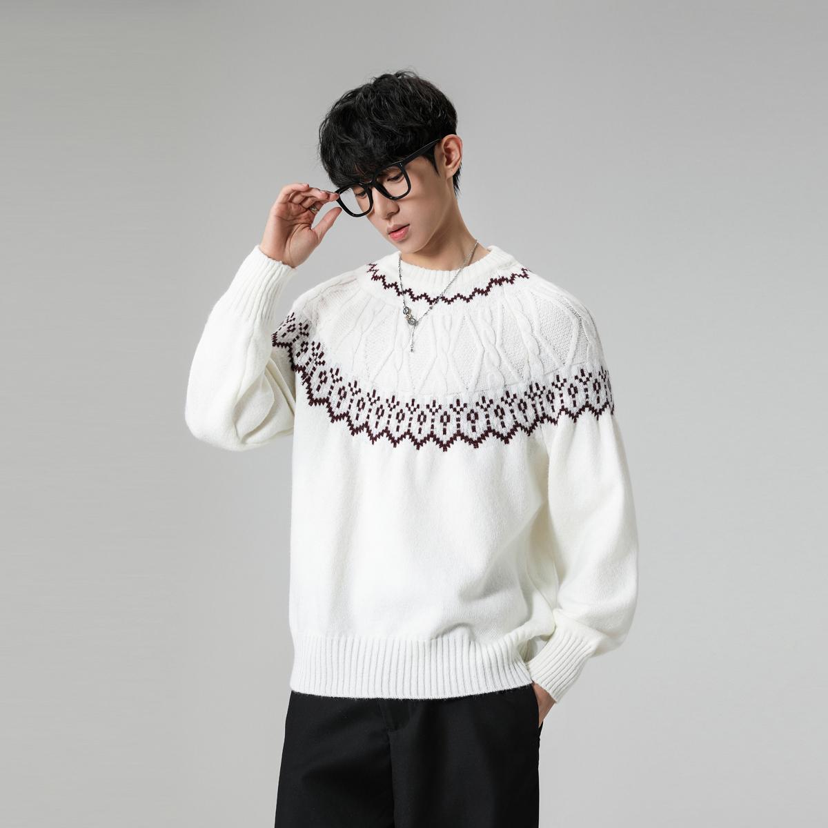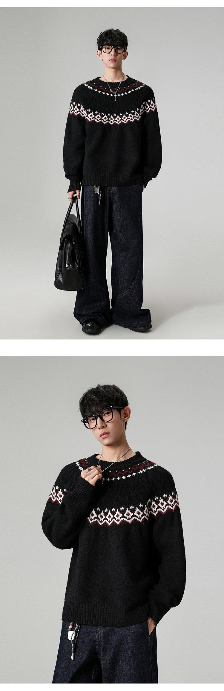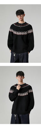 【YS2679】北歐風圓領寬鬆提花圖案長袖保暖毛衣