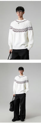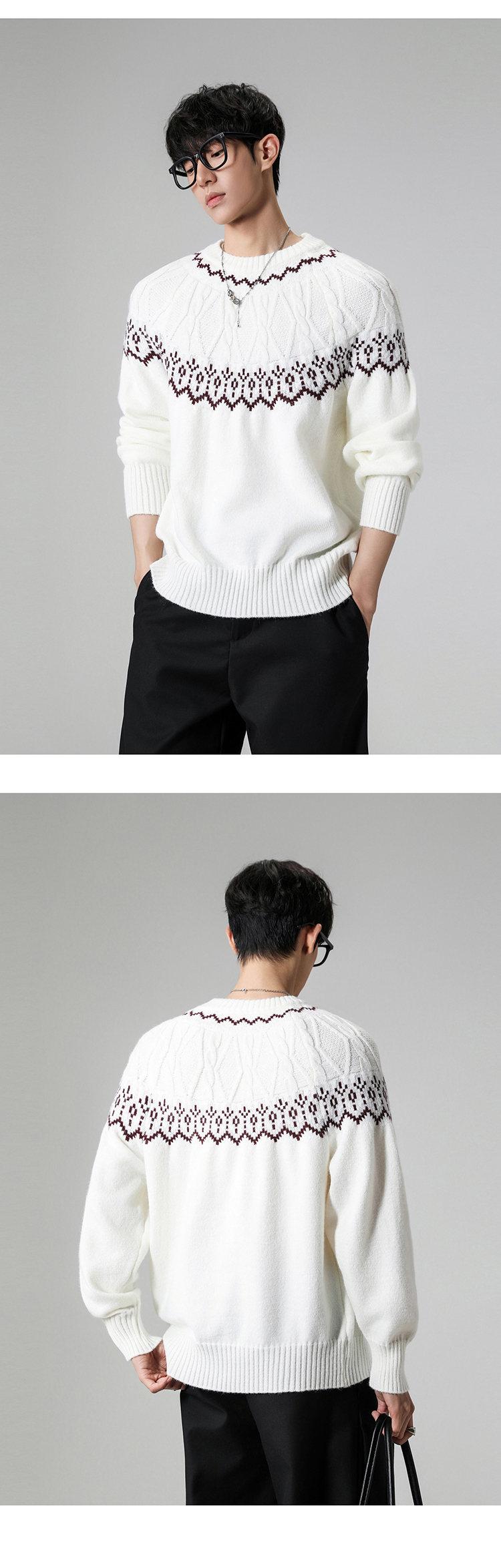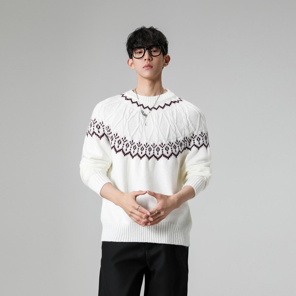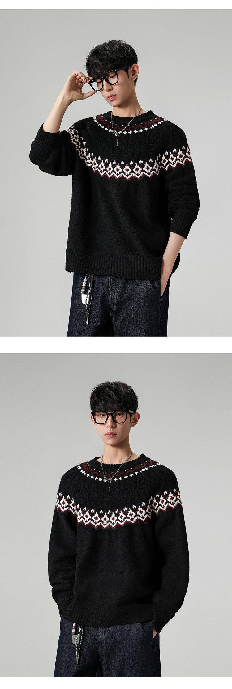 【YS2679】北歐風圓領寬鬆提花圖案長袖保暖毛衣