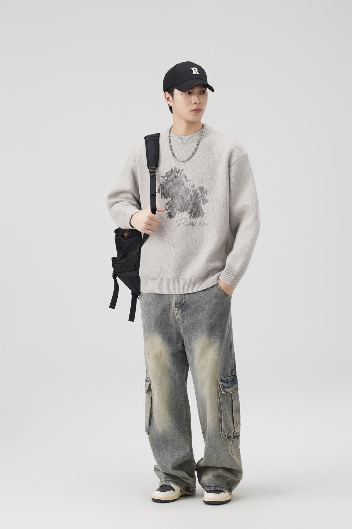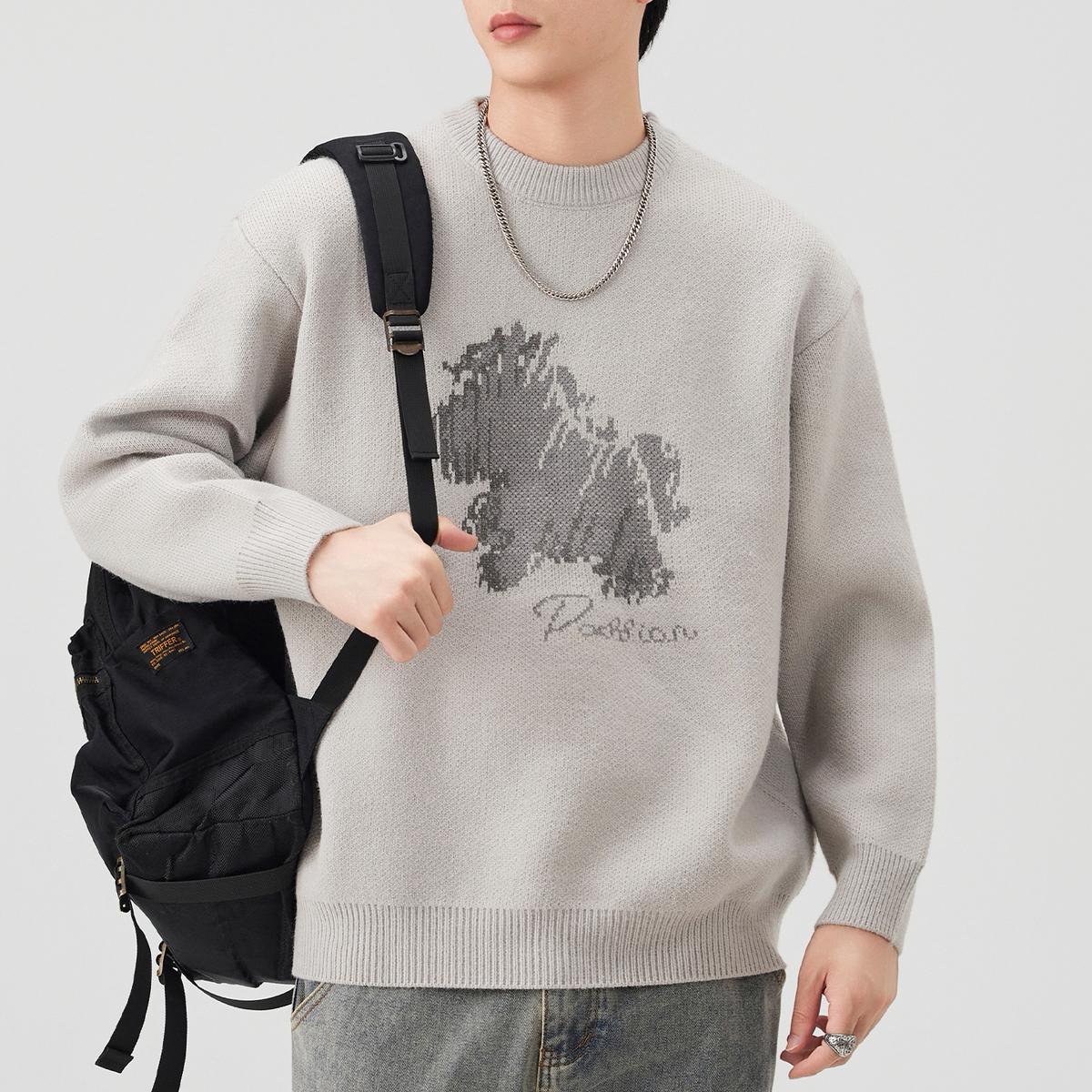 【YS2683】潮流基礎百搭提花舒適圓領保暖毛衣