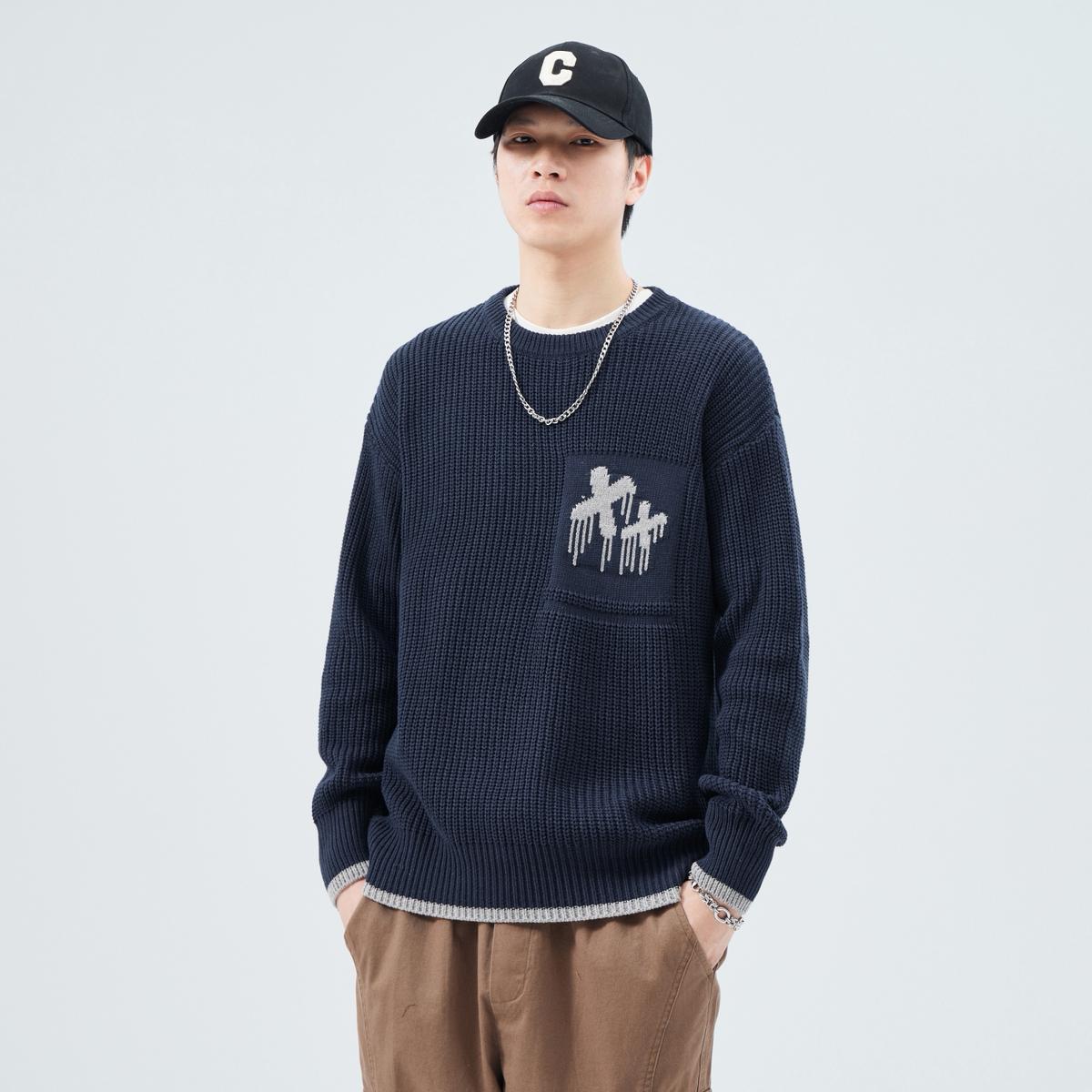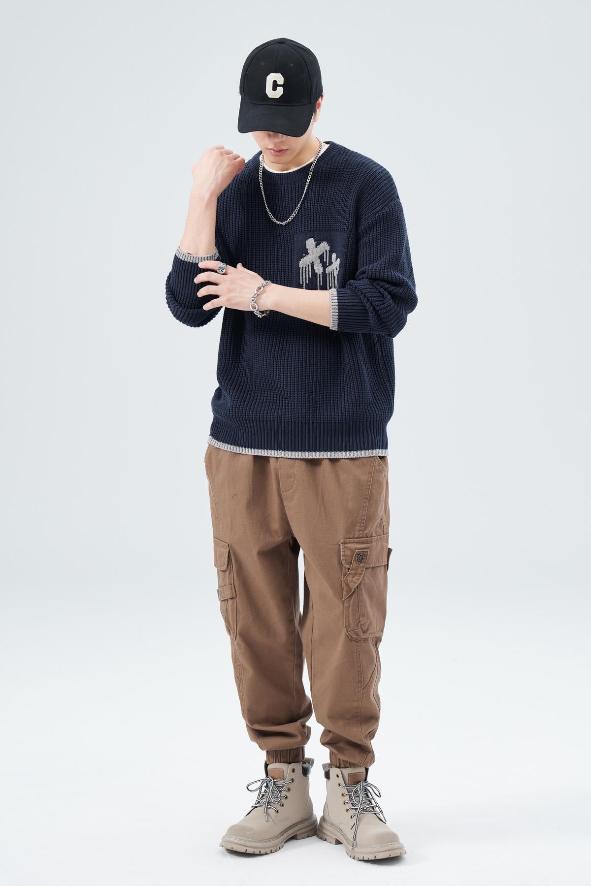 【YS2685】潮牌舒適品質拼接撞色親膚保暖毛衣