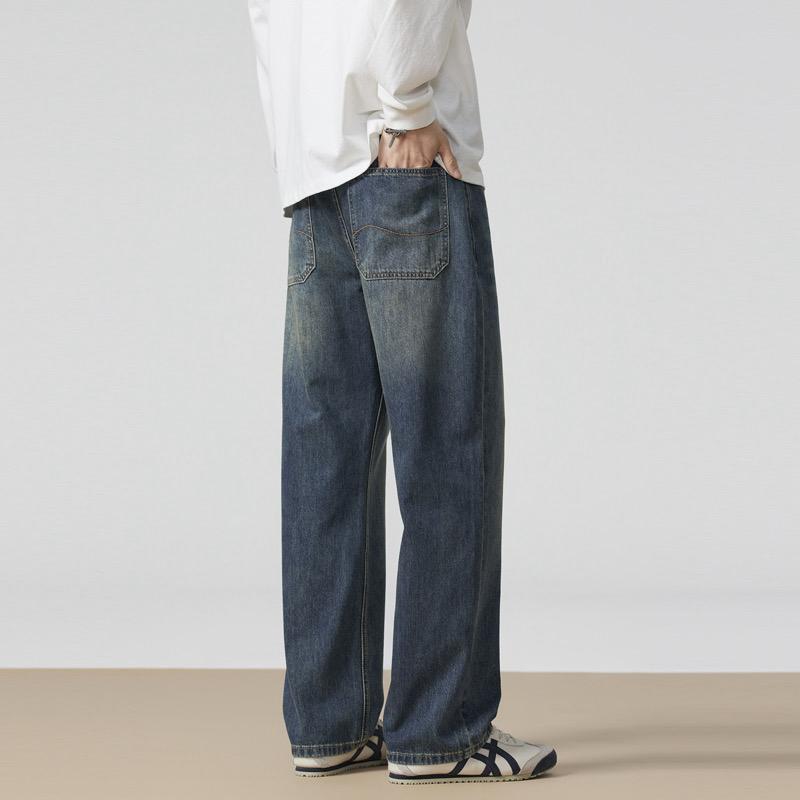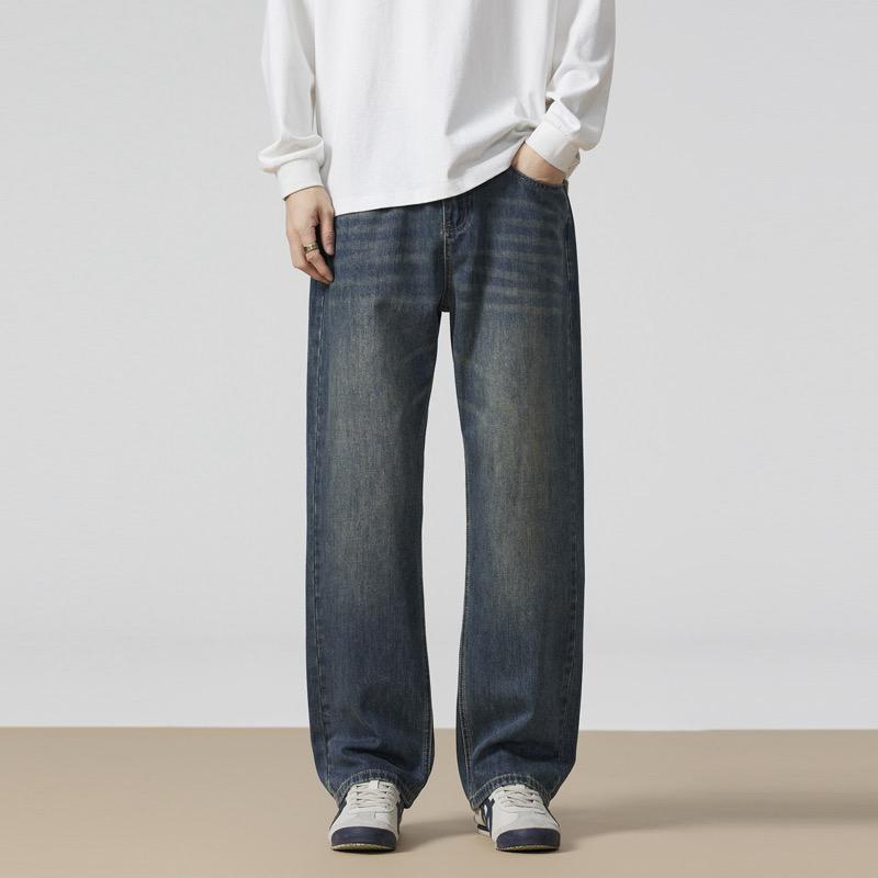 【YS2693】潮牌基礎百搭直筒寬鬆水洗牛仔褲