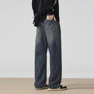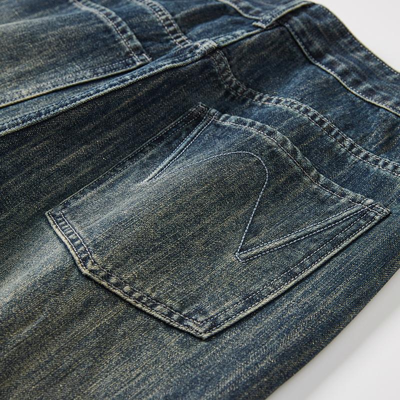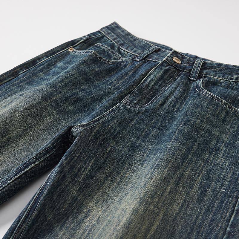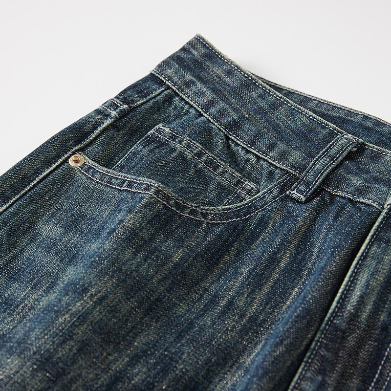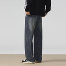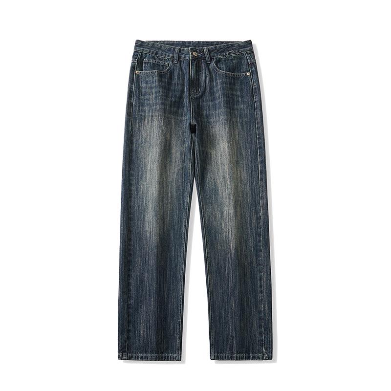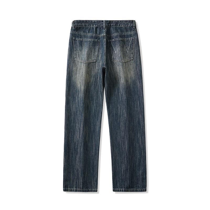 【YS2694】潮牌復古竹節紋棉簡約基礎百搭水洗寬鬆牛仔褲
