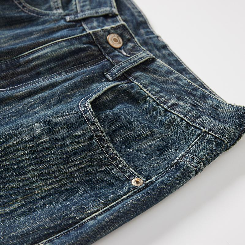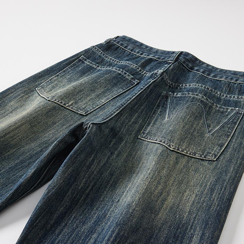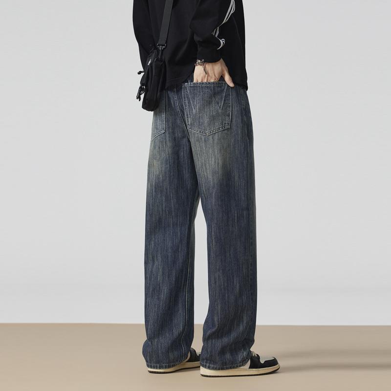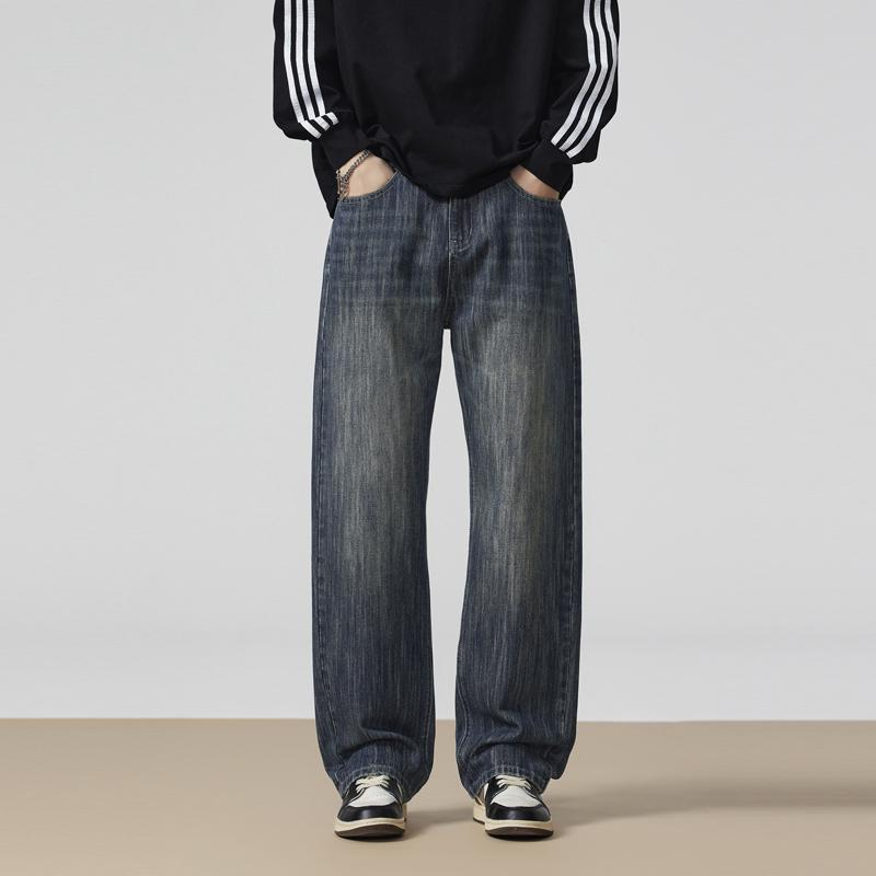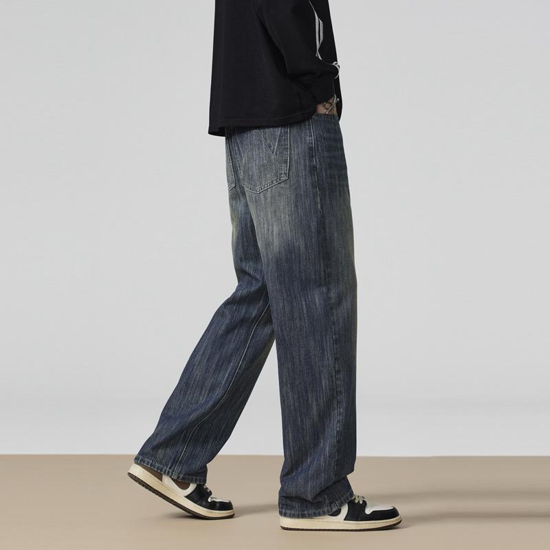 3. 【YS2694】潮牌復古竹節紋棉簡約基礎百搭水洗寬鬆牛仔褲