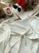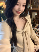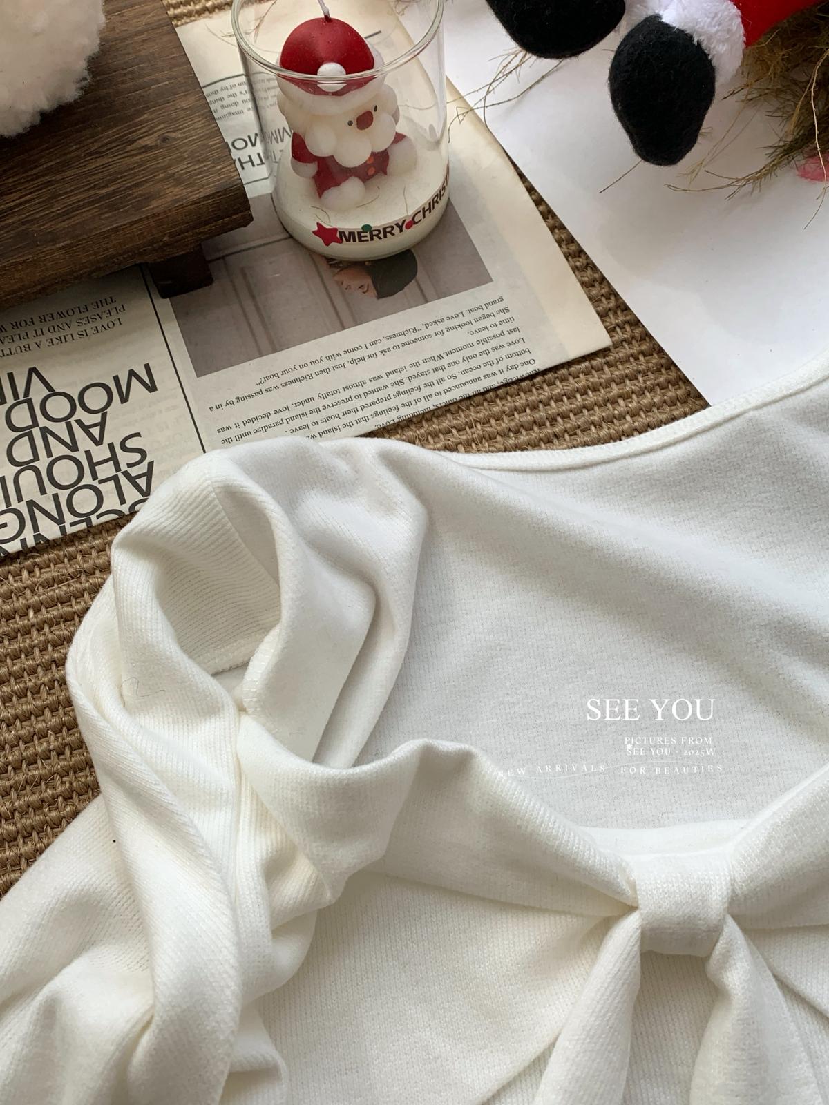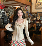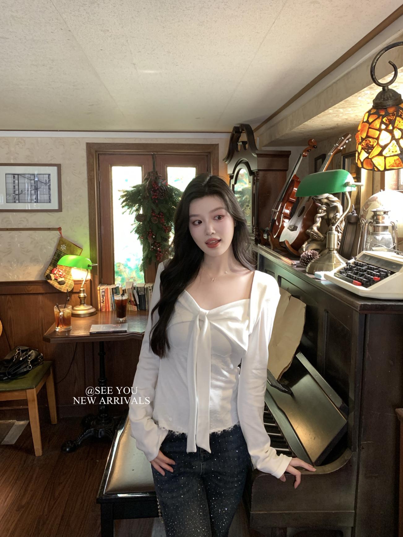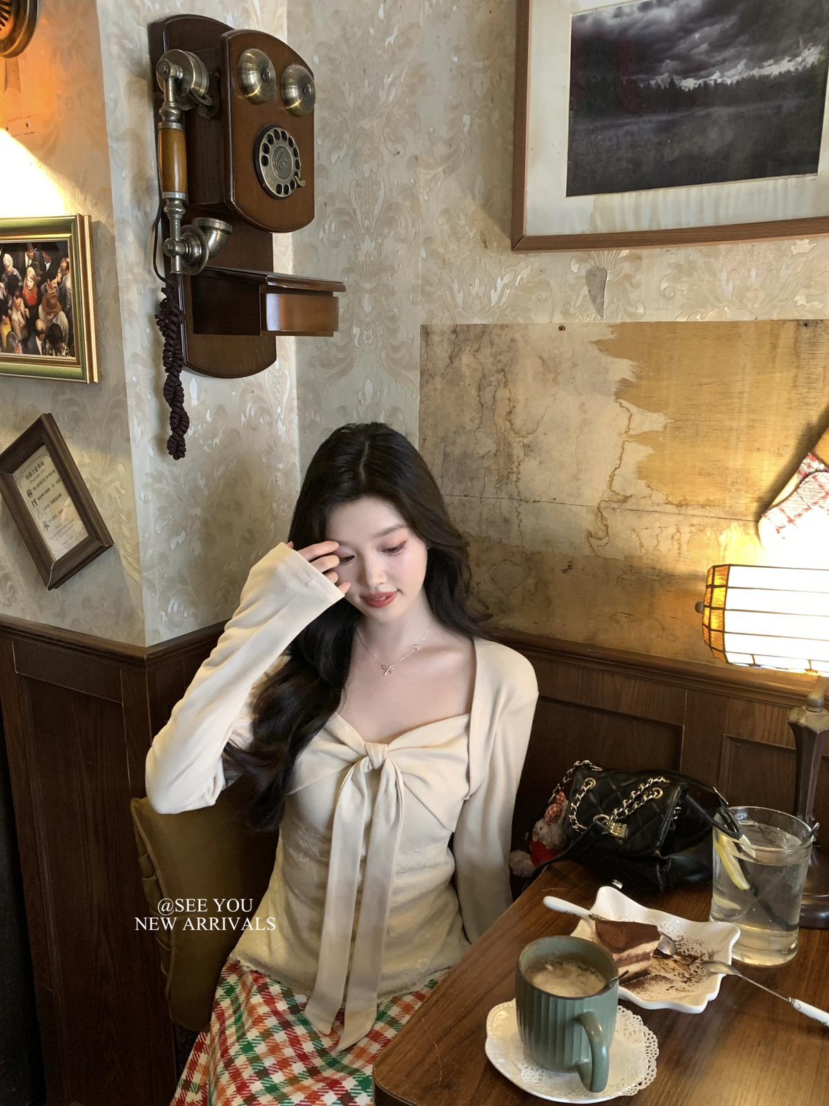 【C8338】迪士尼在逃公主丨法式復古綁帶氣質蕾絲修身薄絨小衫