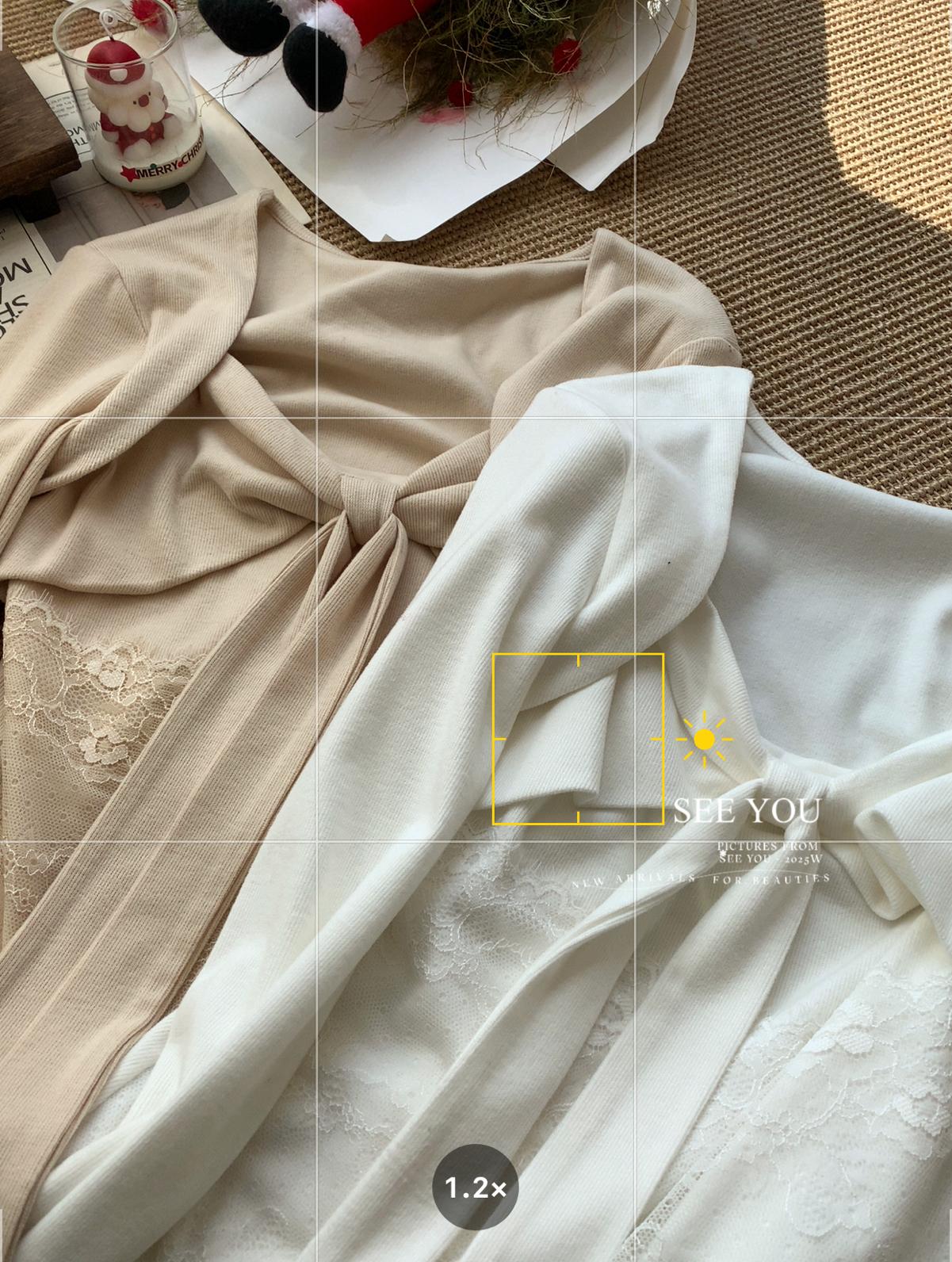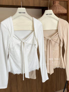 3. 【C8338】迪士尼在逃公主丨法式復古綁帶氣質蕾絲修身薄絨小衫