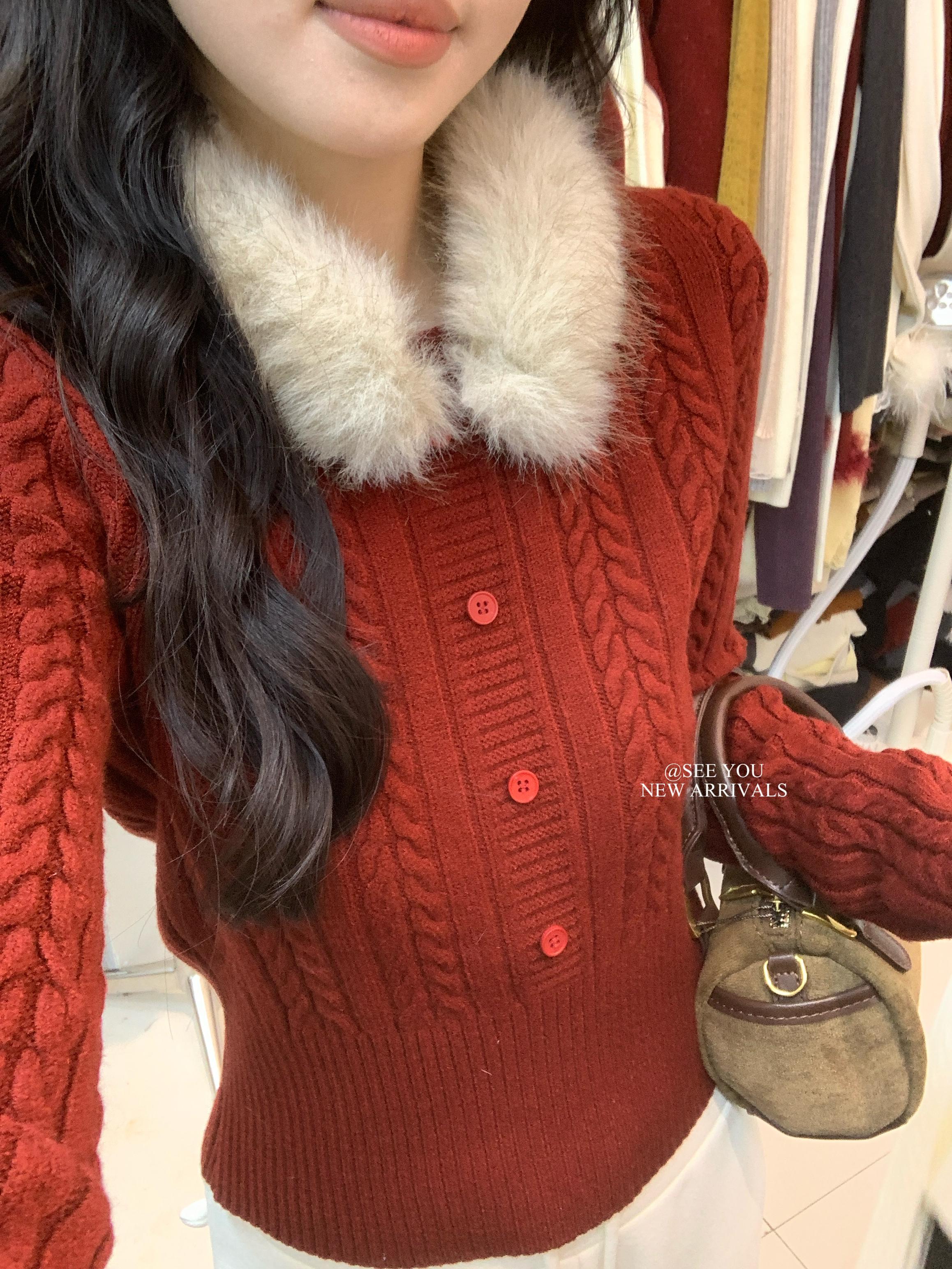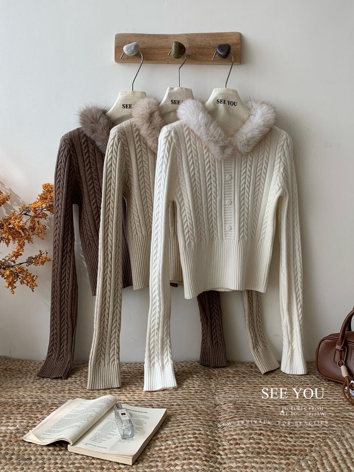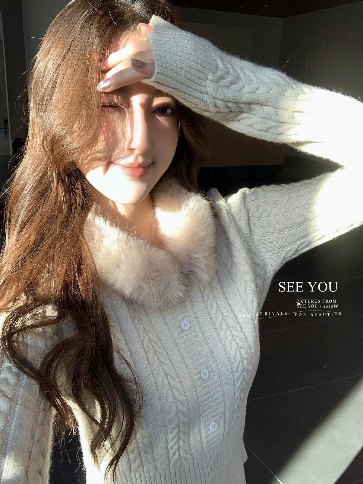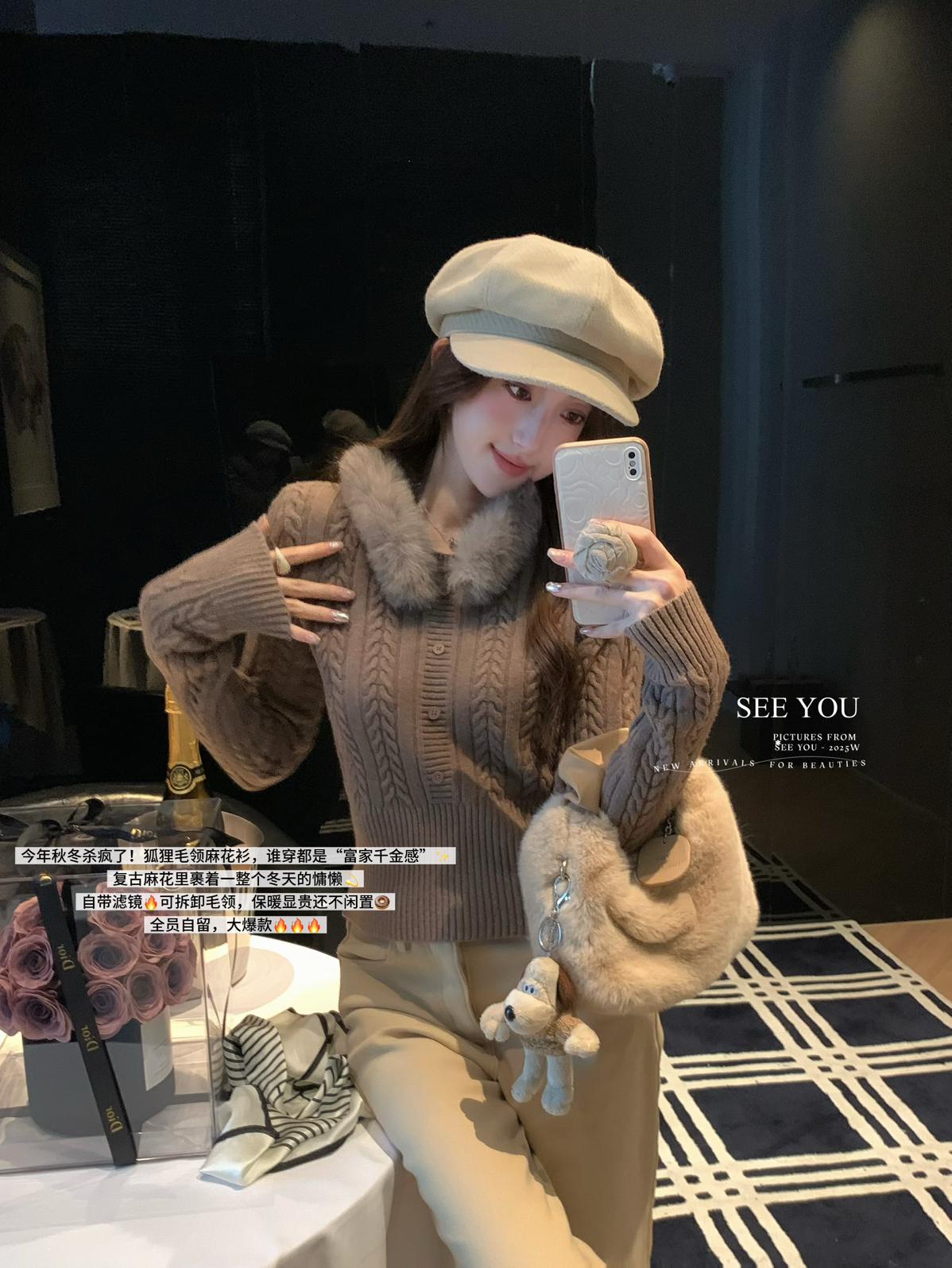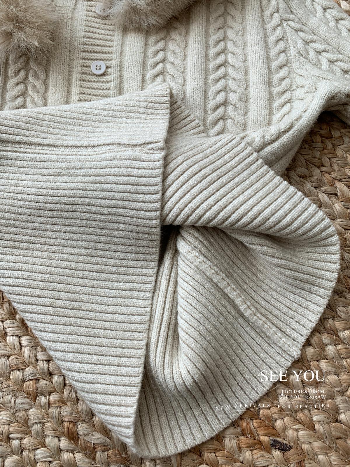 3. 【C8339】大美女出圈 毛毛領顯瘦保暖麻花編織針織毛衣(可拆環保毛領)