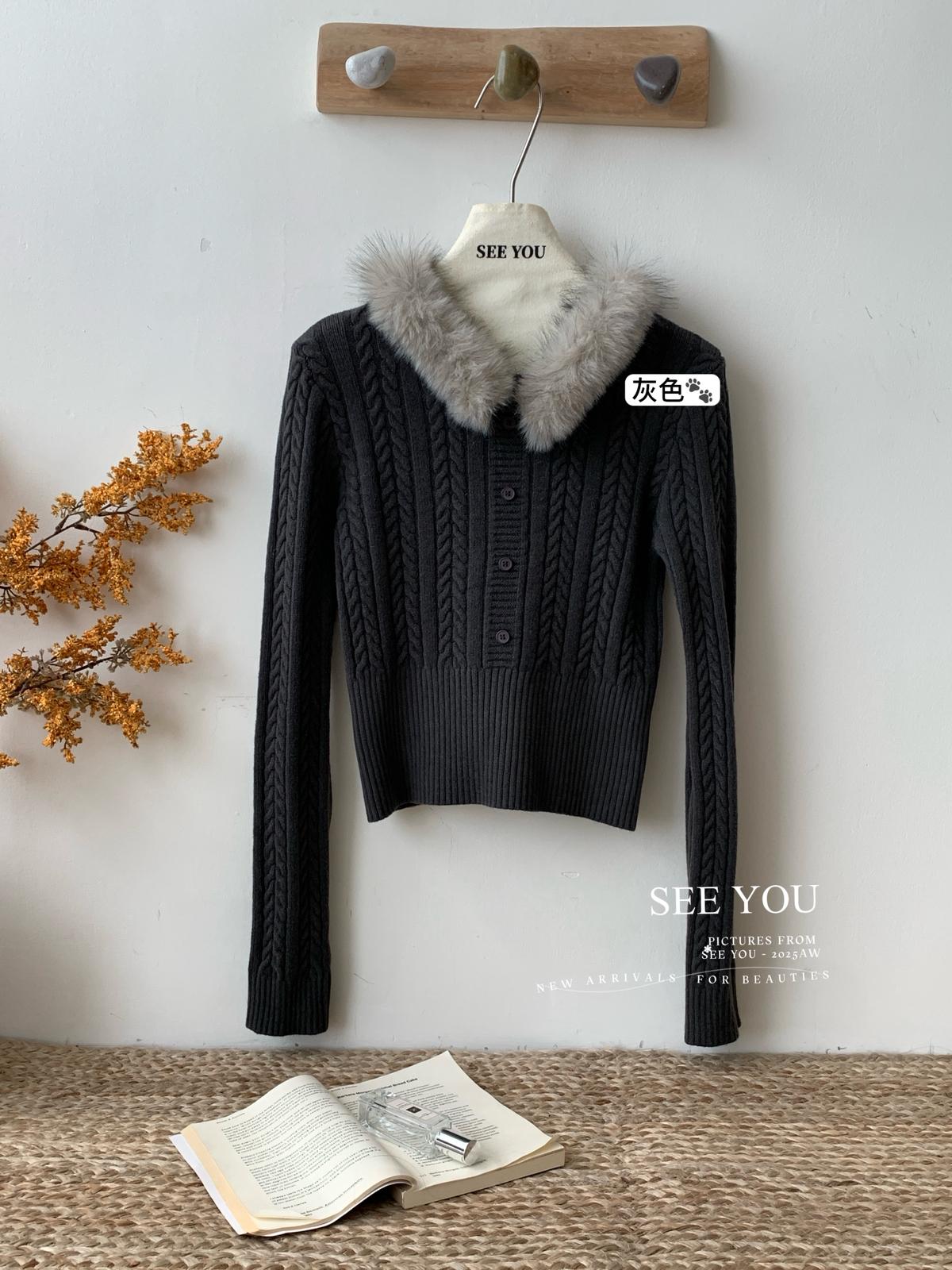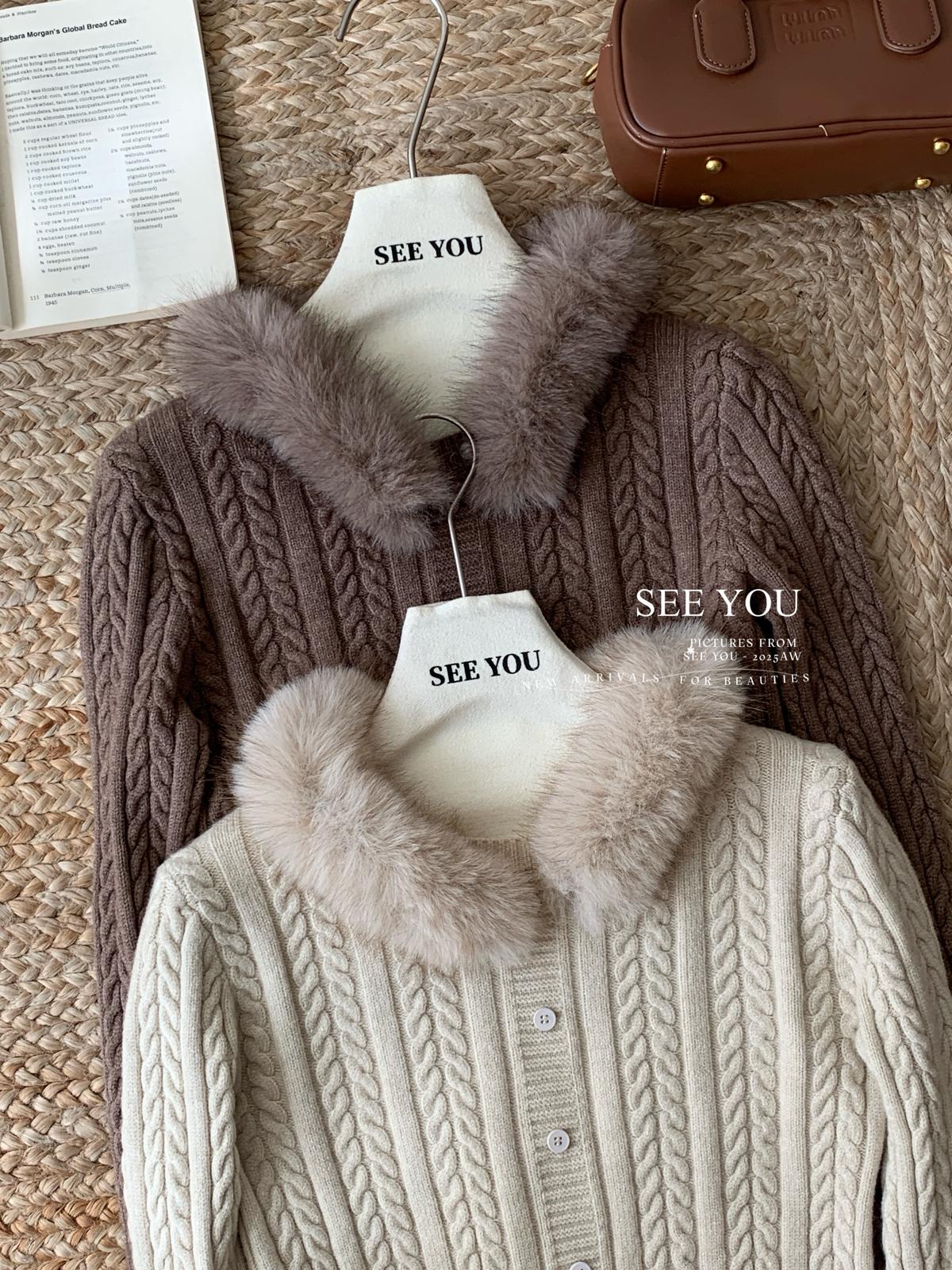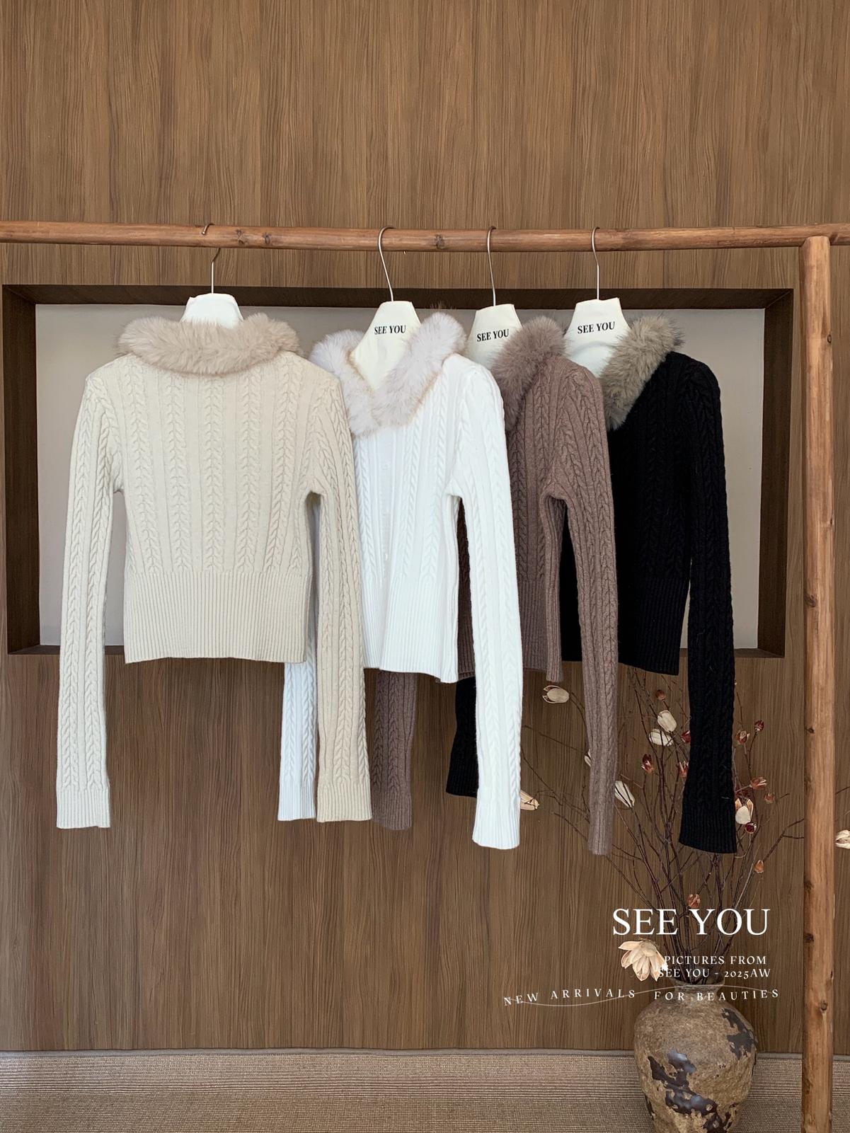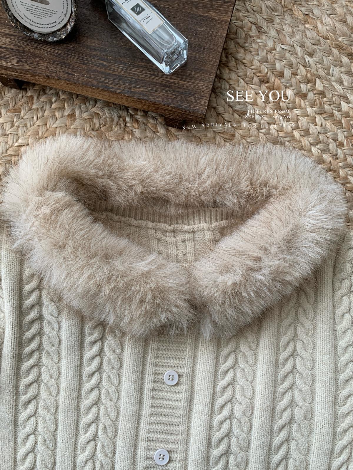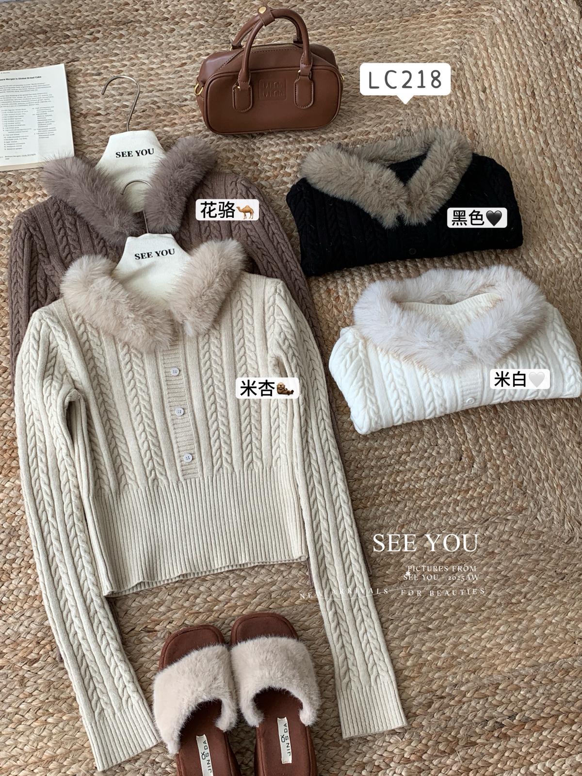 3. 【C8339】大美女出圈 毛毛領顯瘦保暖麻花編織針織毛衣(可拆環保毛領)