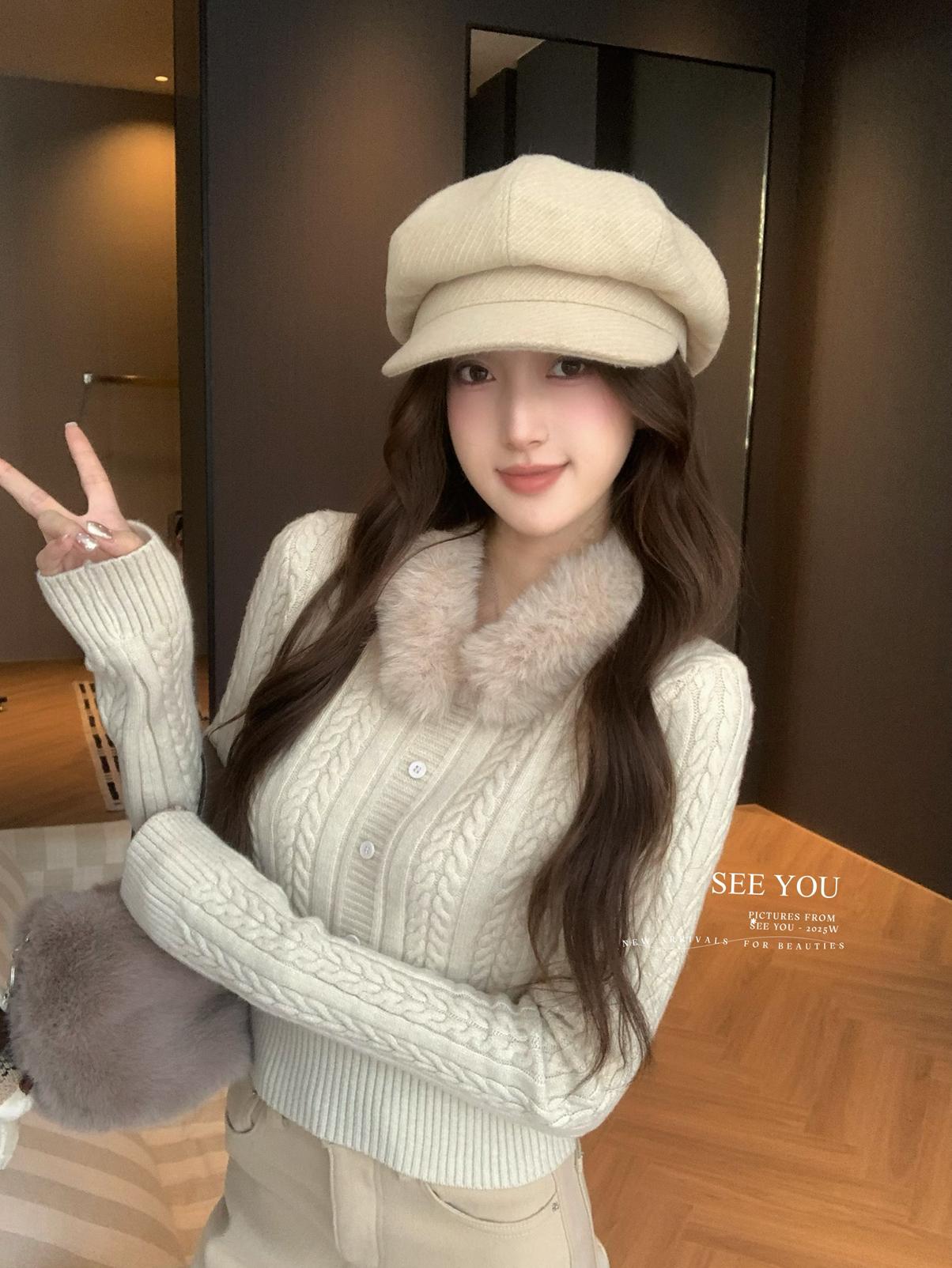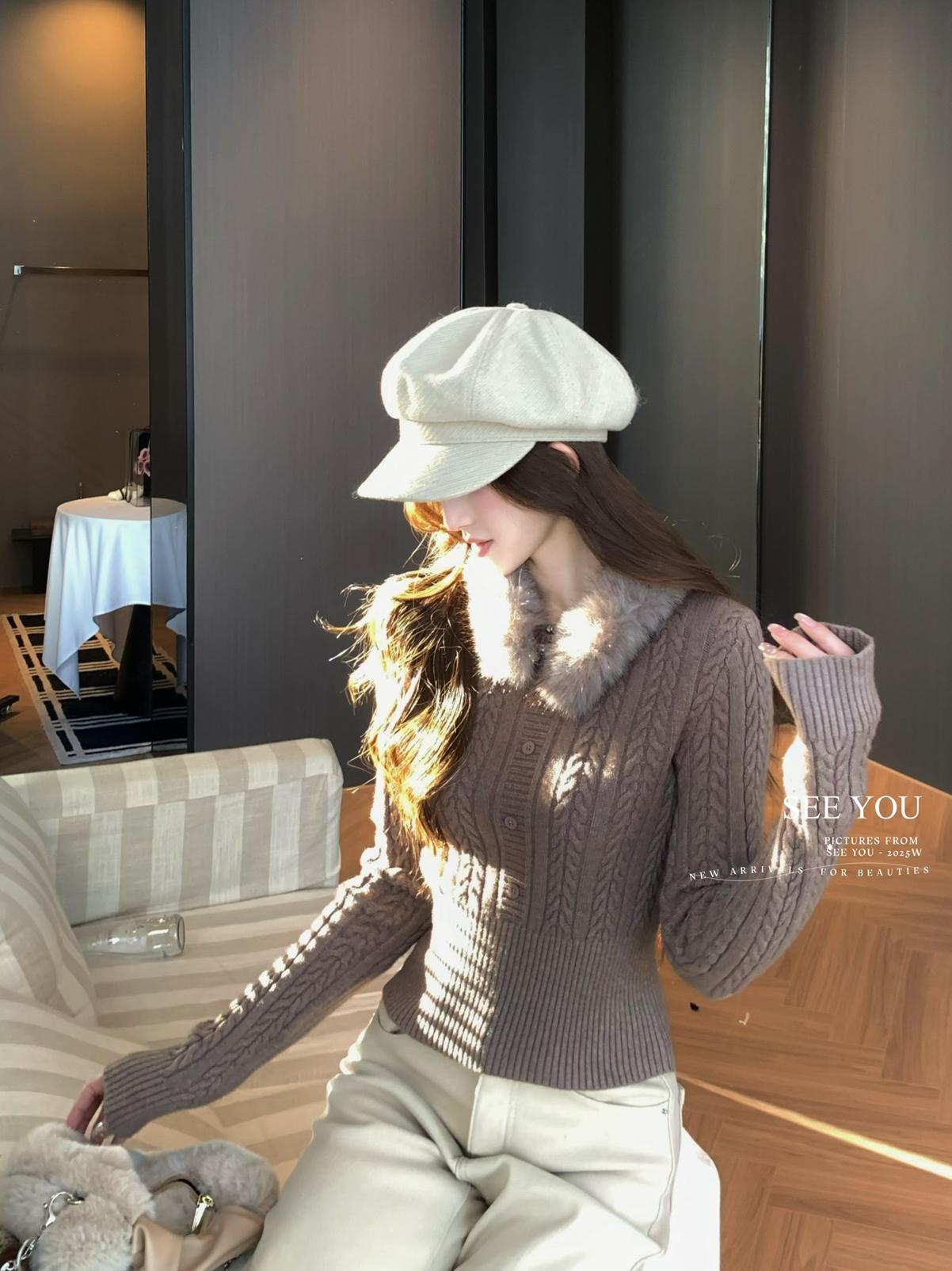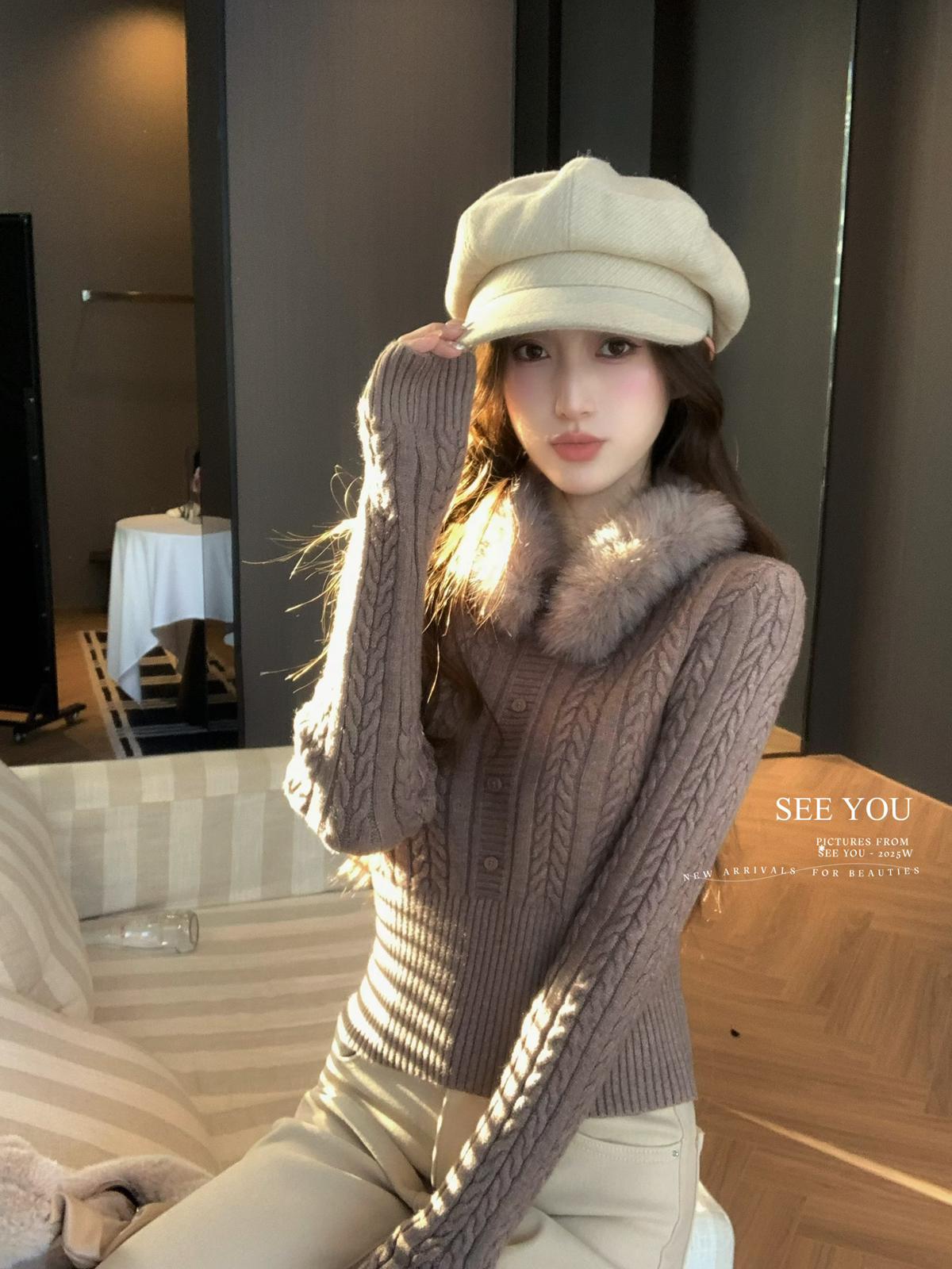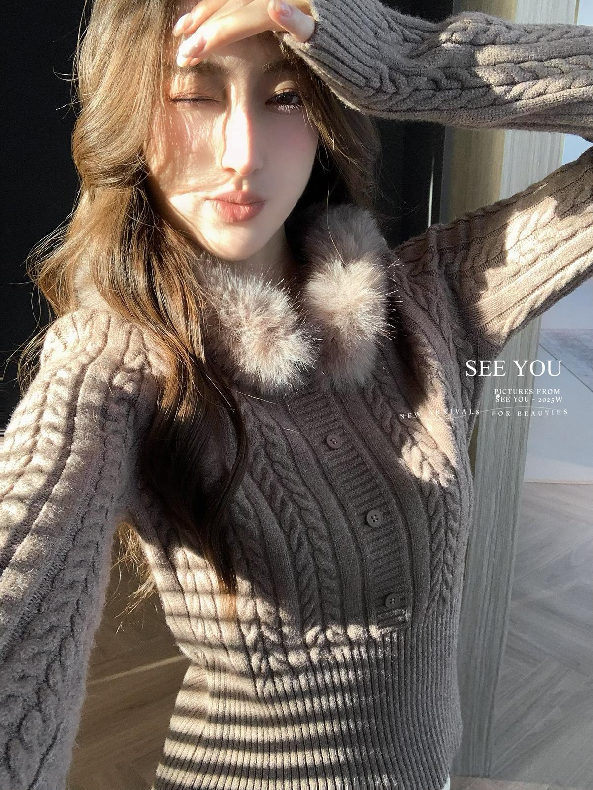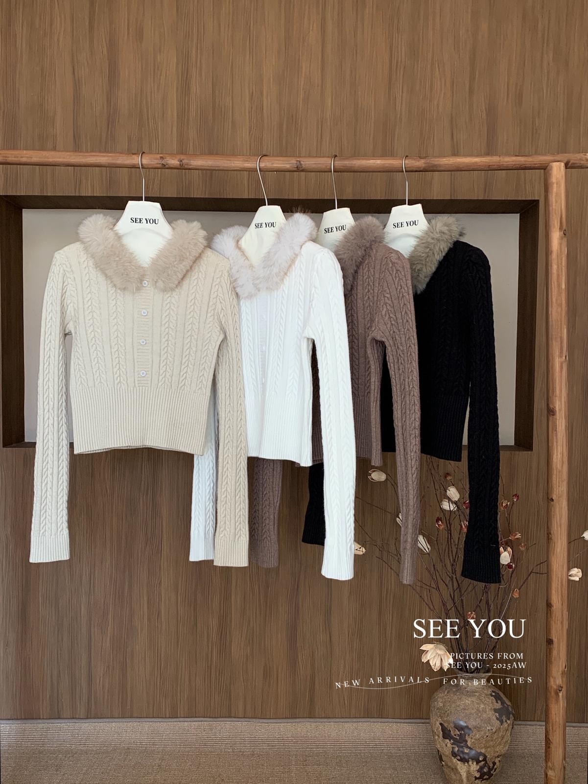 3. 【C8339】大美女出圈 毛毛領顯瘦保暖麻花編織針織毛衣(可拆環保毛領)