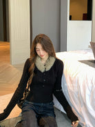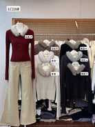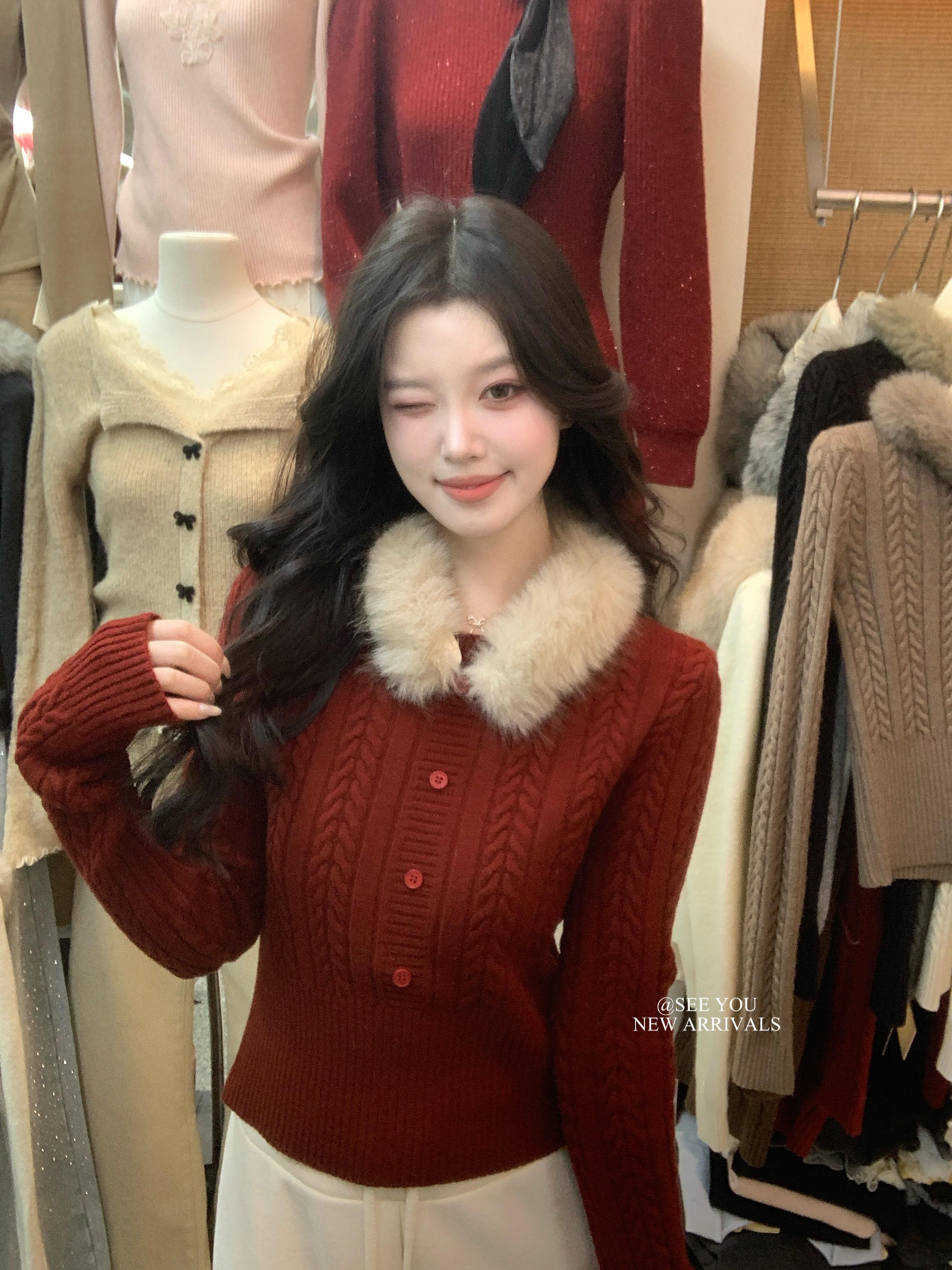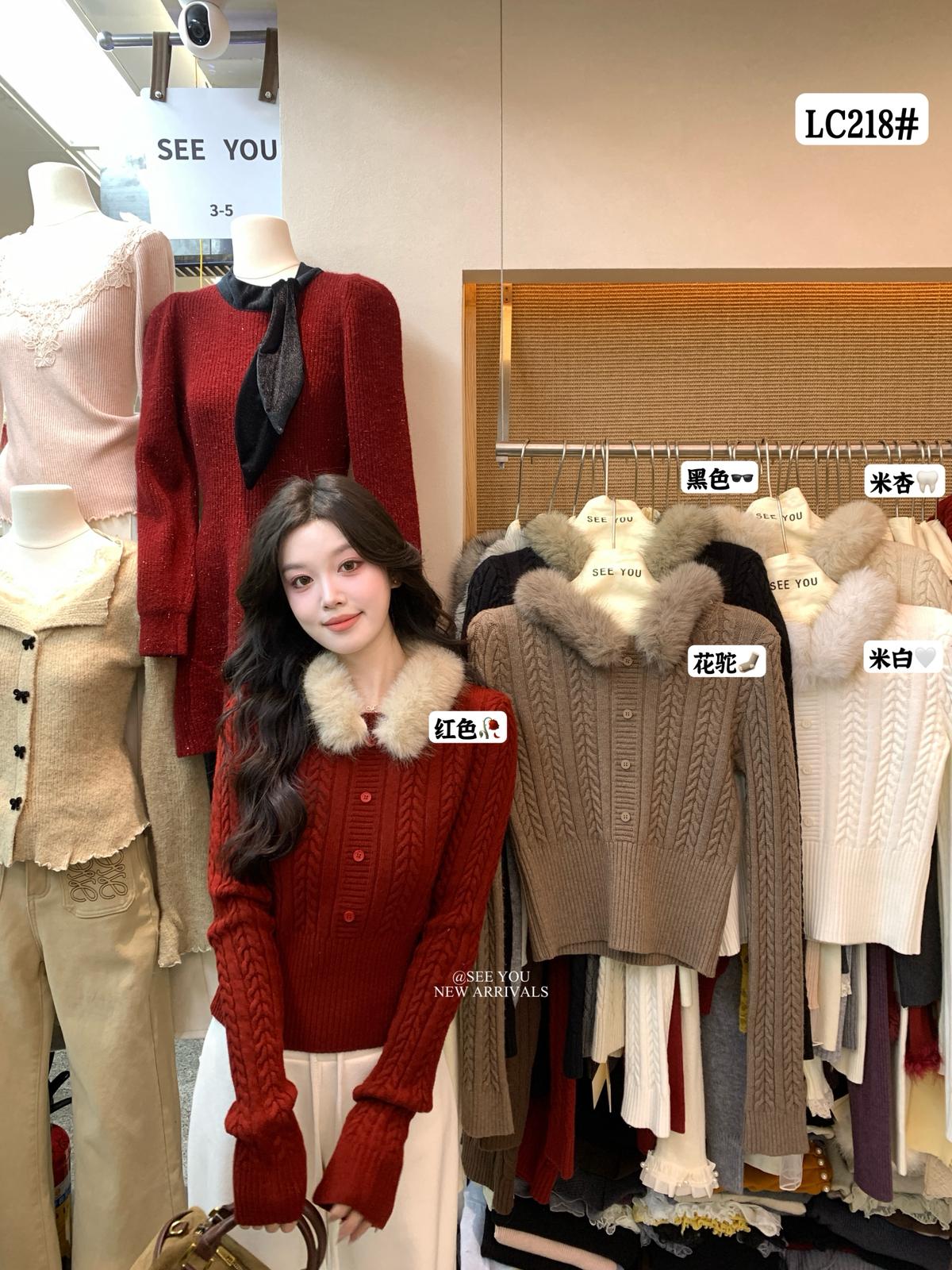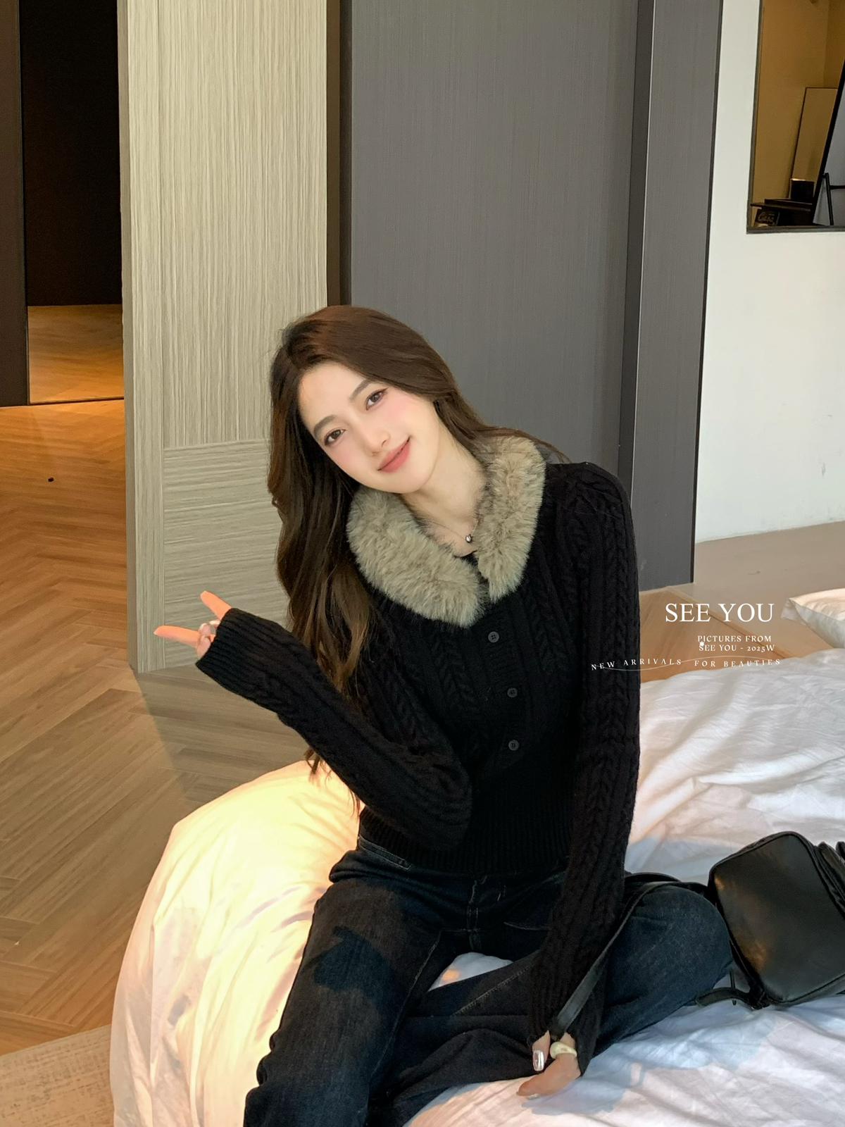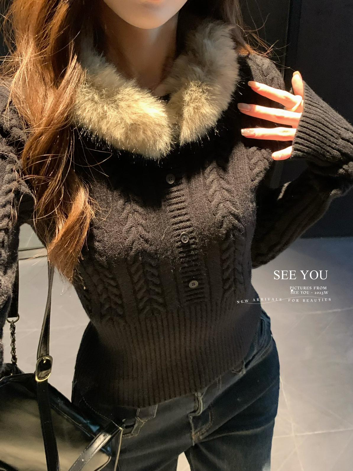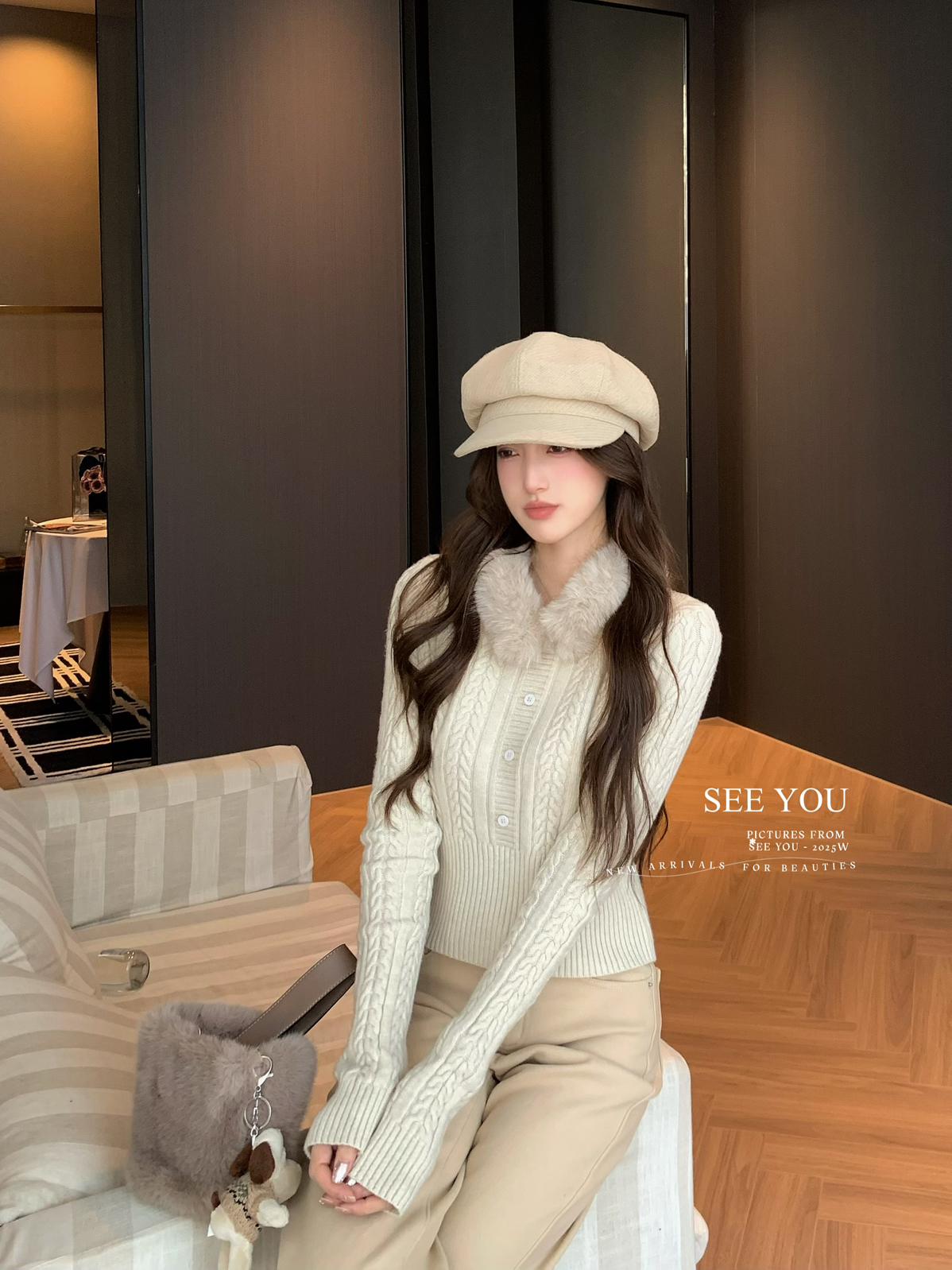 3. 【C8339】大美女出圈 毛毛領顯瘦保暖麻花編織針織毛衣(可拆環保毛領)