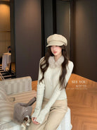 【C8339】大美女出圈 毛毛領顯瘦保暖麻花編織針織毛衣(可拆環保毛領)