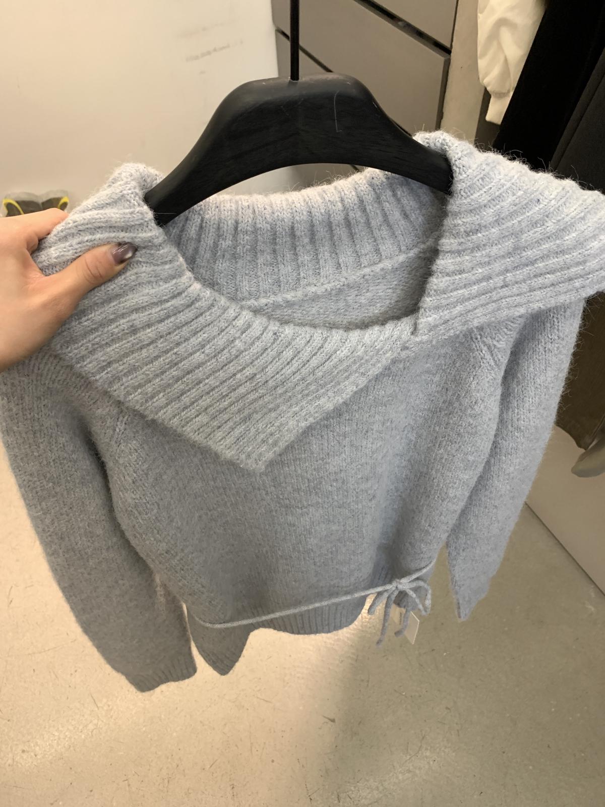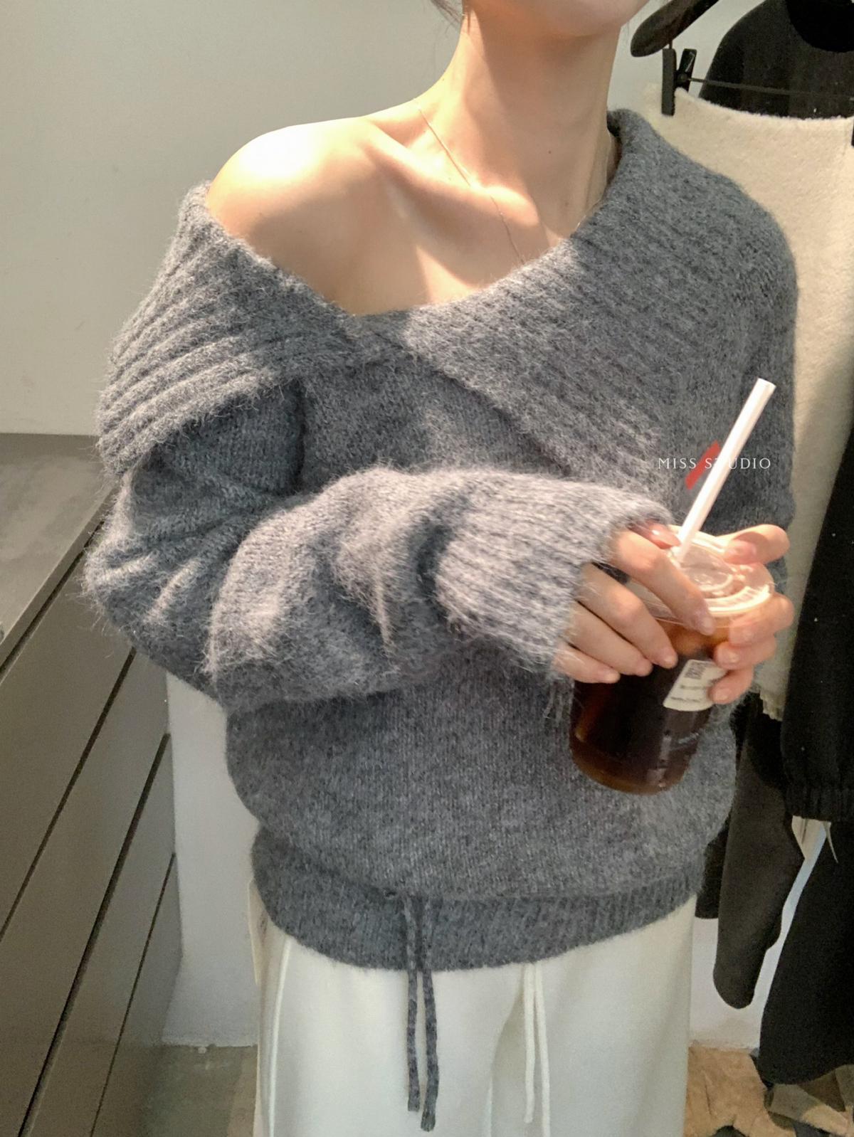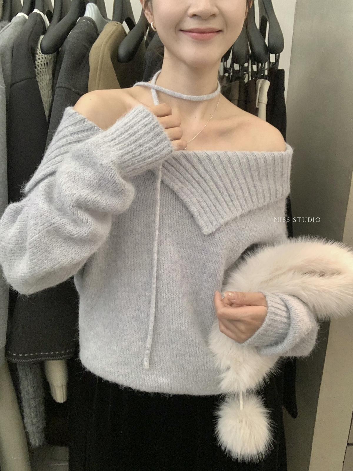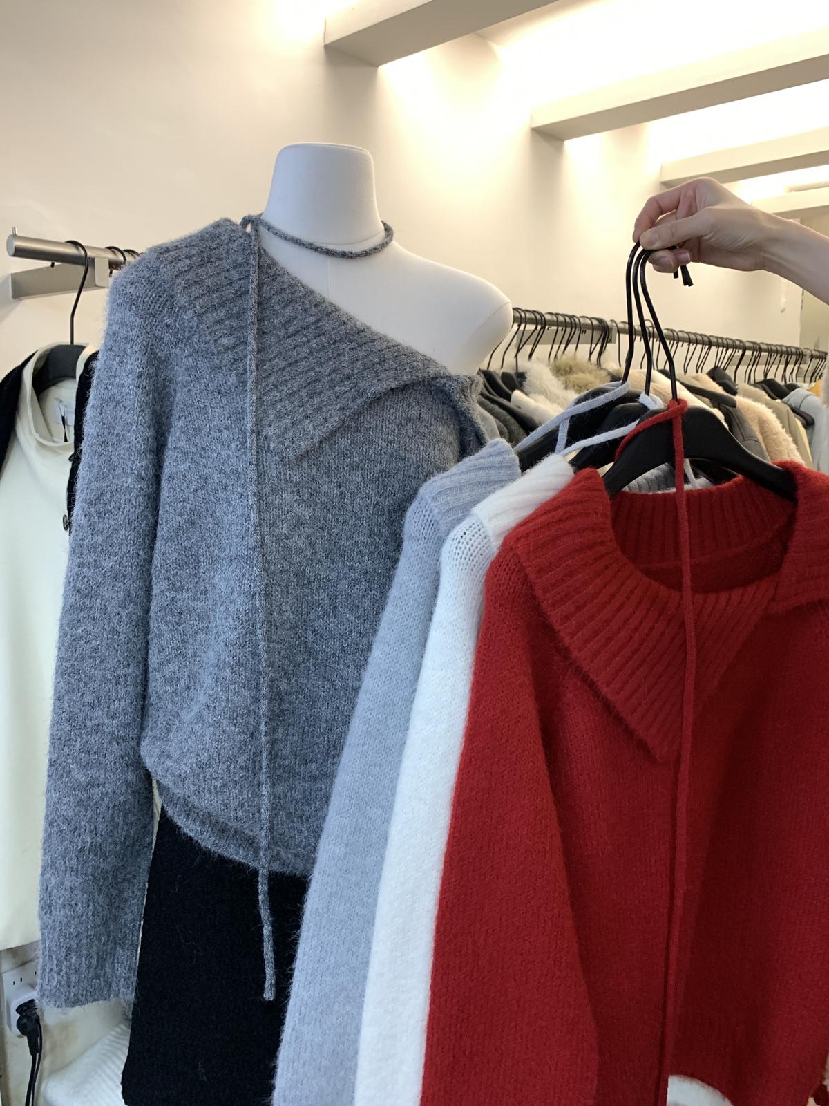 【C8341】韓系簡約年會款不規則領繫帶保暖毛衣(配腰繩)(含8%羊毛)