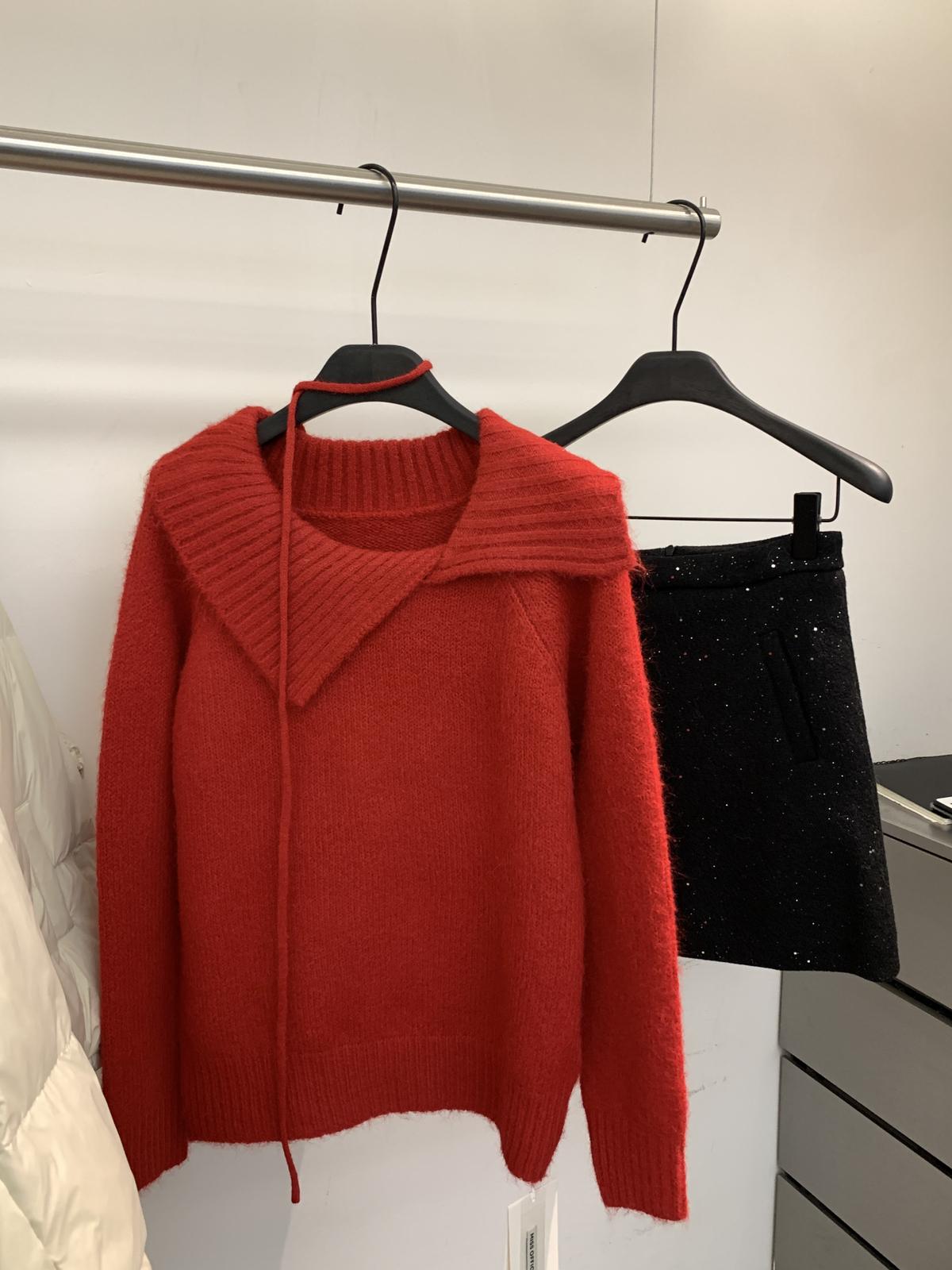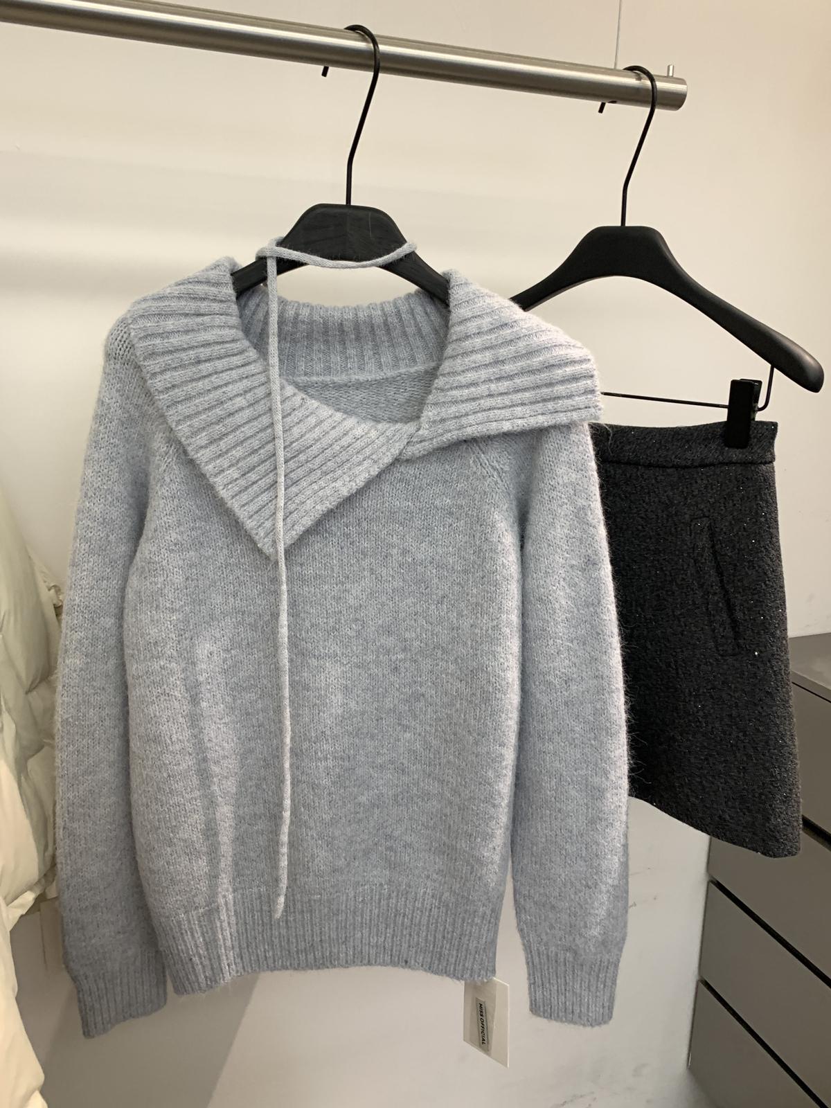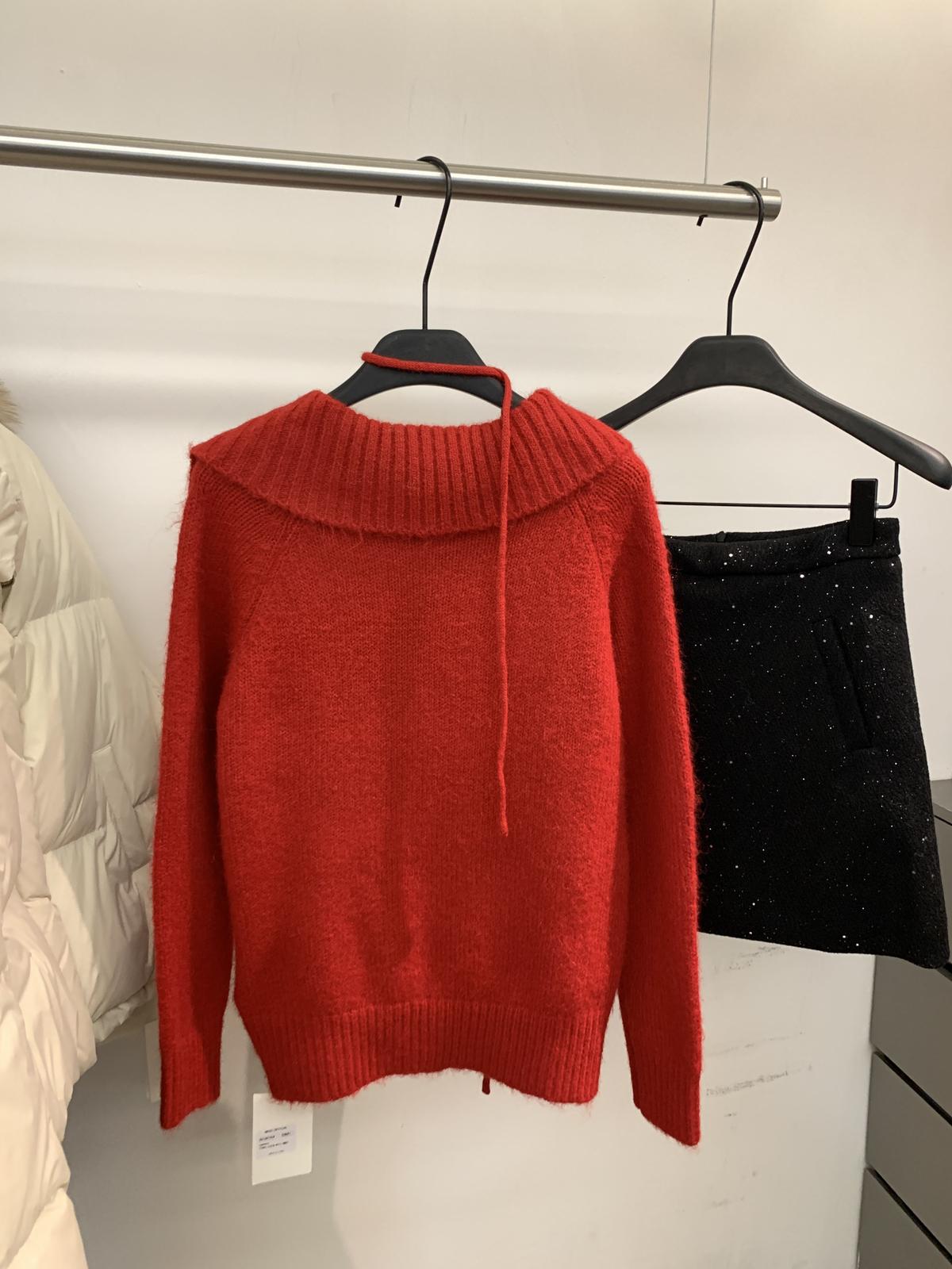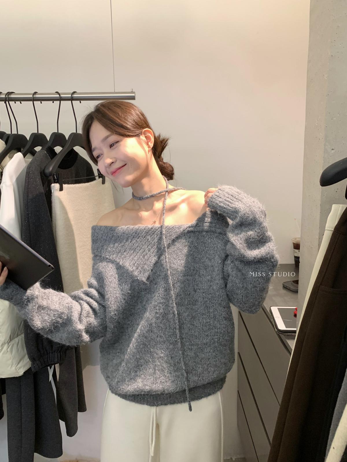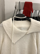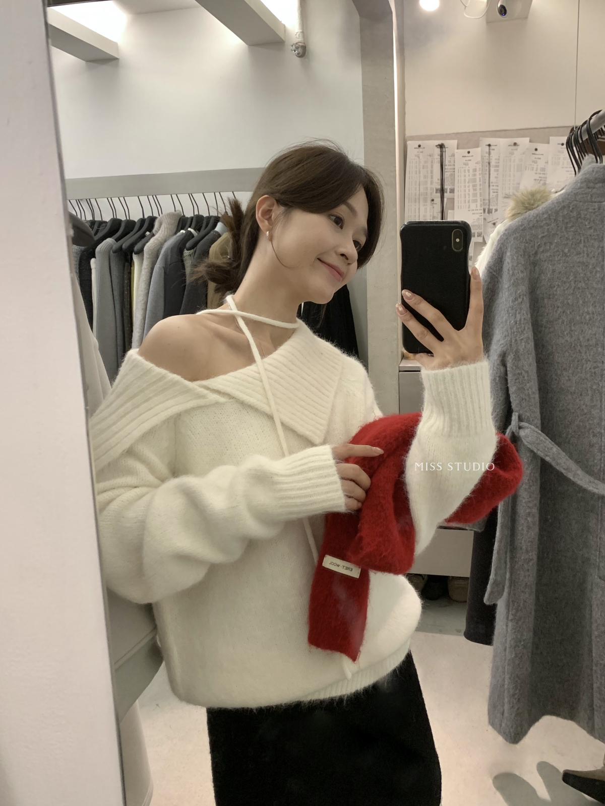 【C8341】韓系簡約年會款不規則領繫帶保暖毛衣(配腰繩)(含8%羊毛)