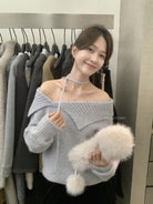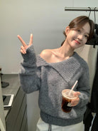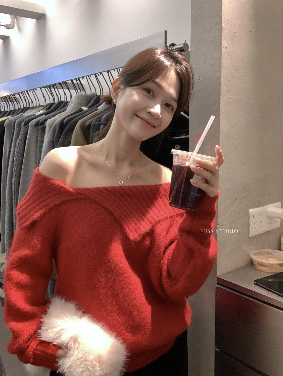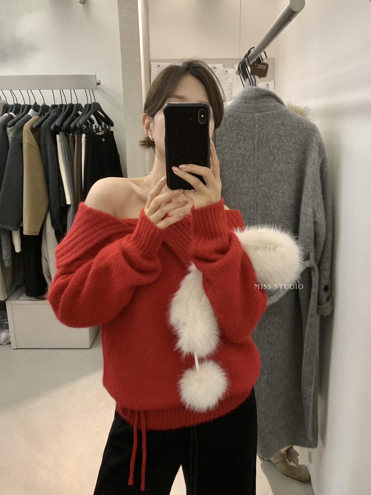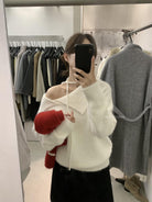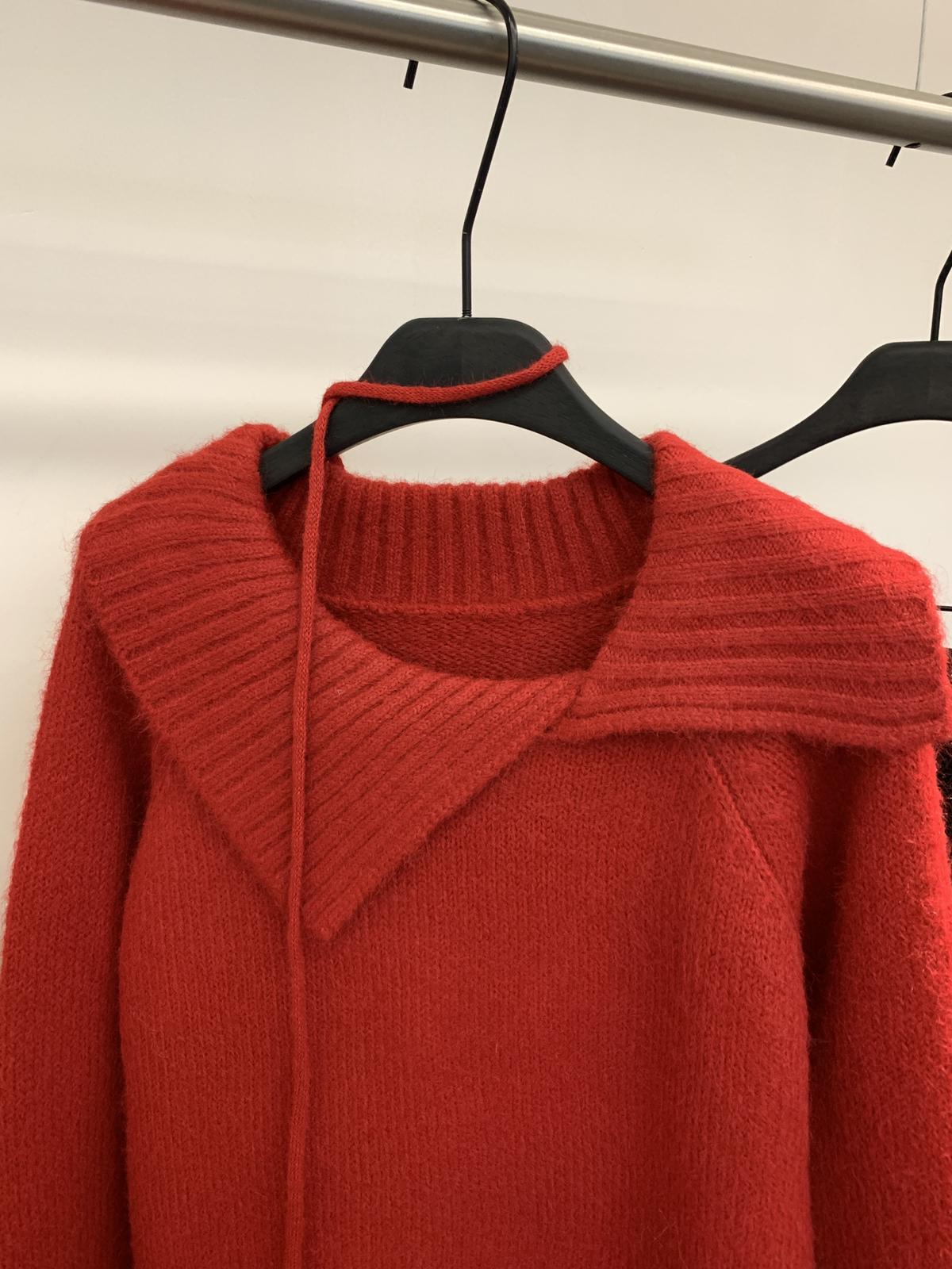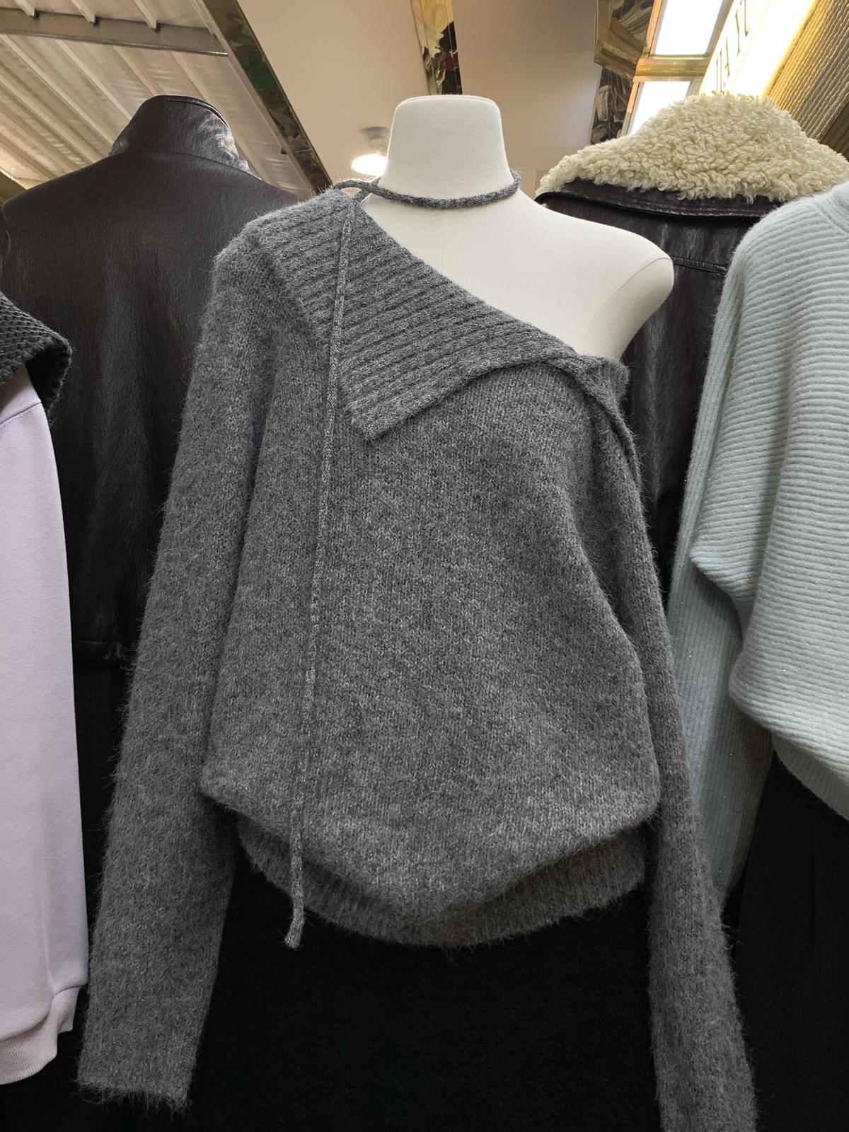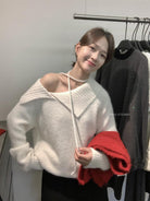 【C8341】韓系簡約年會款不規則領繫帶保暖毛衣(配腰繩)(含8%羊毛)