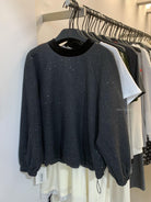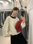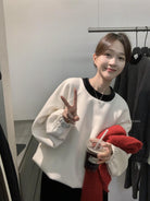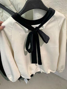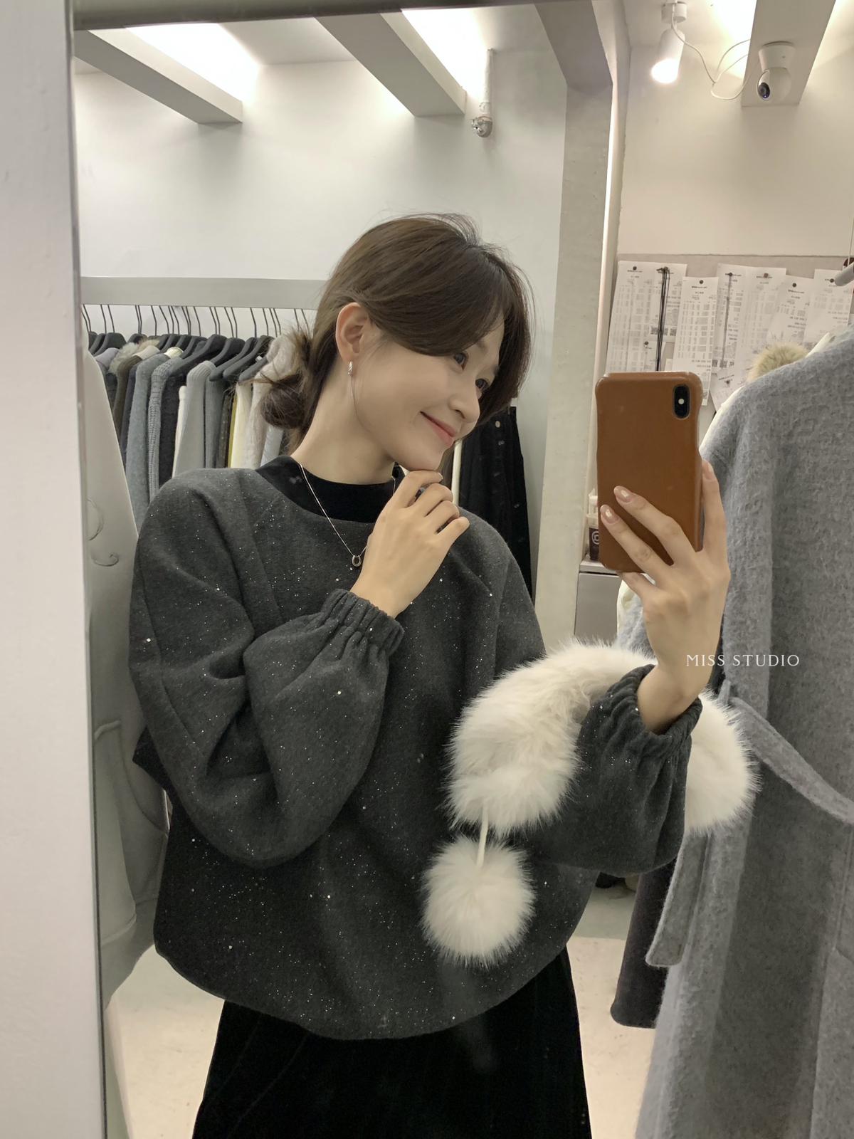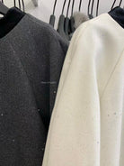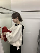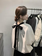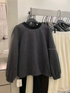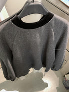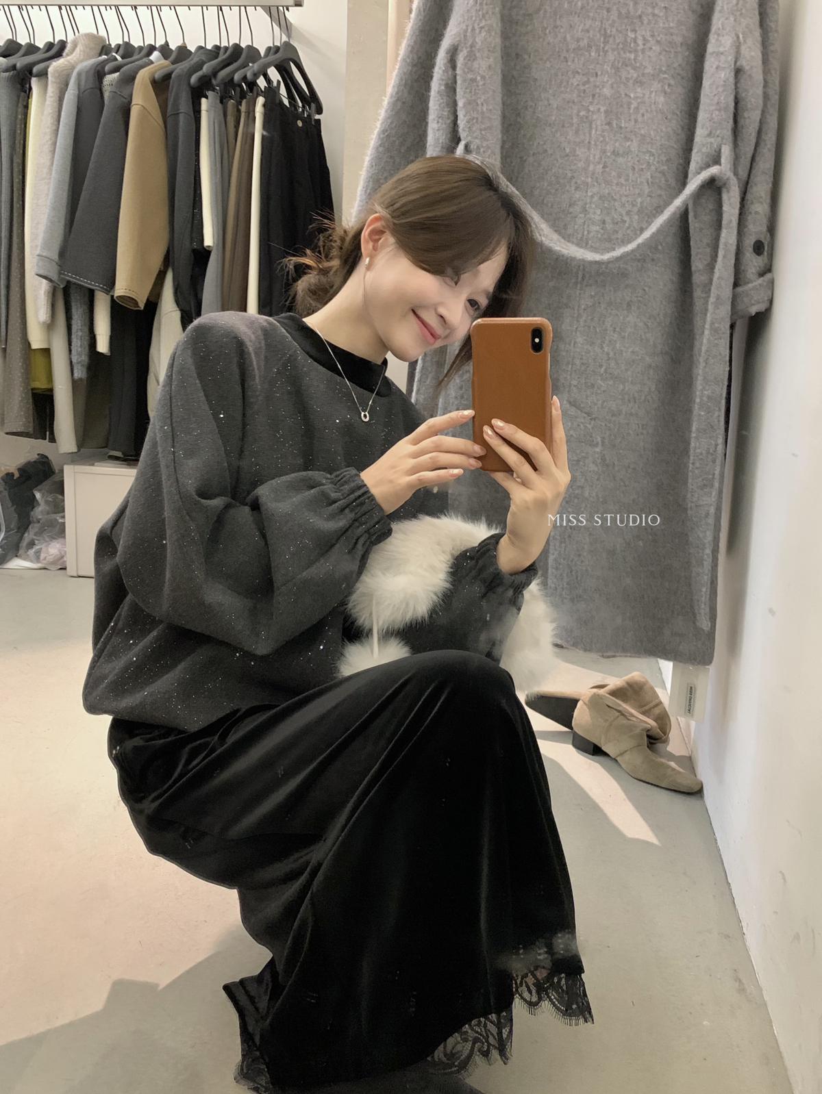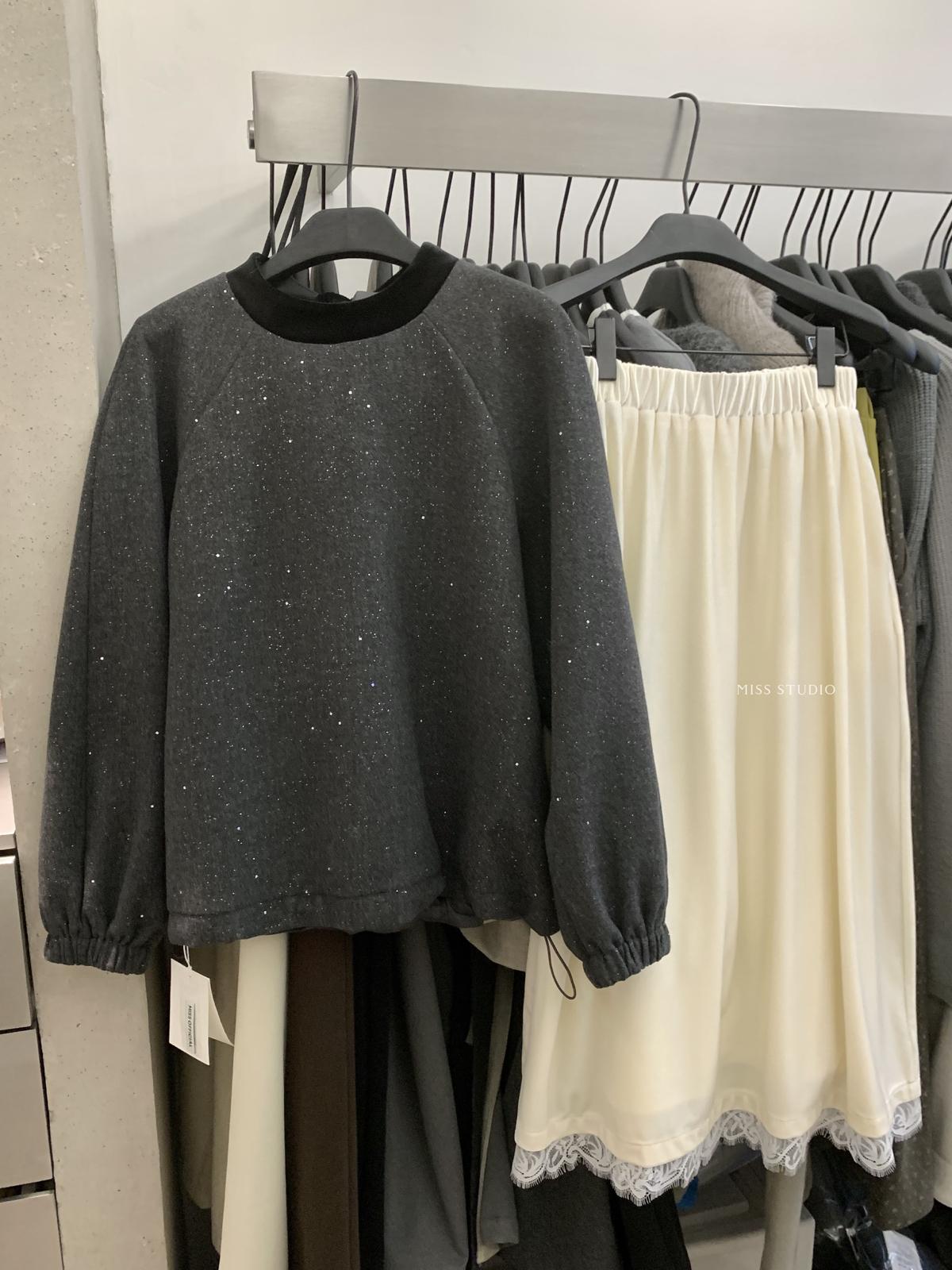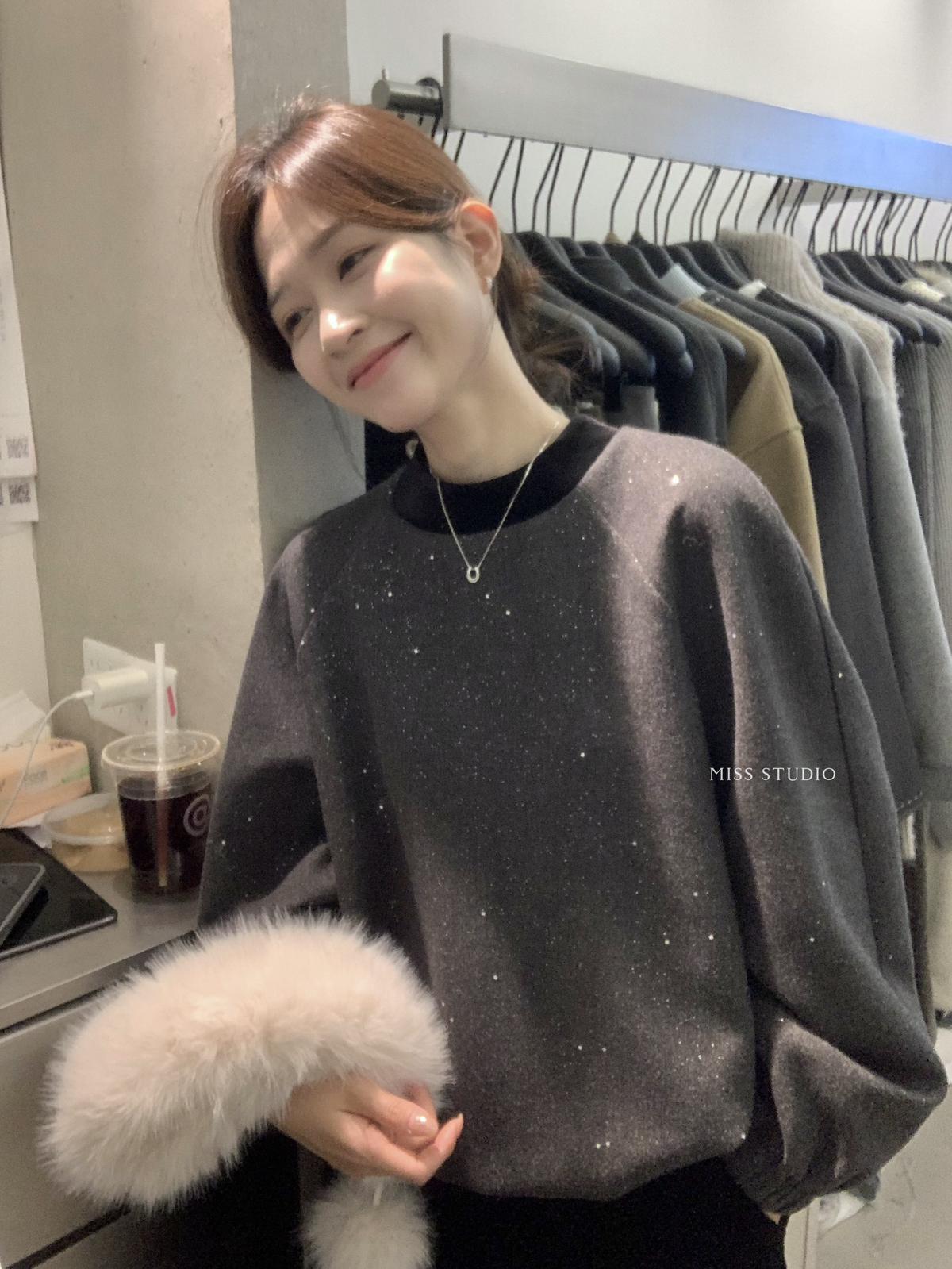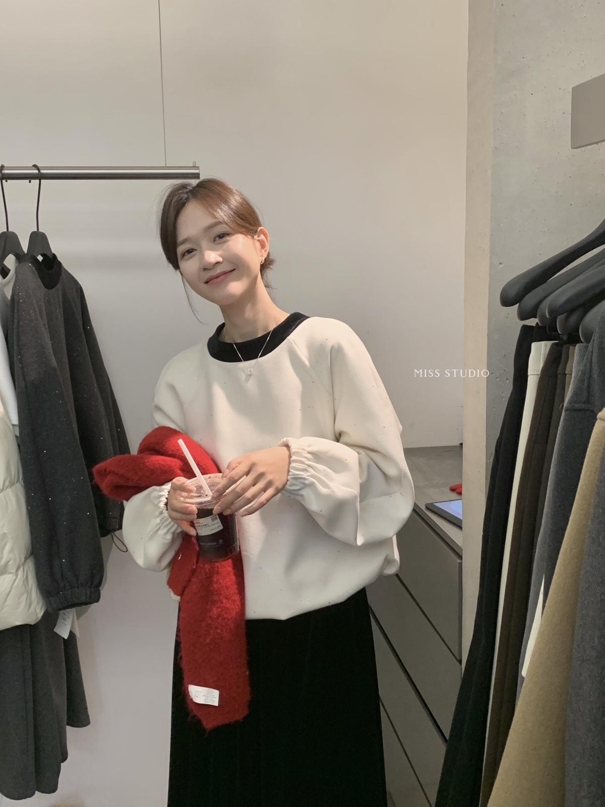 【C8342】法式精緻主義~拼絲絨繫帶領燙鑽呢子上衣衛衣