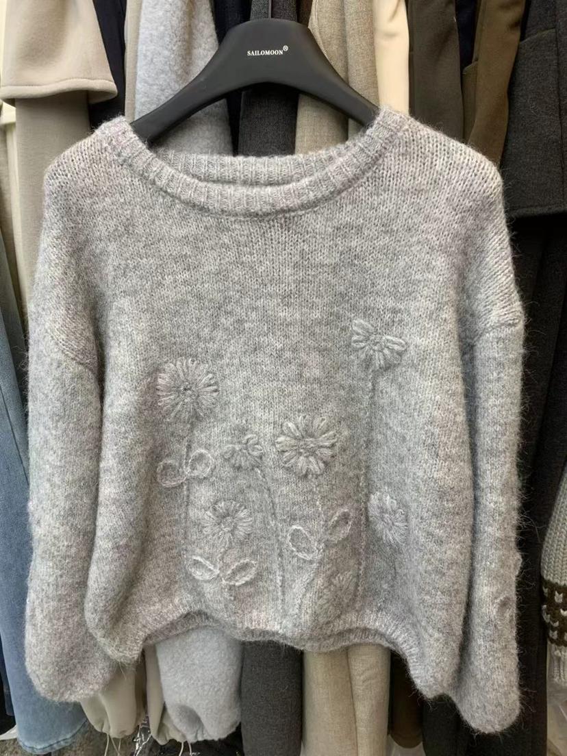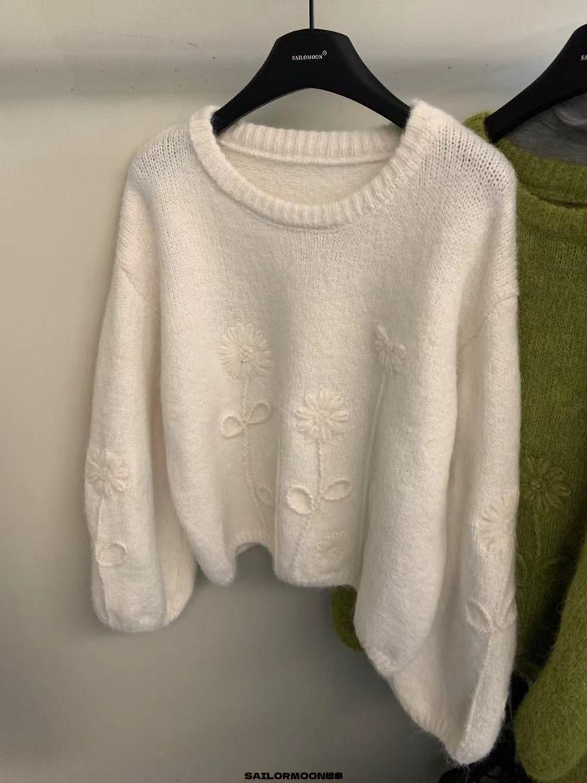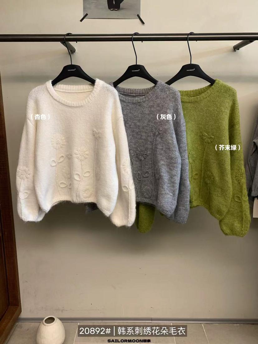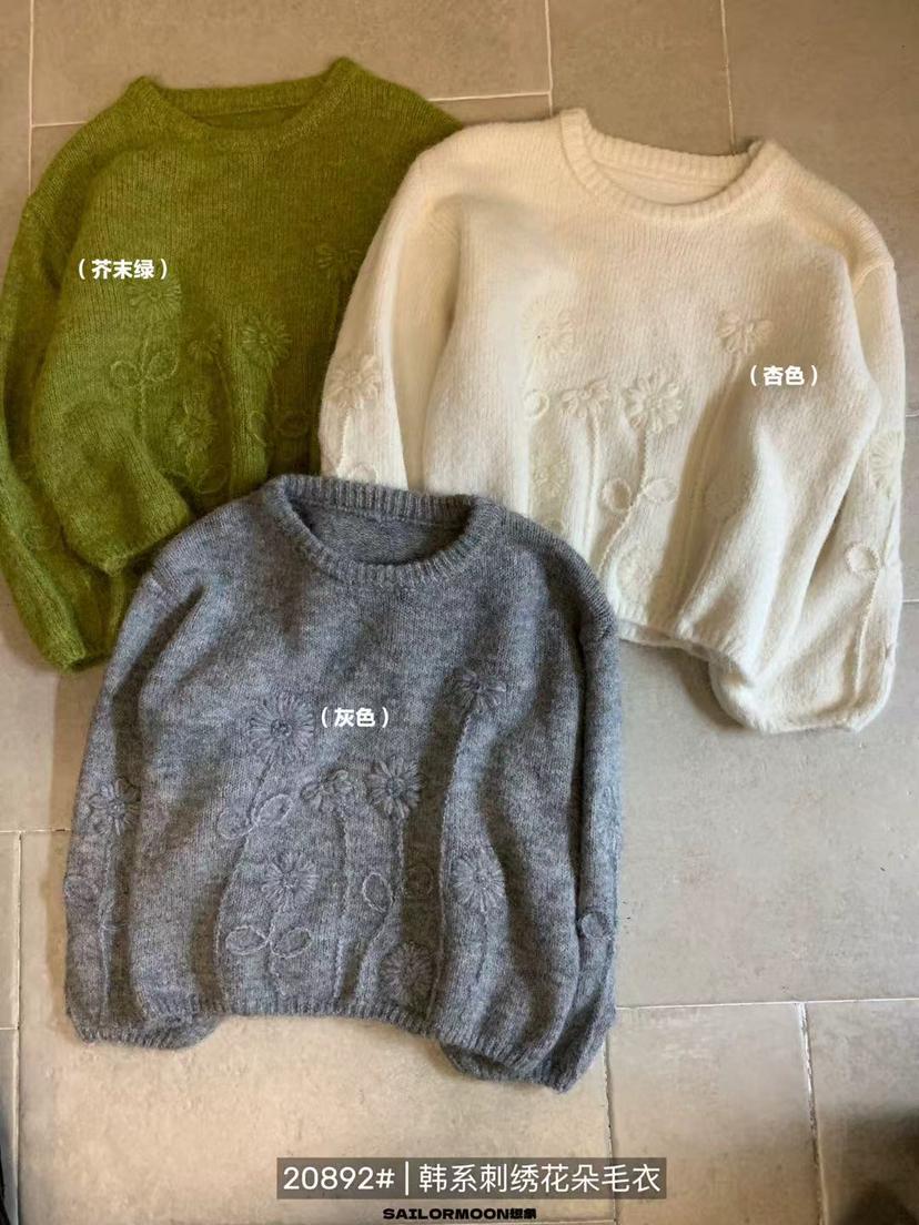 3. 【C8345】韓系刺繡花朵時尚百搭休閒毛衣