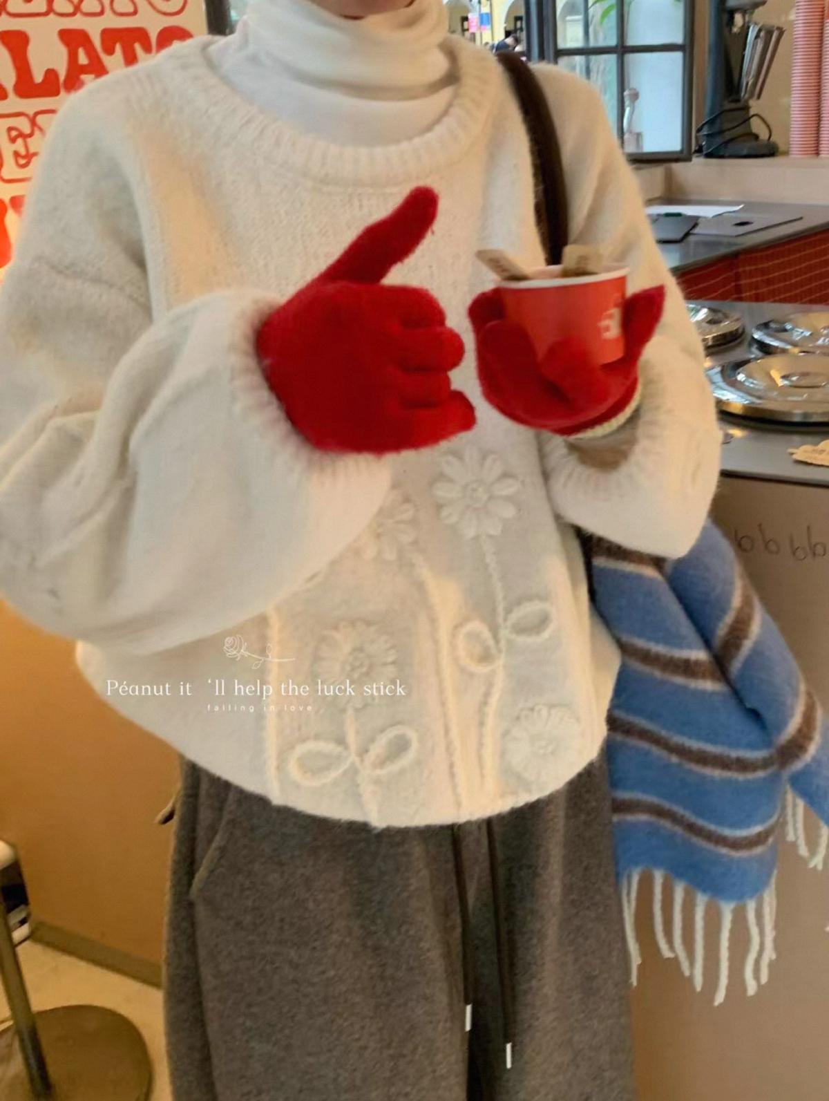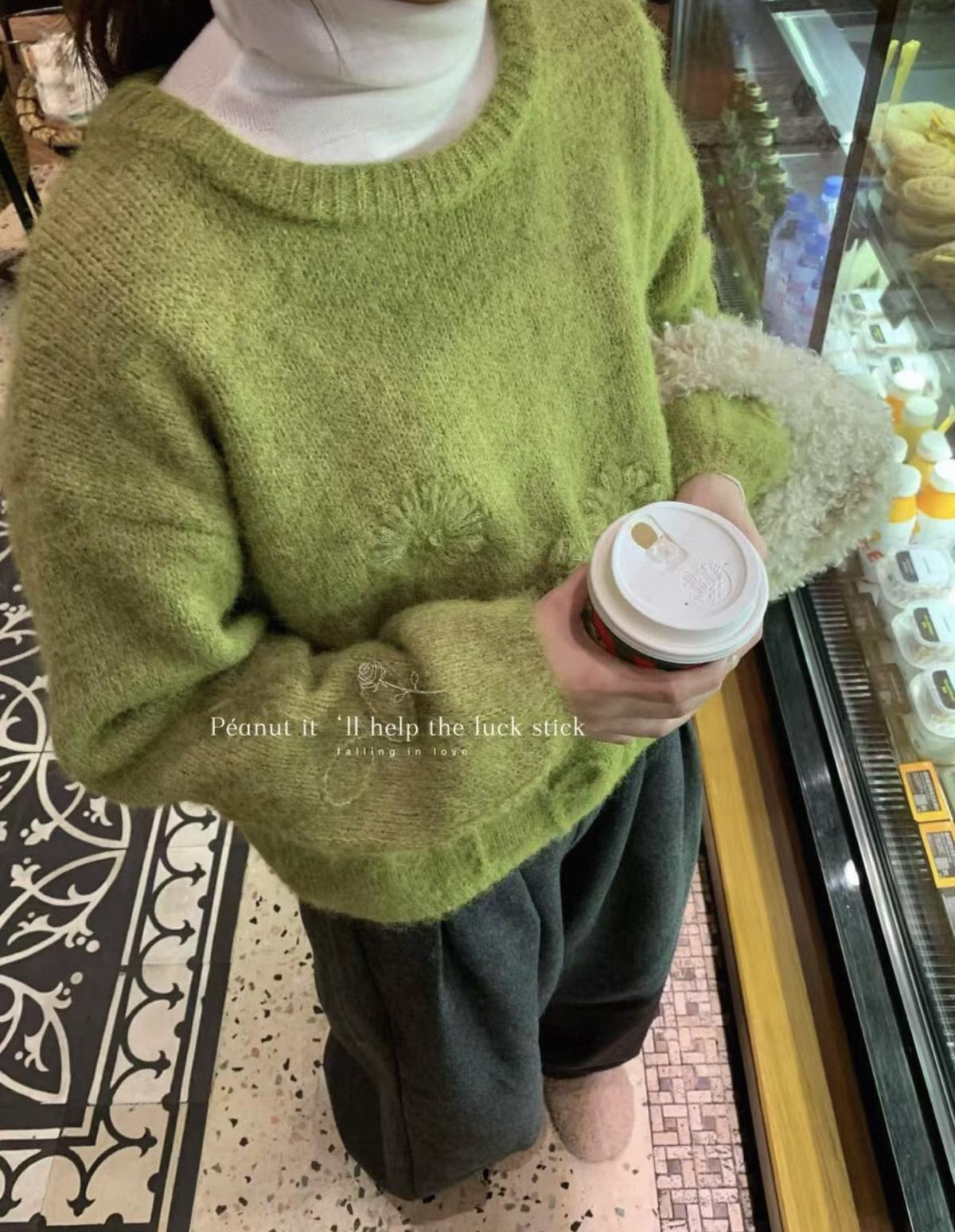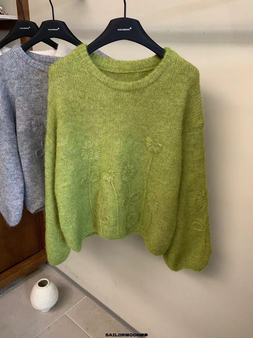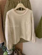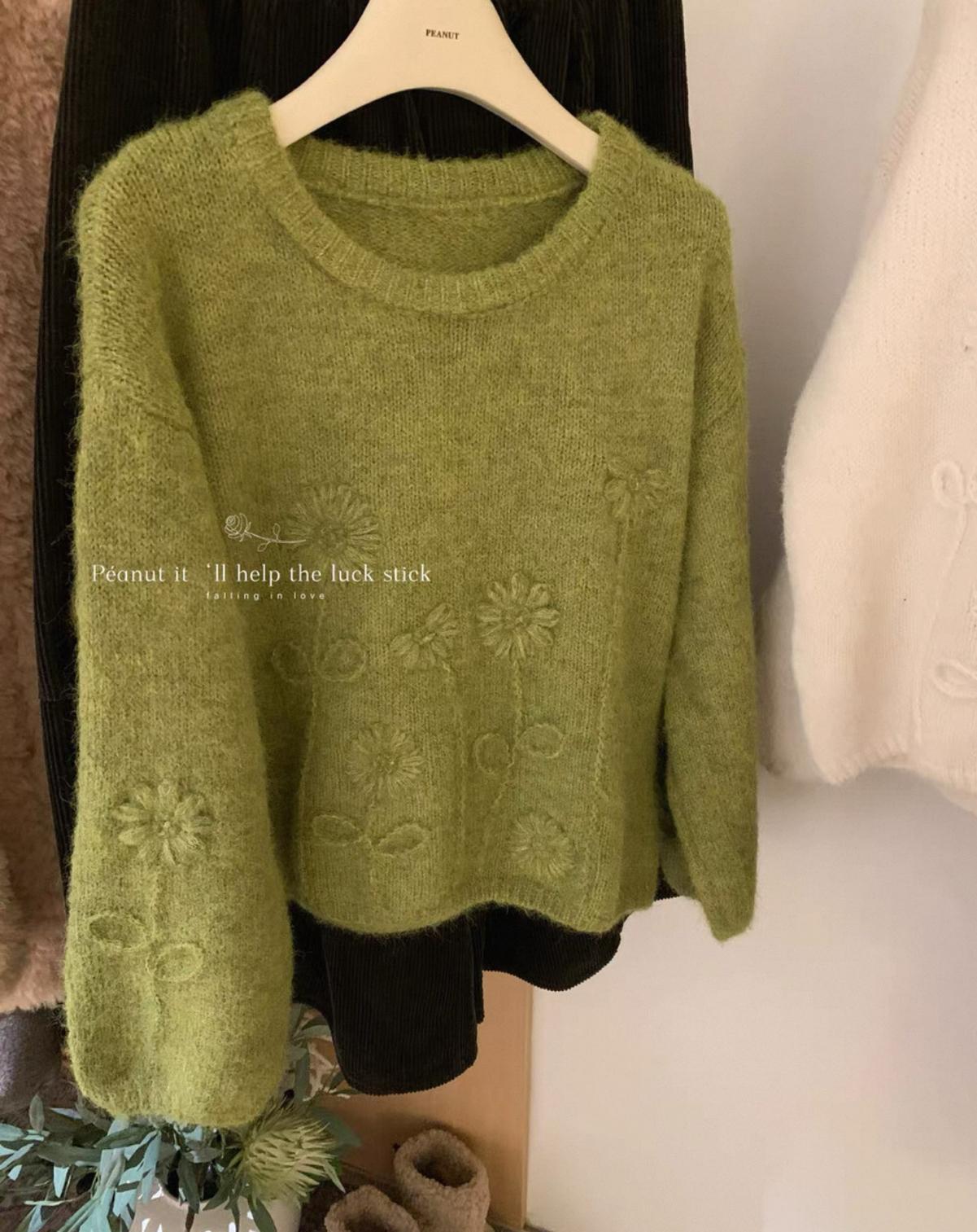 3. 【C8345】韓系刺繡花朵時尚百搭休閒毛衣