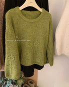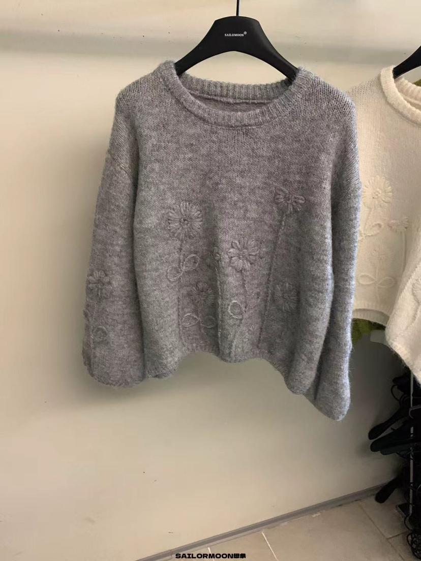 【C8345】韓系刺繡花朵時尚百搭休閒毛衣