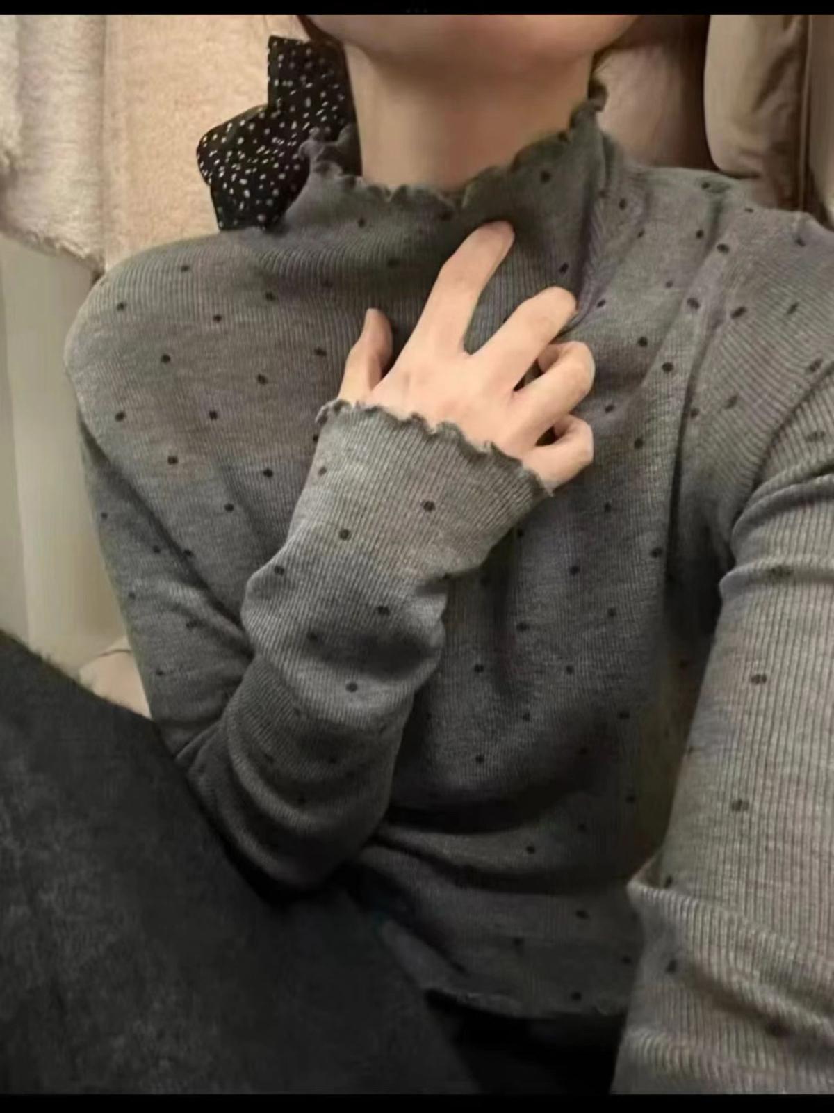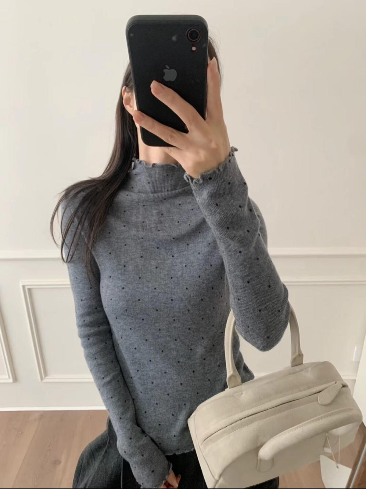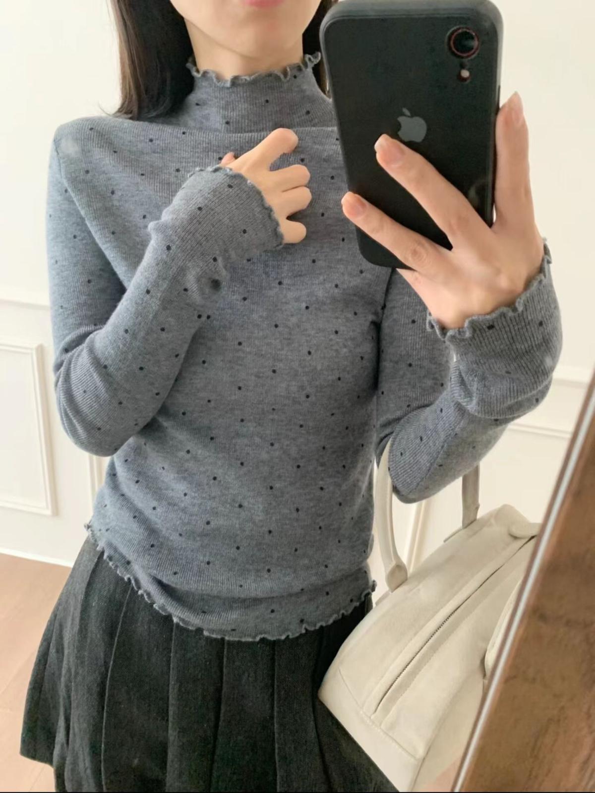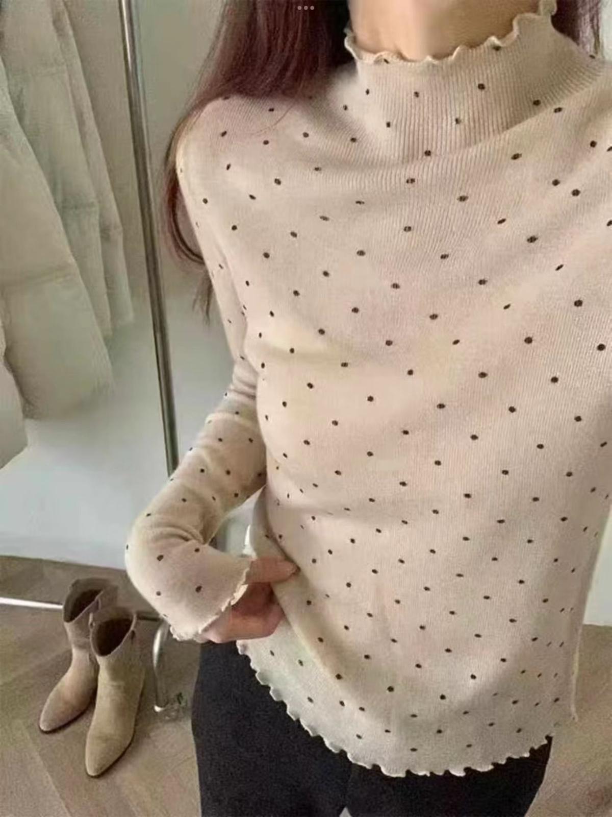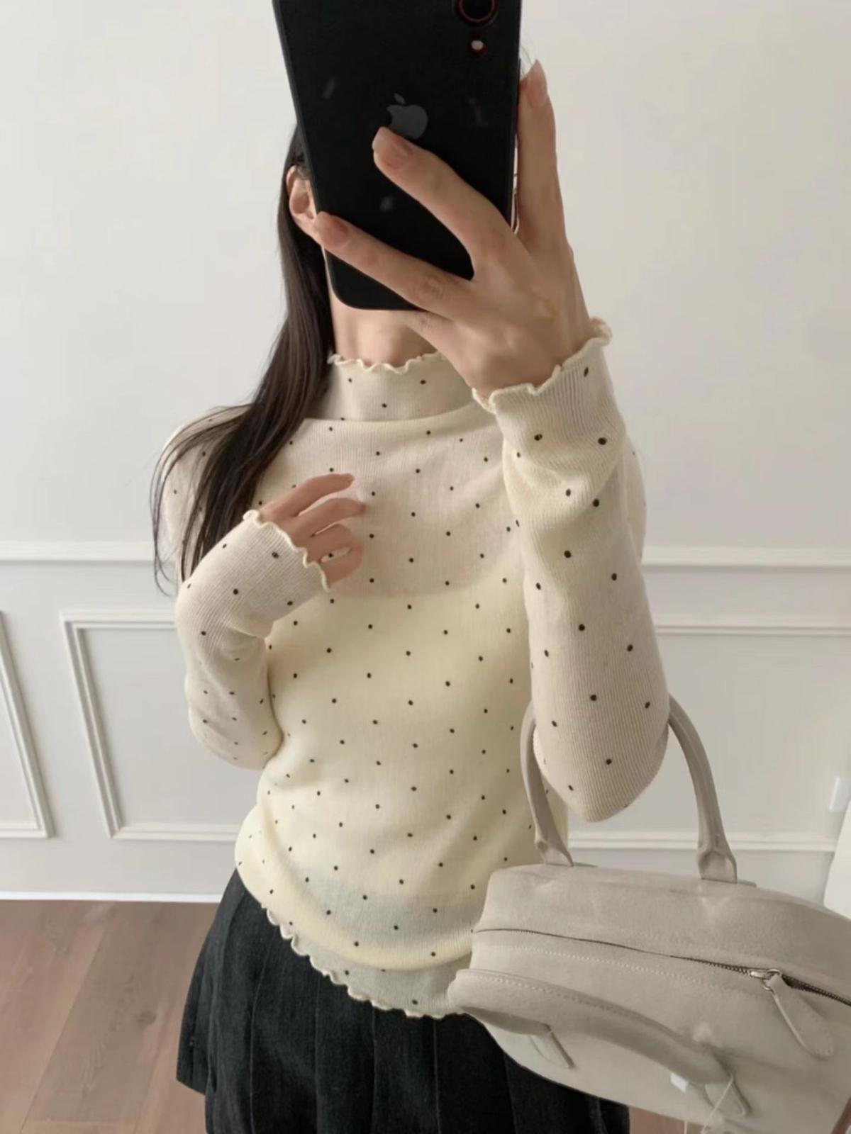 【C8348】純欲感波點顯瘦卷邊打底衫(含10%羊毛)