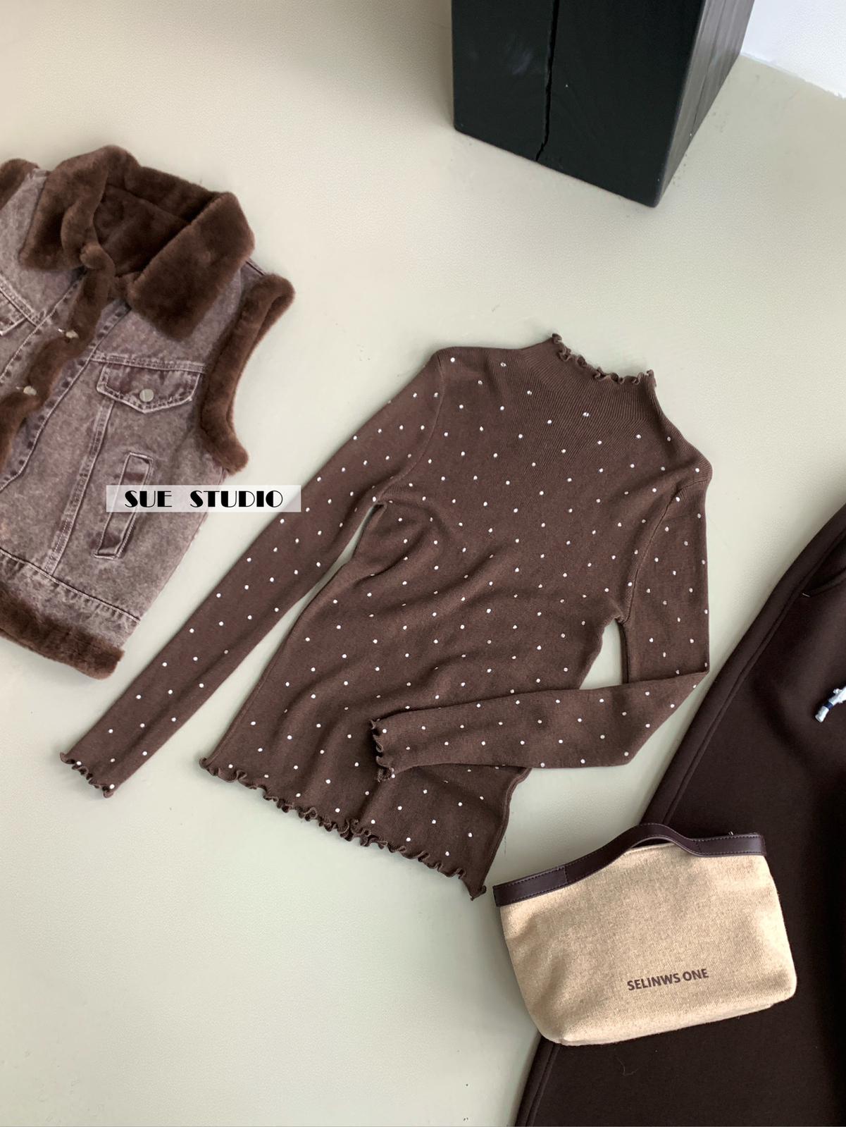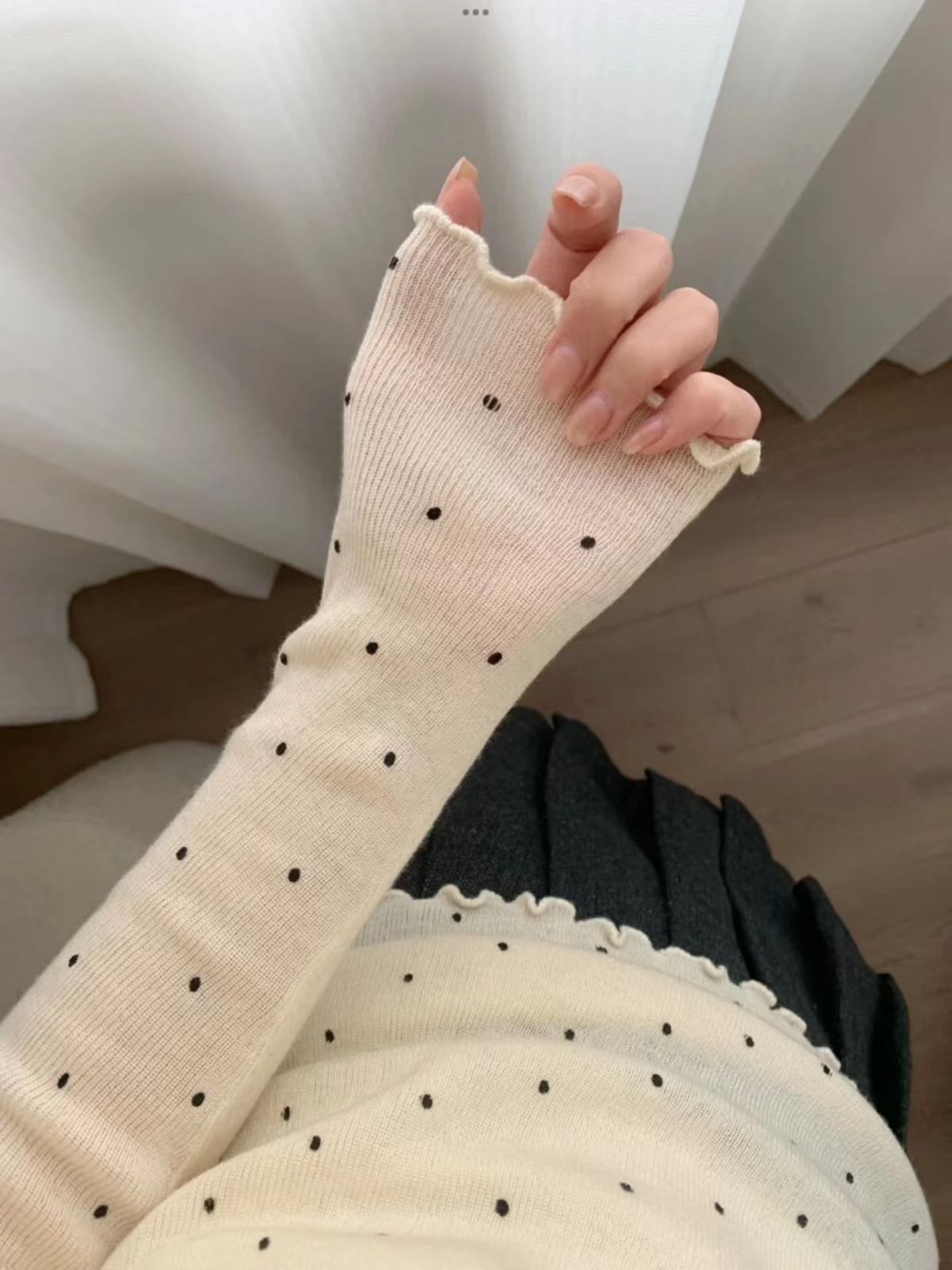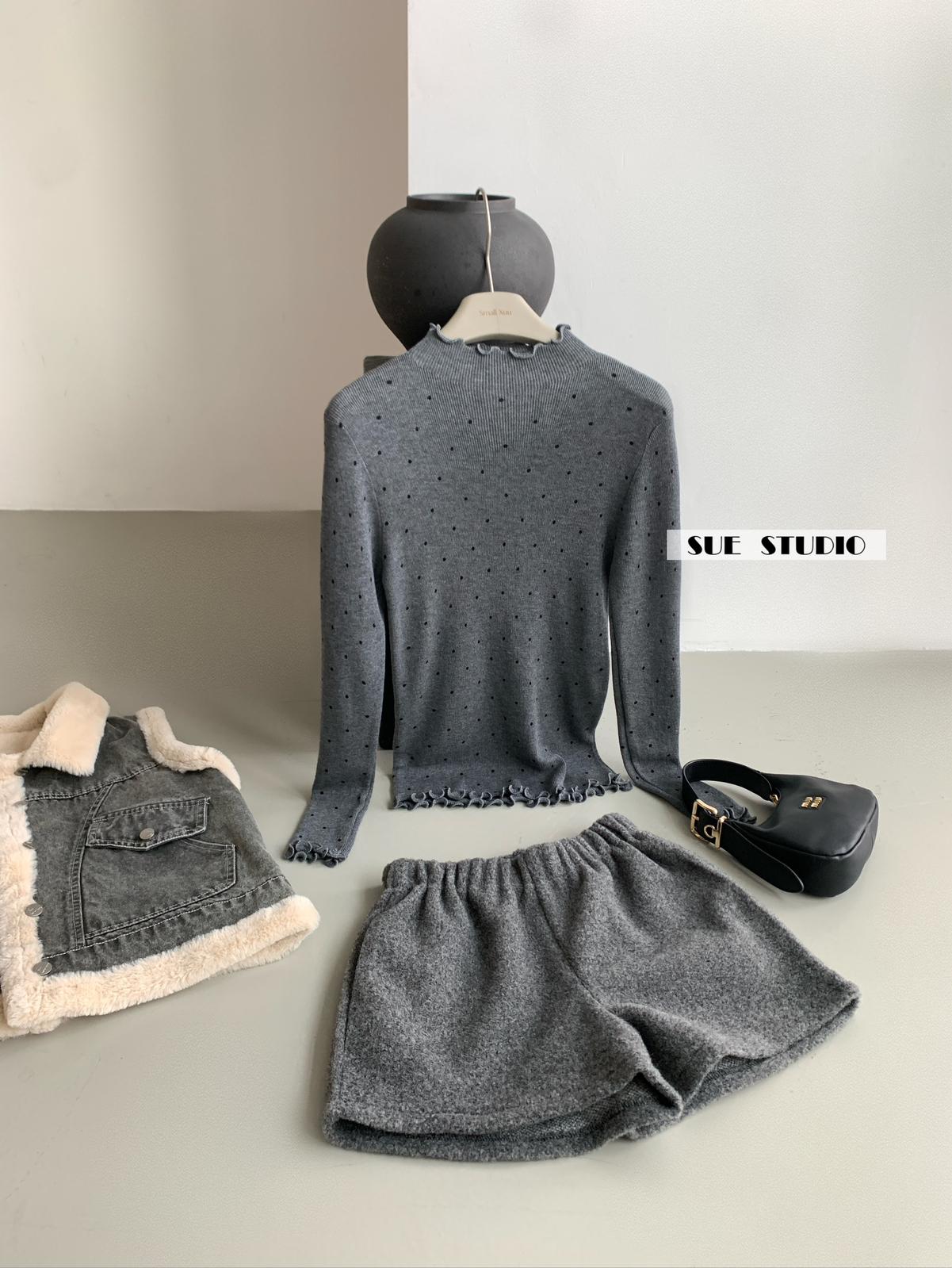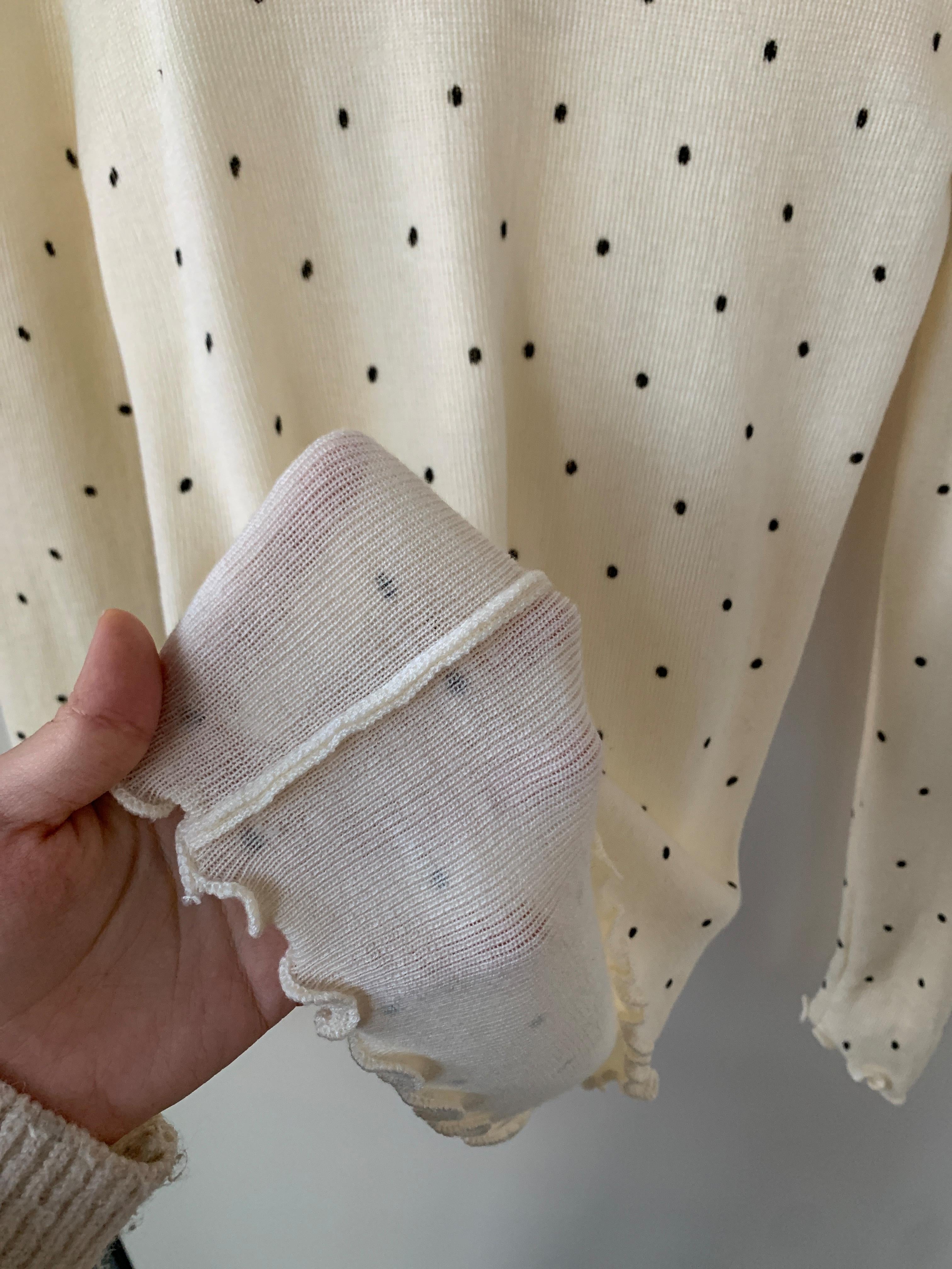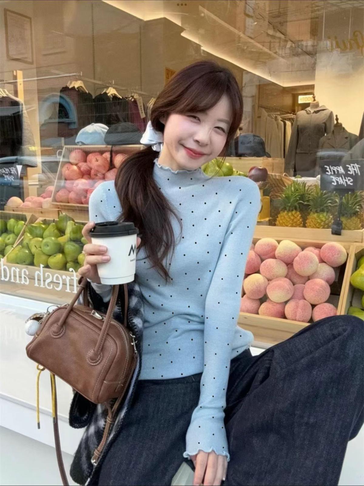 【C8348】純欲感波點顯瘦卷邊打底衫(含10%羊毛)