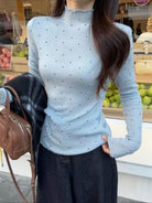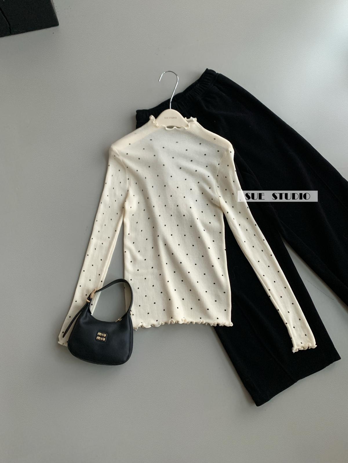3. 【C8348】純欲感波點顯瘦卷邊打底衫(含10%羊毛)