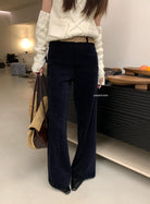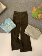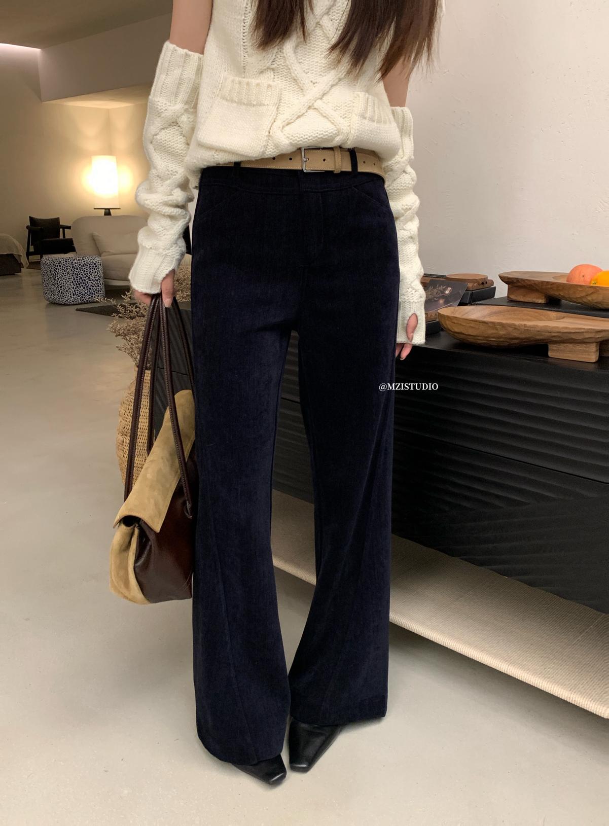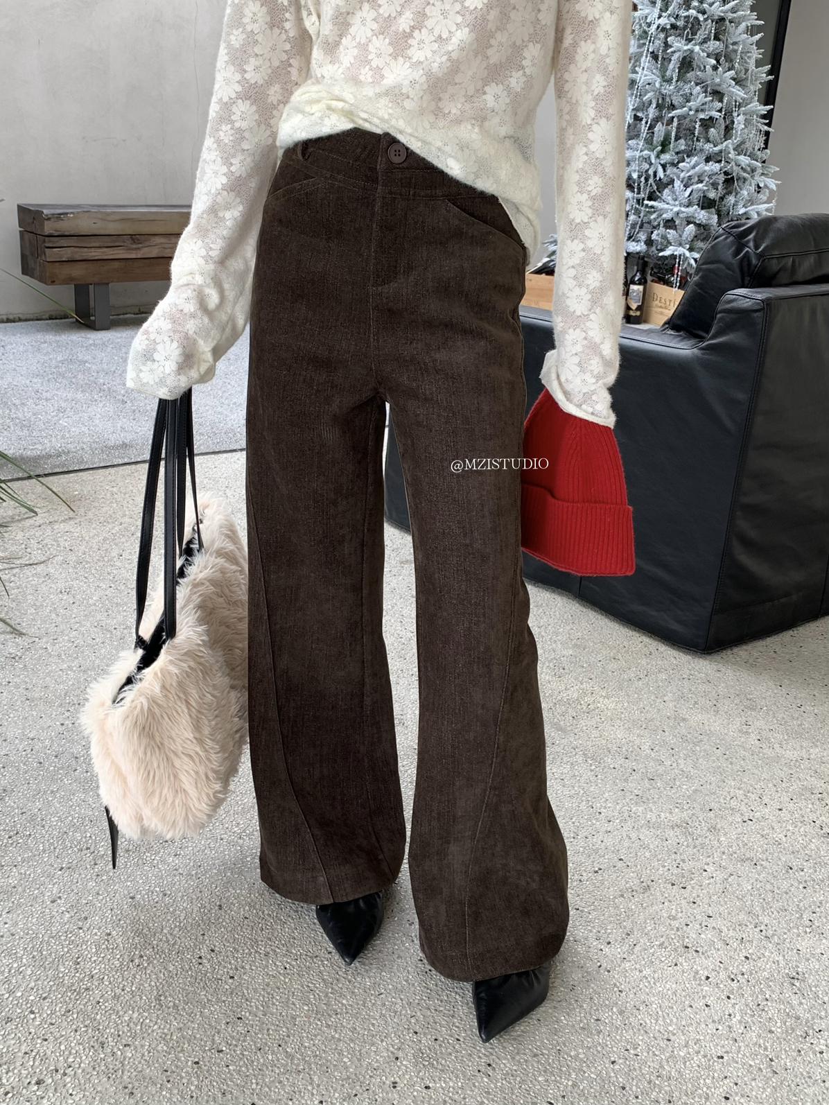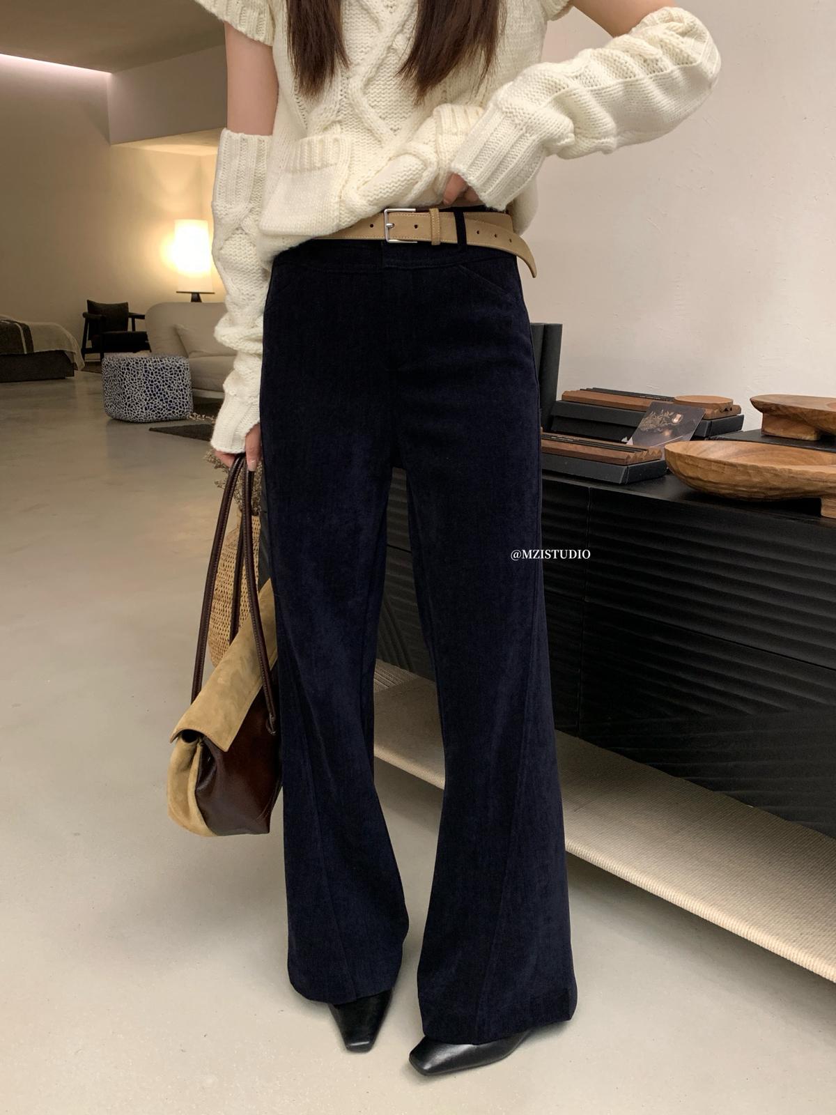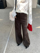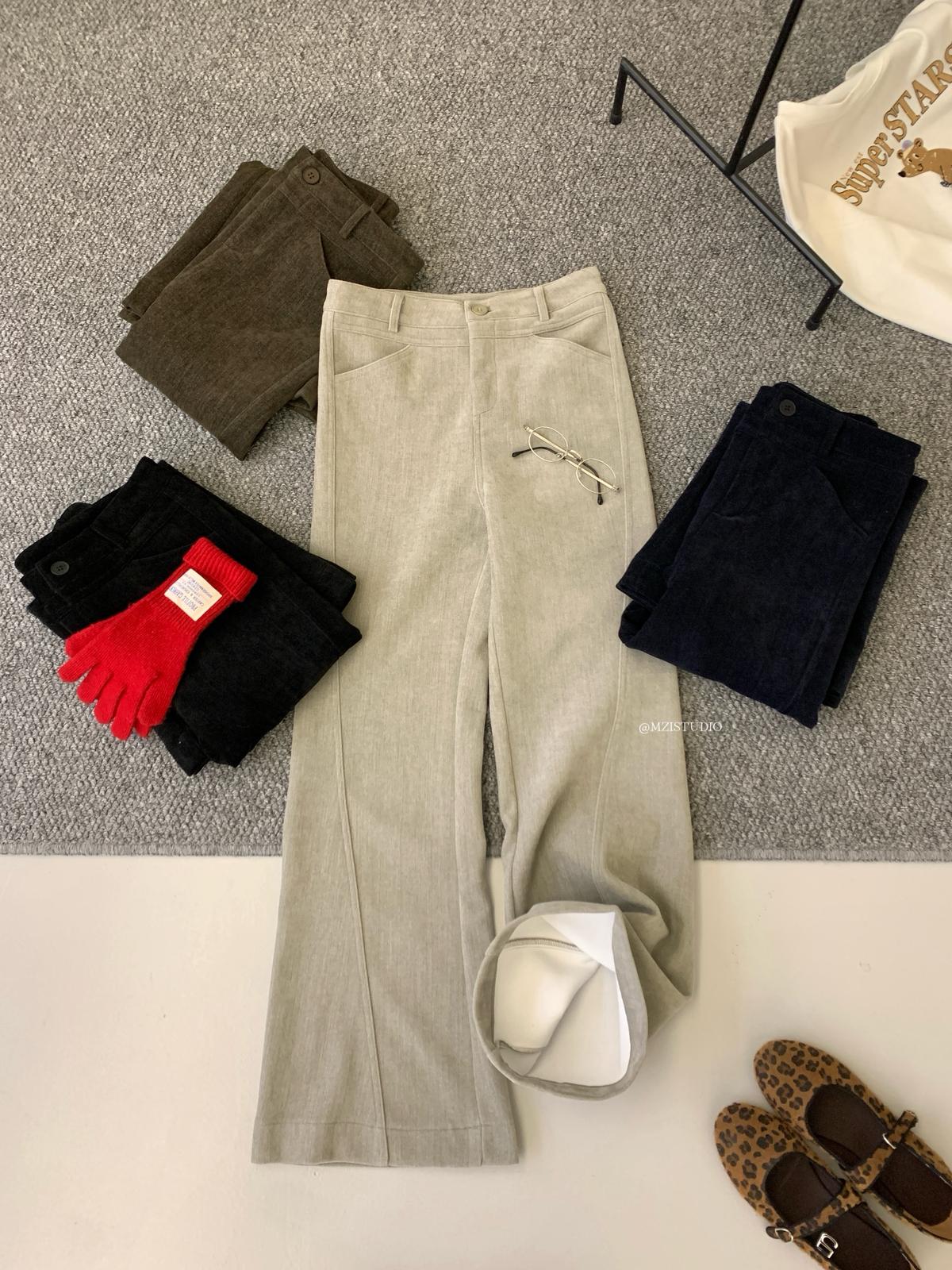 【C8354】美式格調氛圍冬日磨毛時髦酷帥微喇高腰顯腿長休閒褲