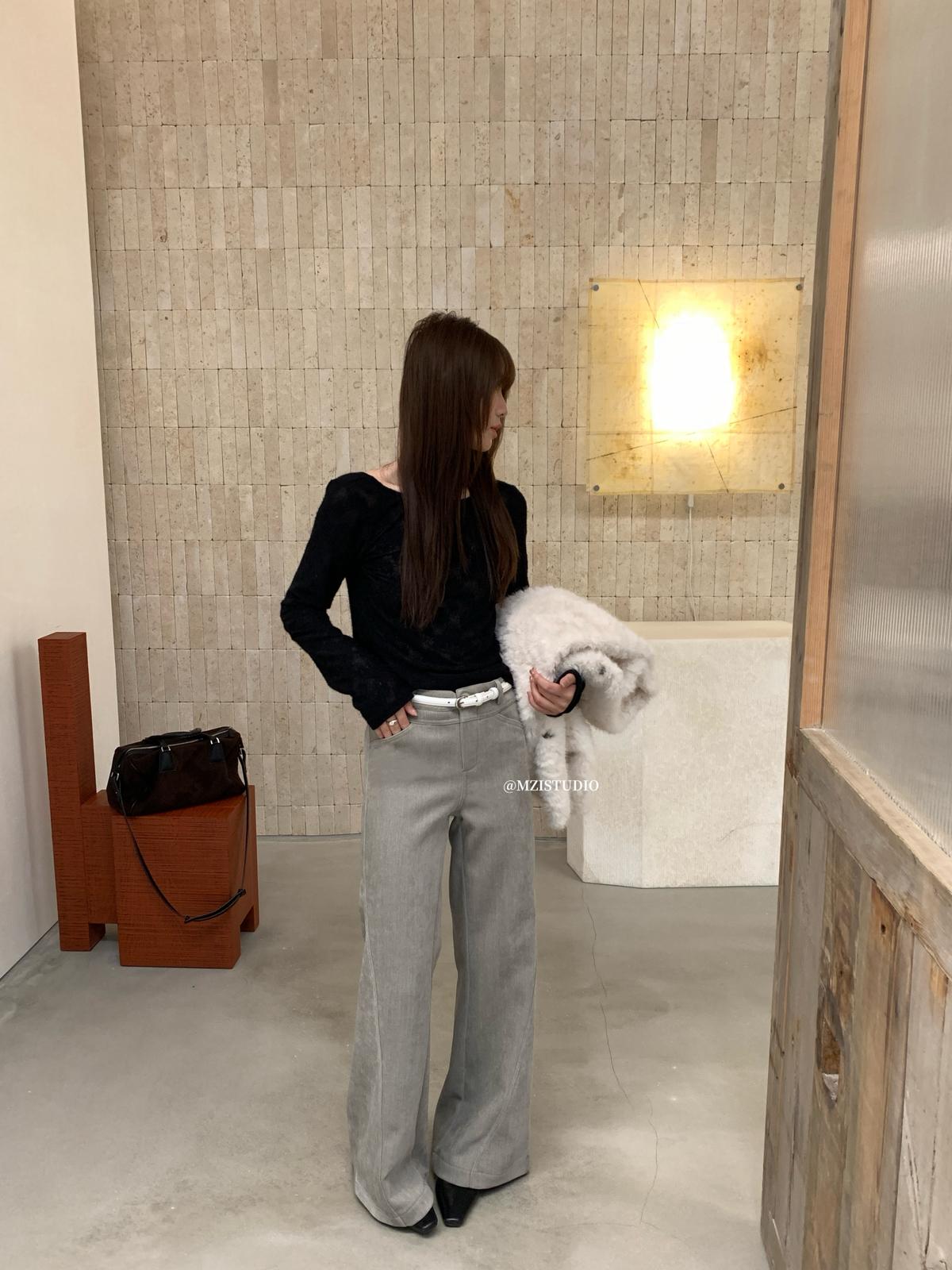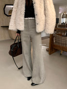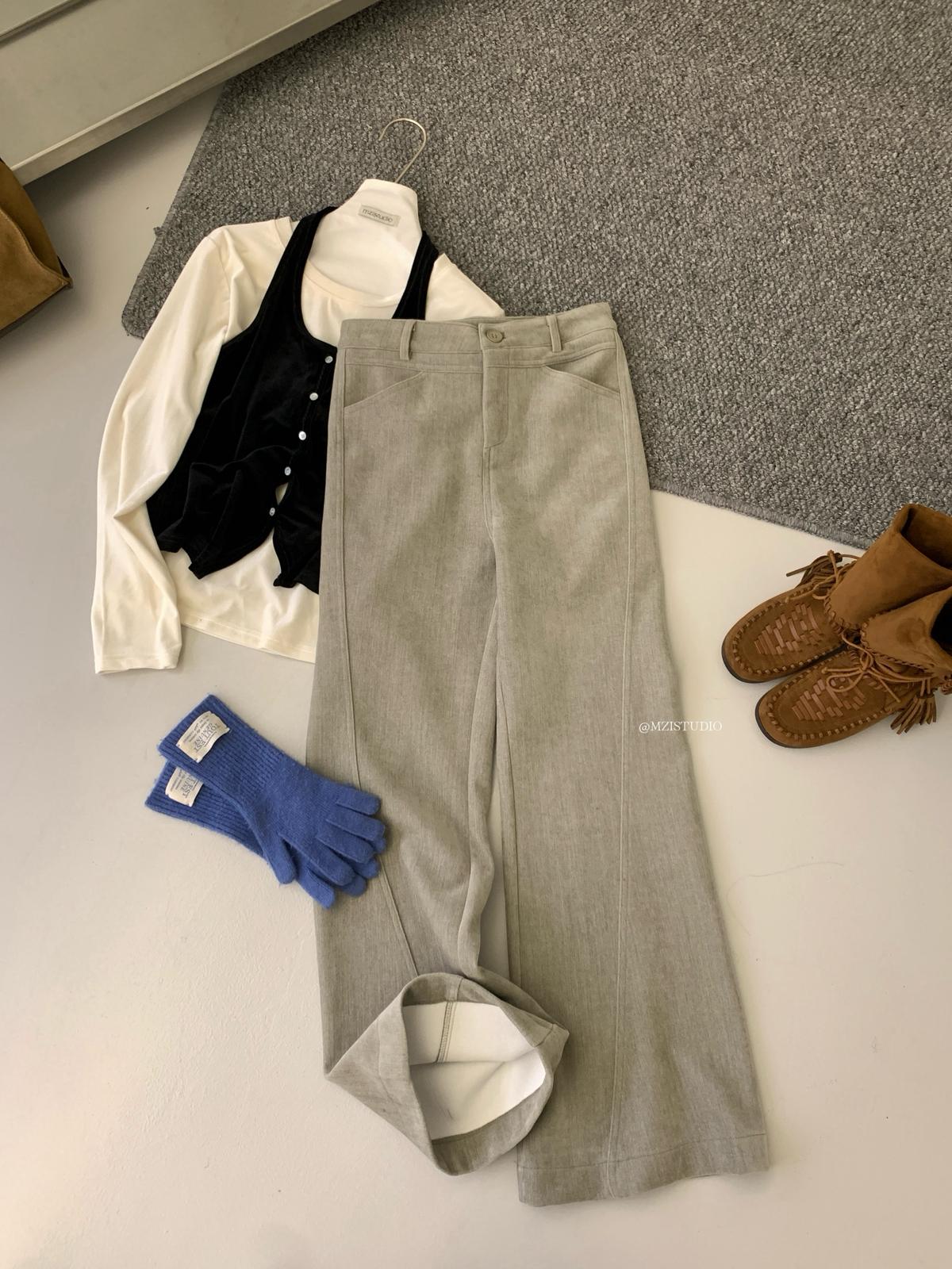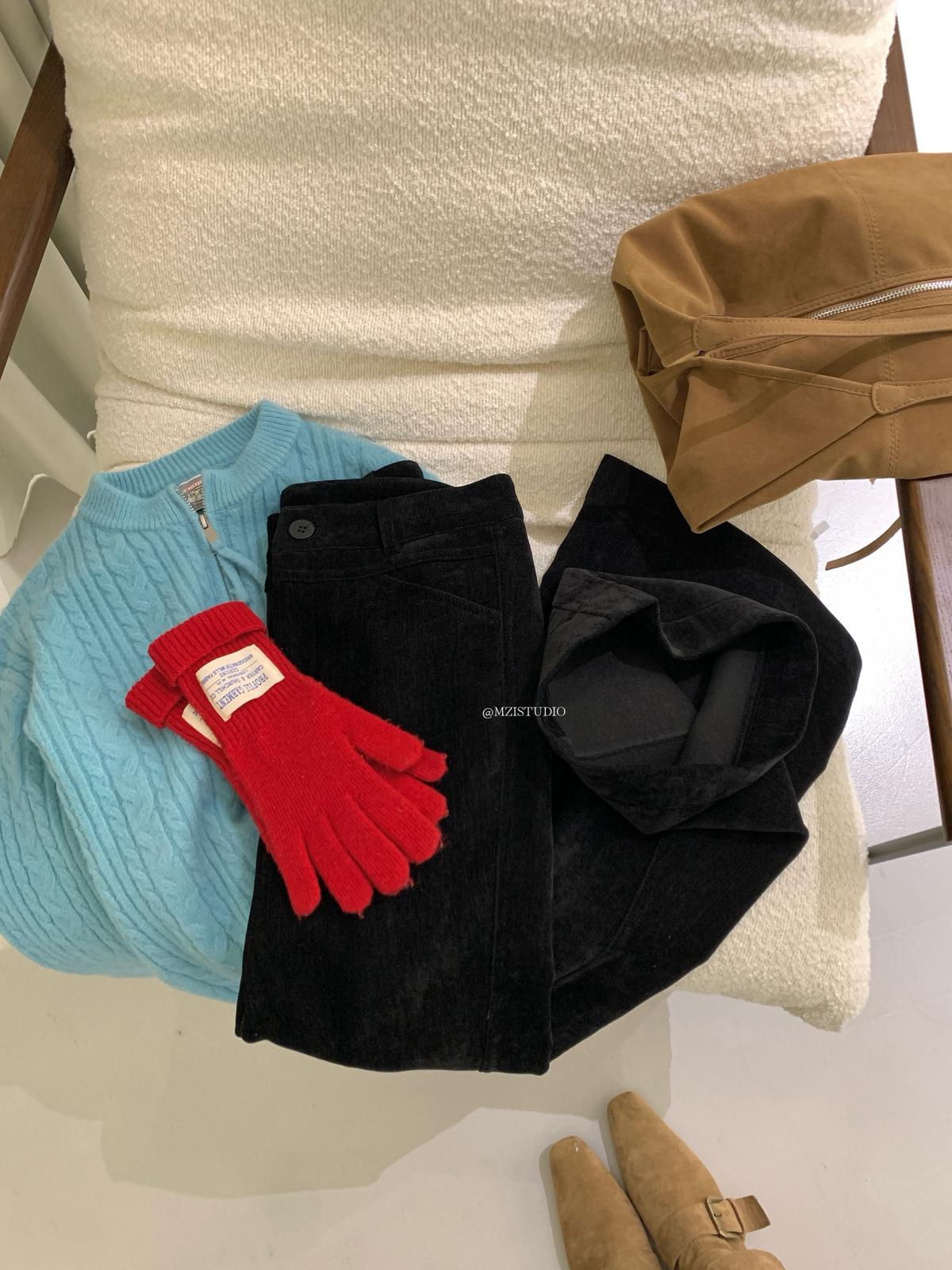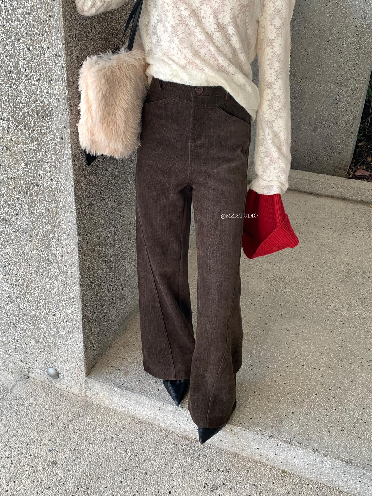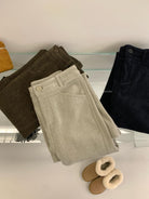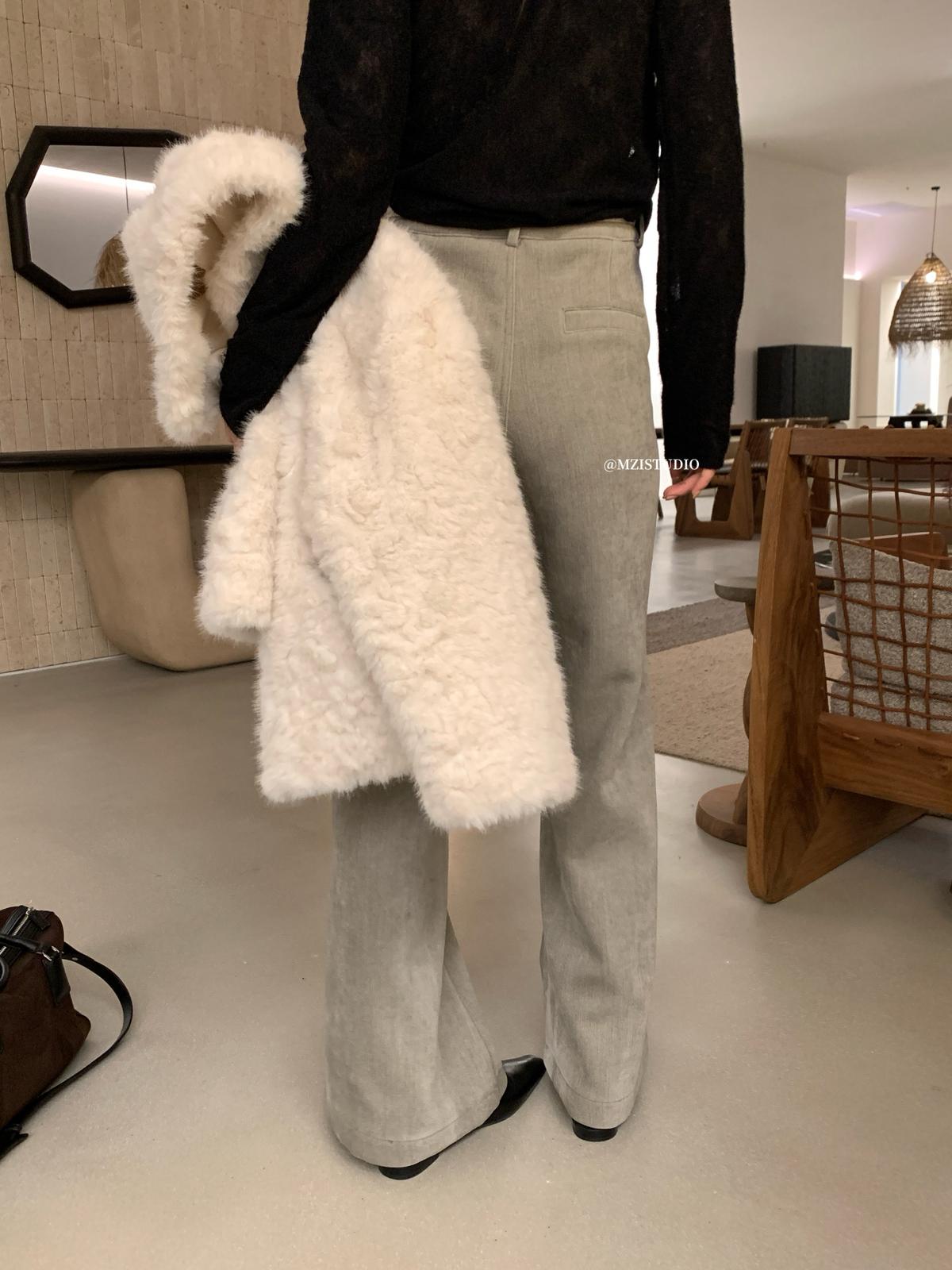 【C8354】美式格調氛圍冬日磨毛時髦酷帥微喇高腰顯腿長休閒褲