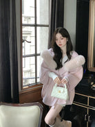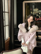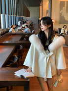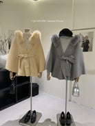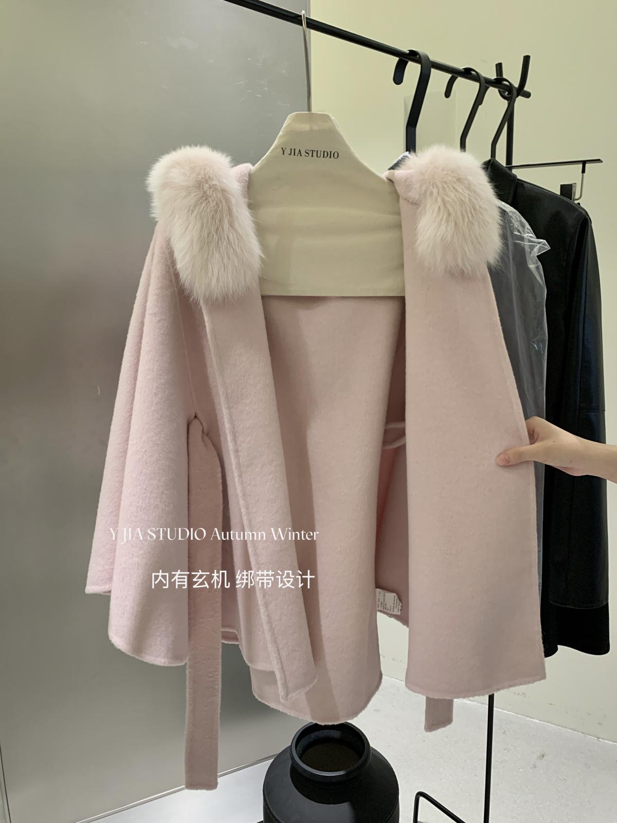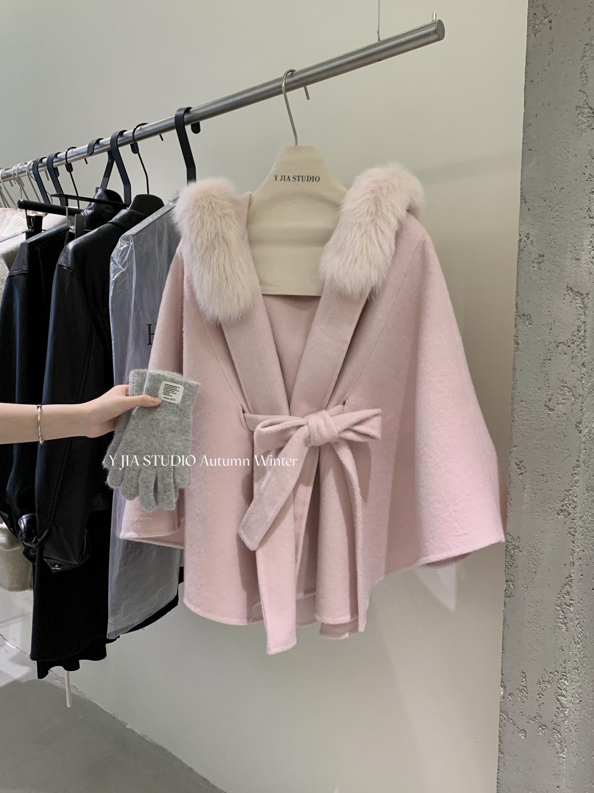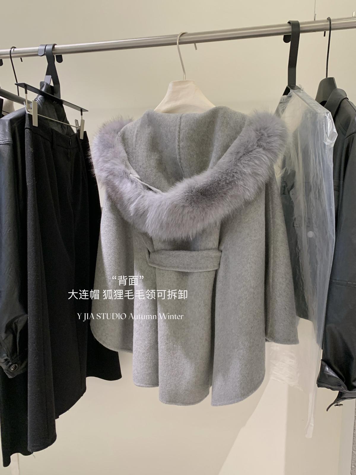 【C8359】京都千金重磅狐狸毛大毛領斗篷外套雙面羊毛呢子大衣羊毛外套(配毛領狐狸毛仿毛可拆卸,腰繩)(含70%羊毛)