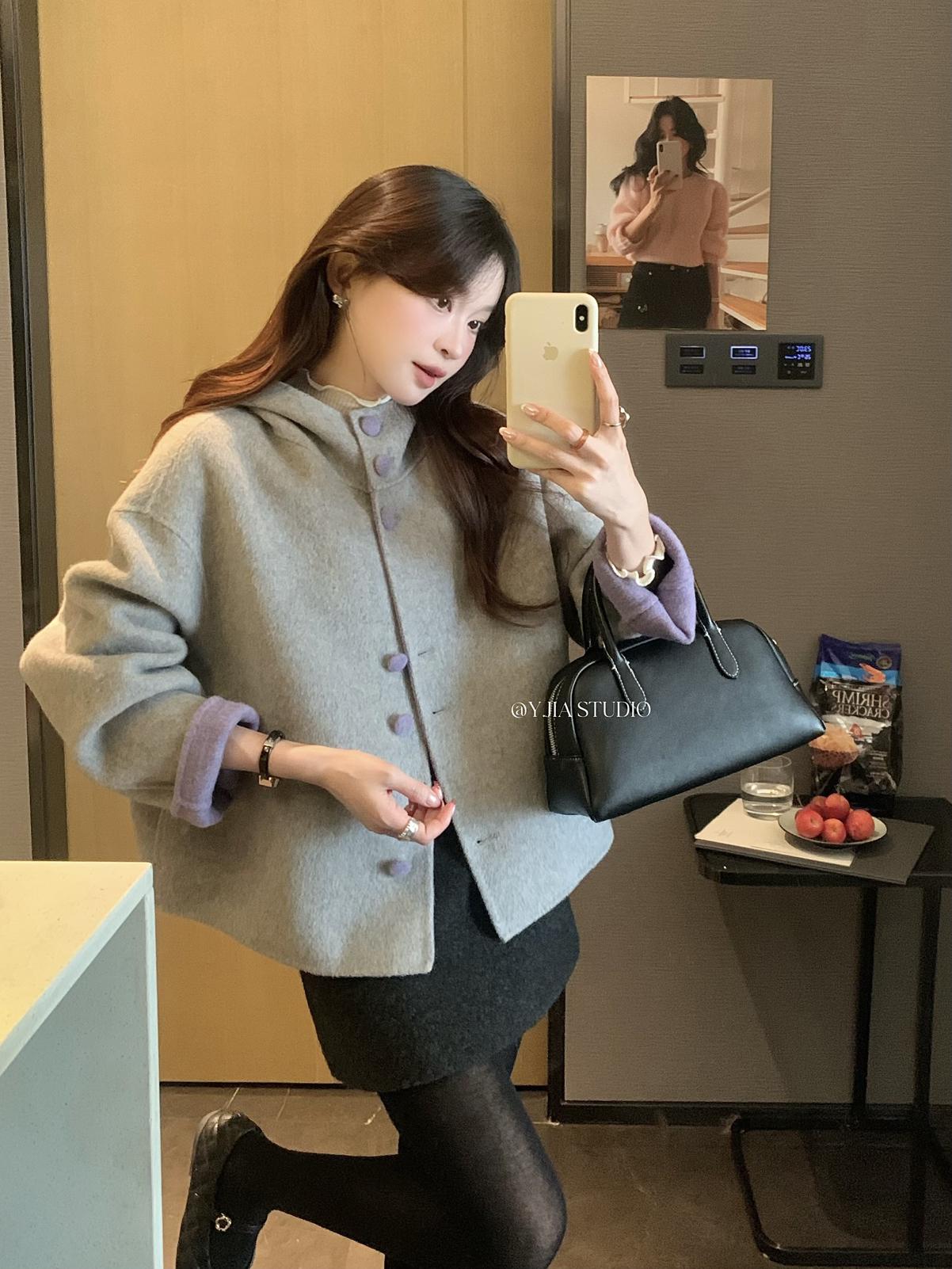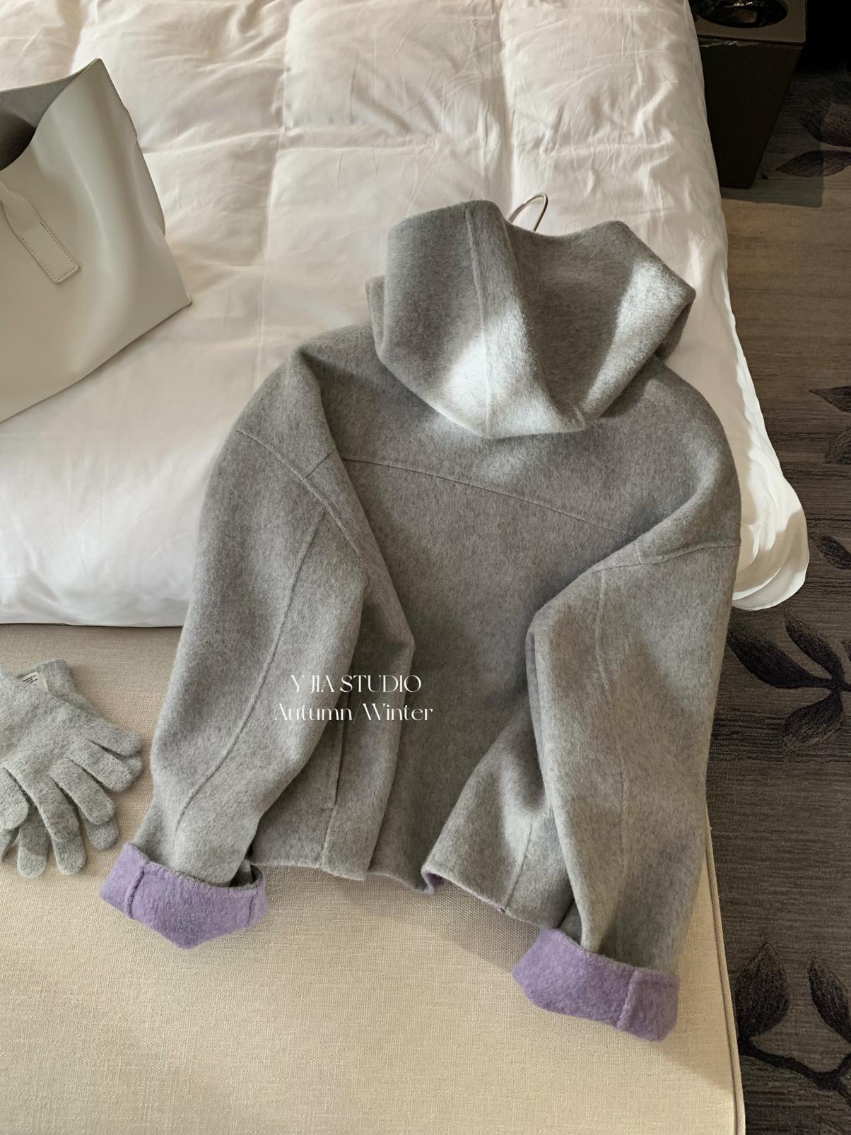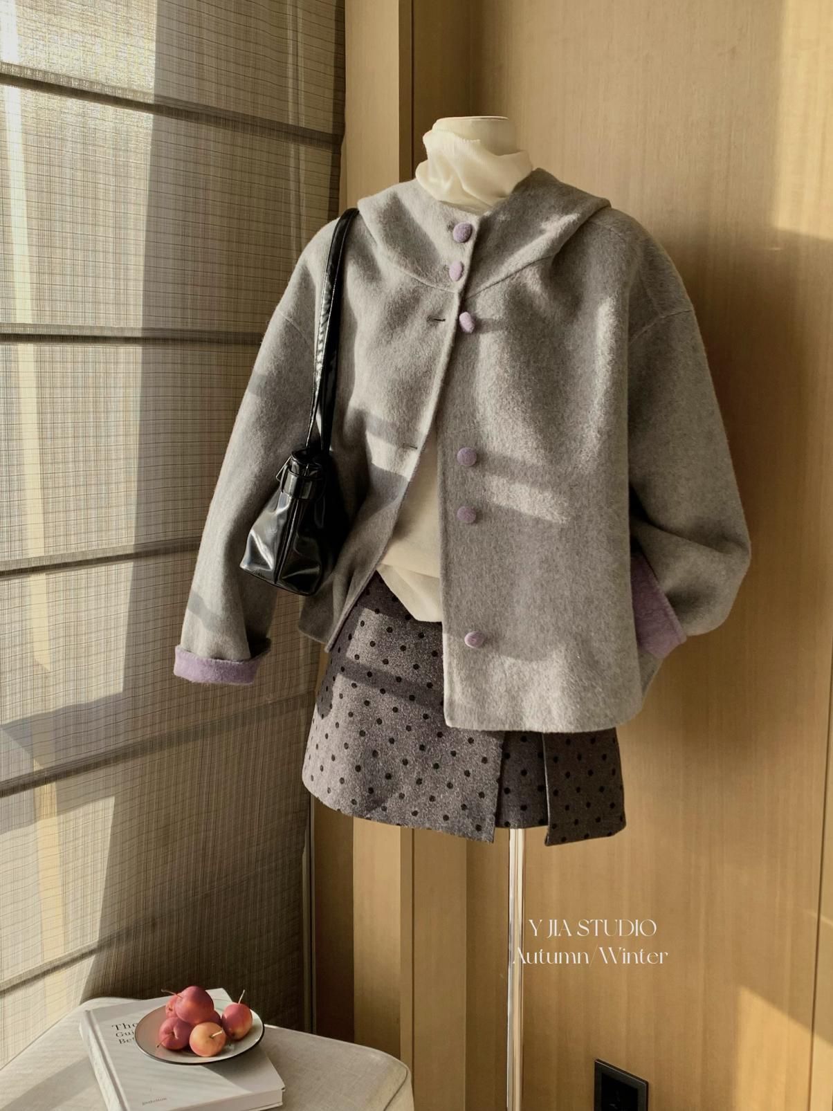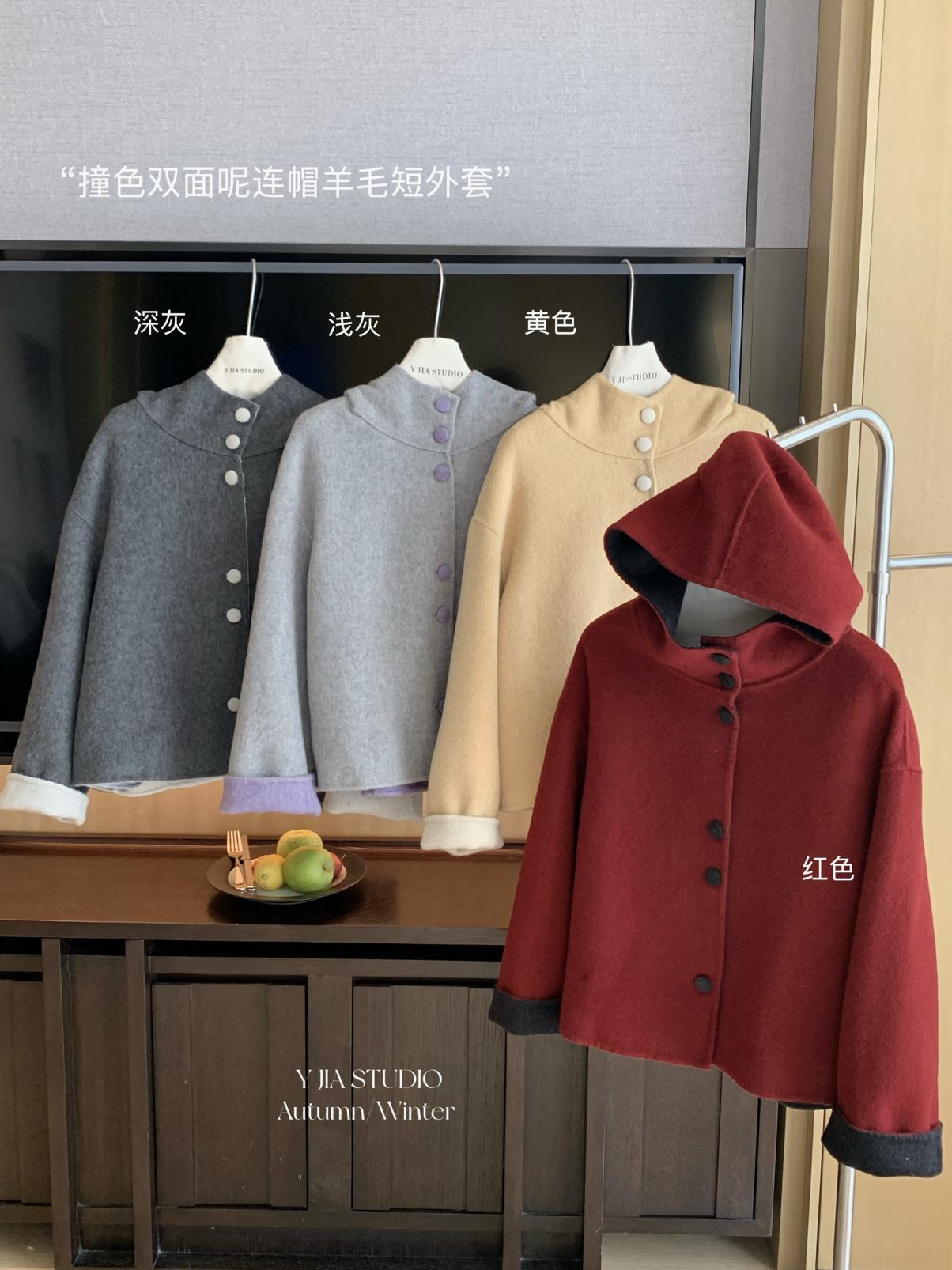 3. 【C8361】撞色雙面呢連帽羊毛短外套羊毛外套(含70.2%羊毛)