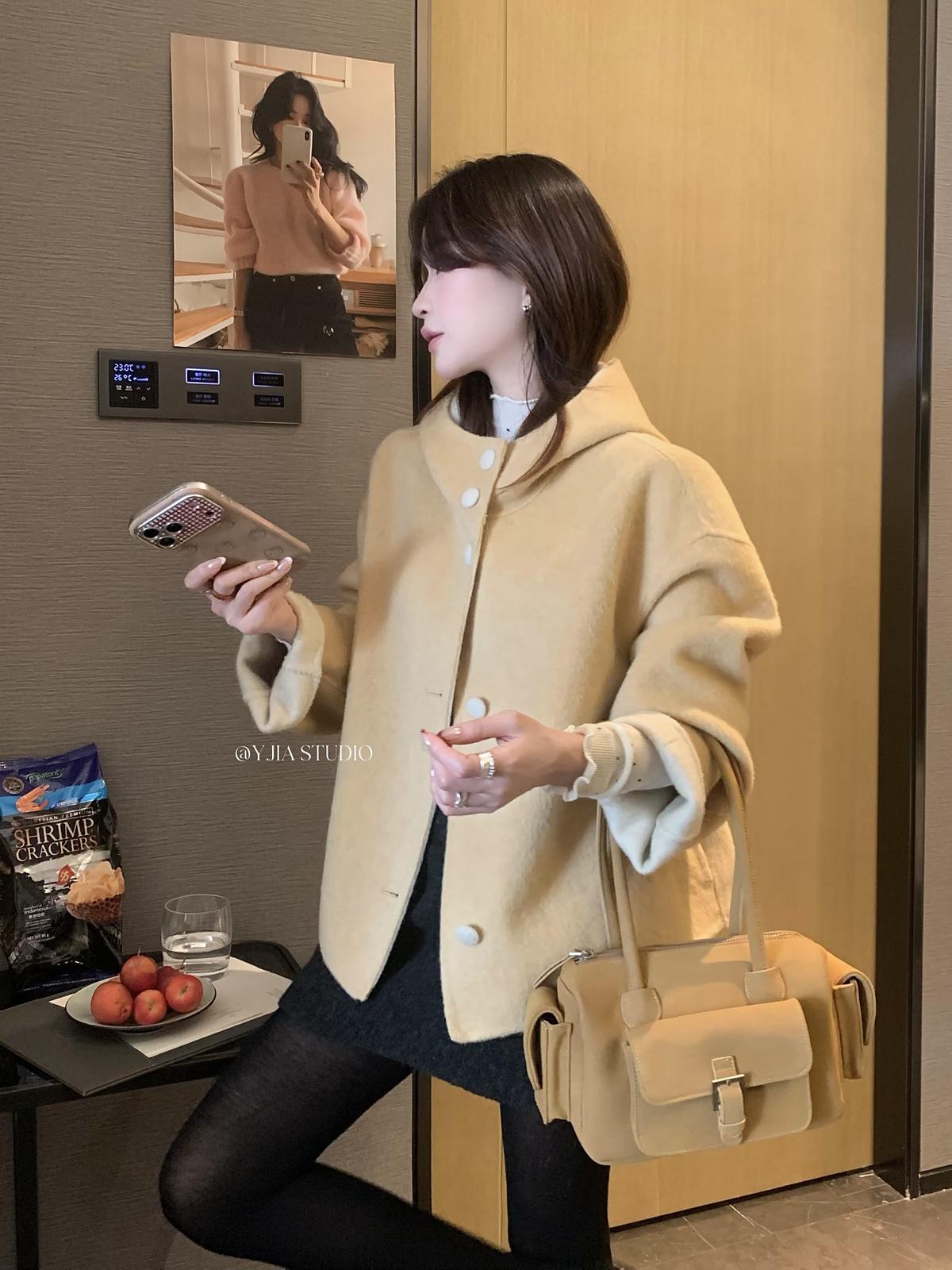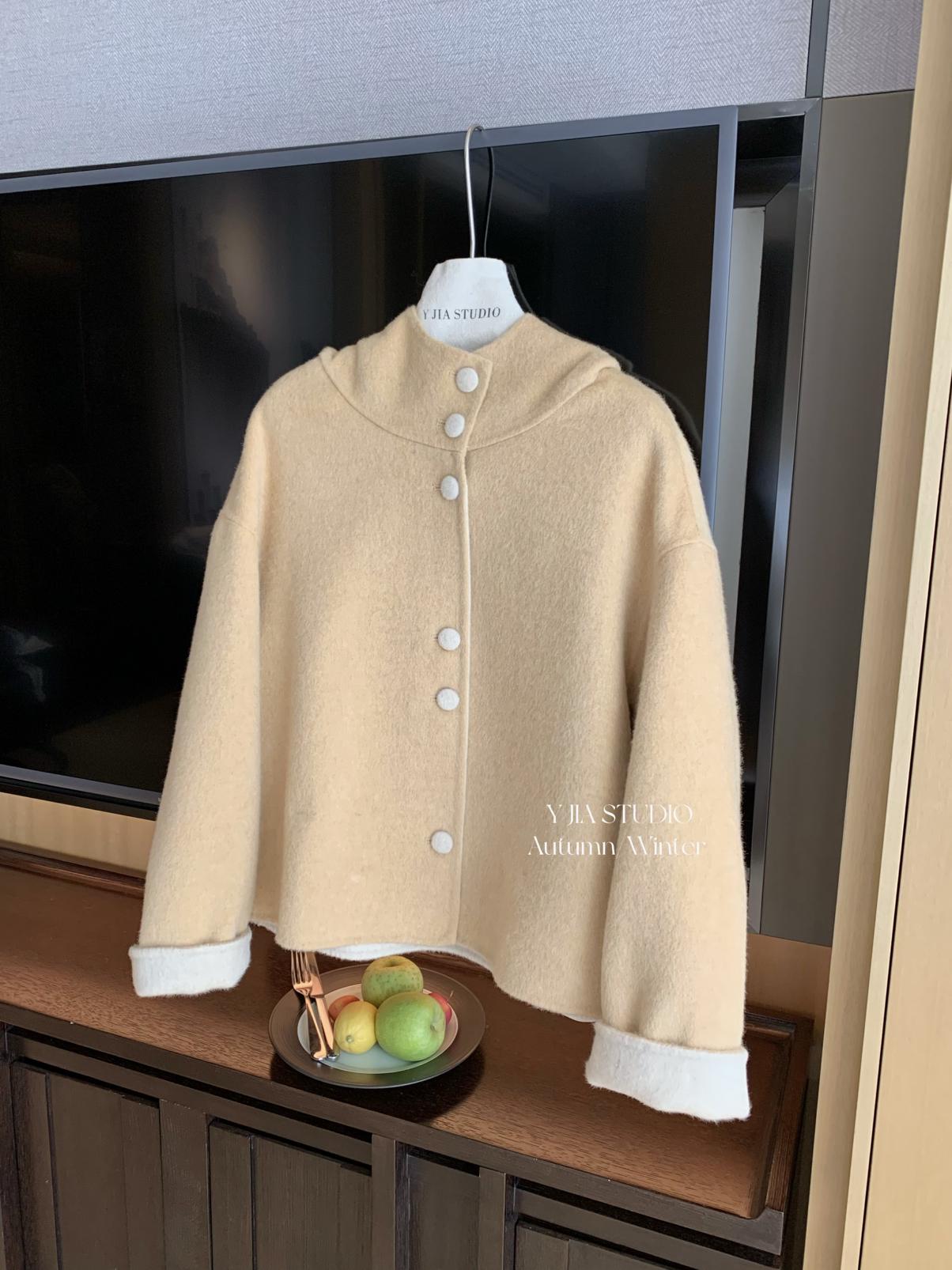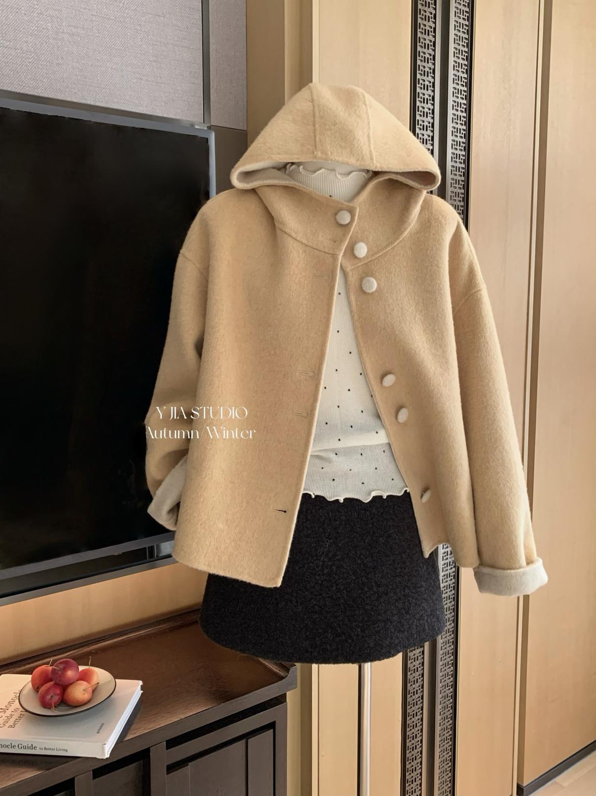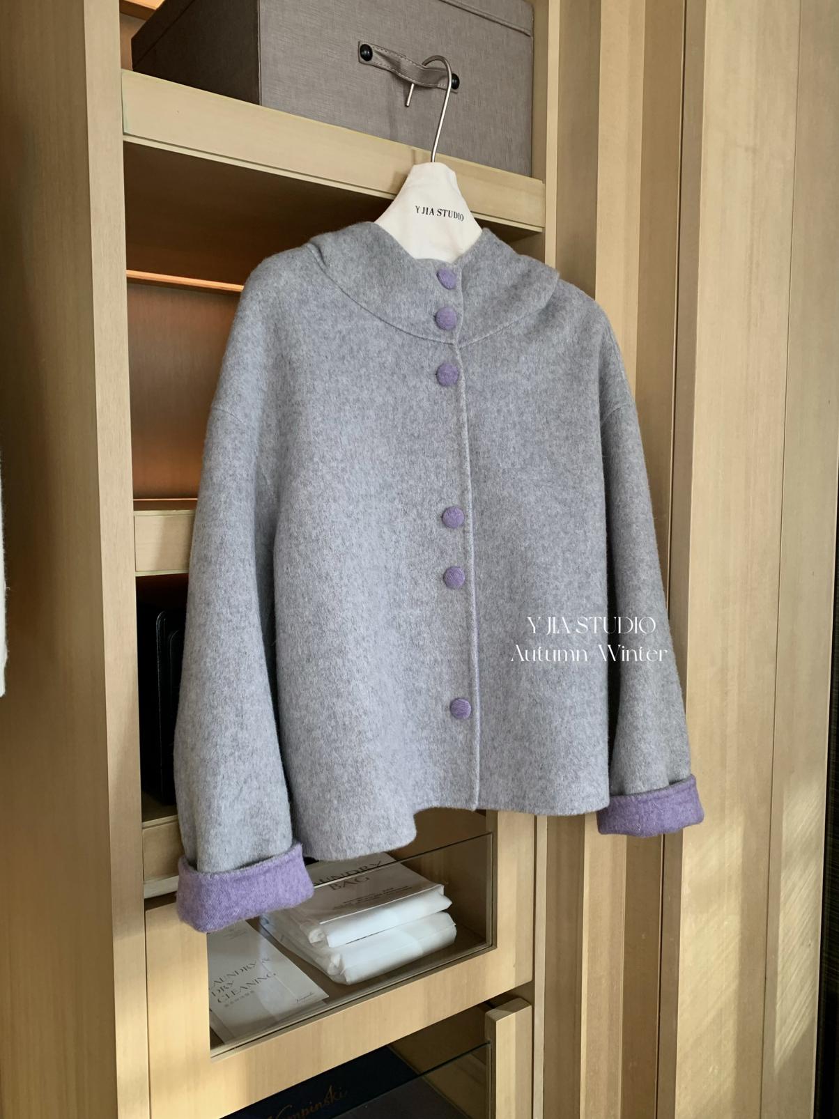 3. 【C8361】撞色雙面呢連帽羊毛短外套羊毛外套(含70.2%羊毛)