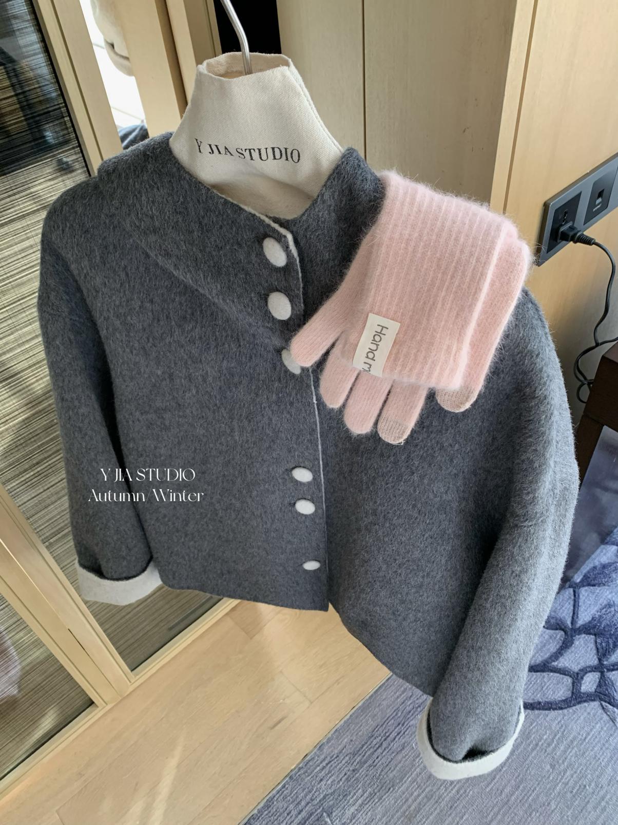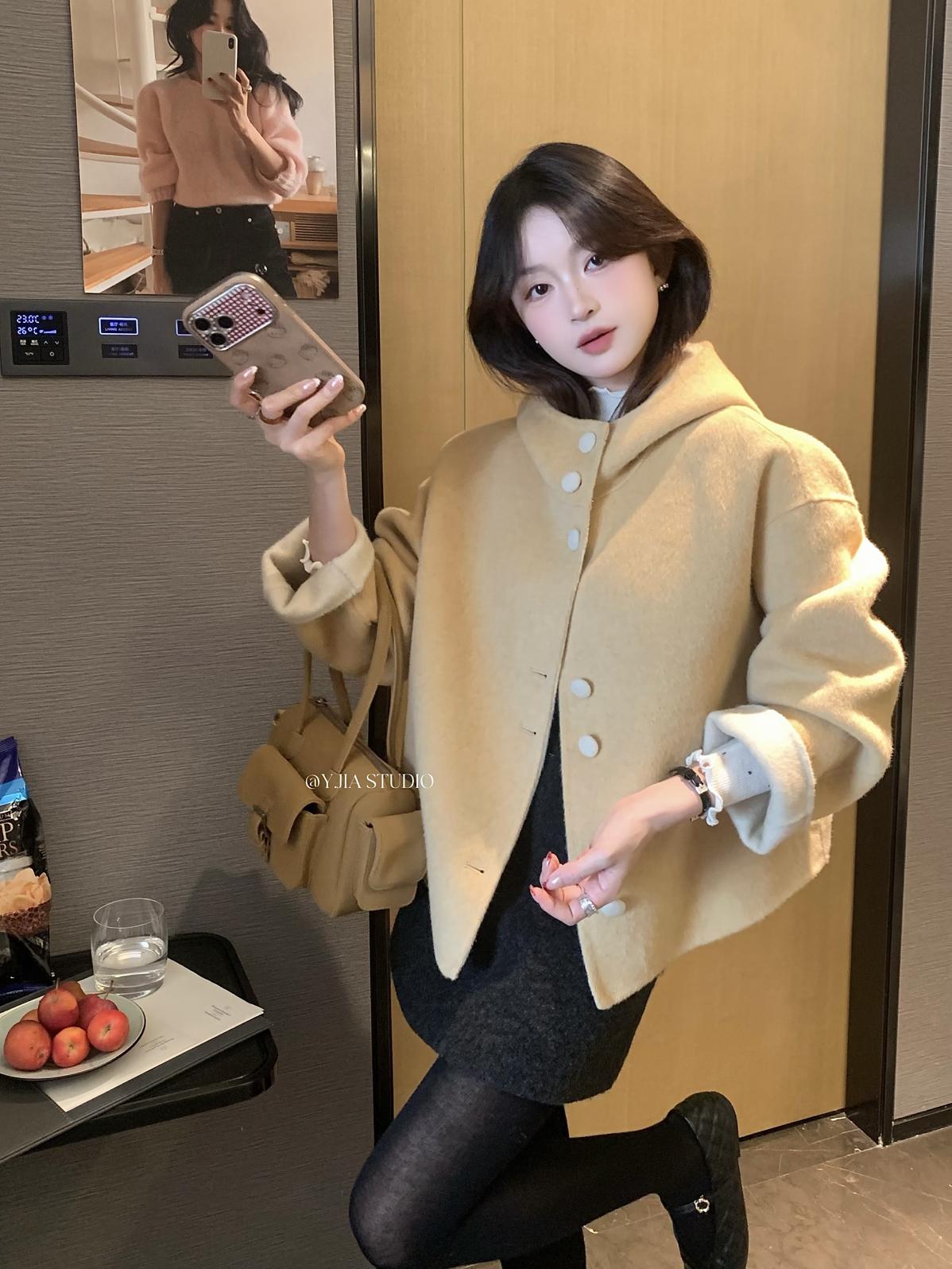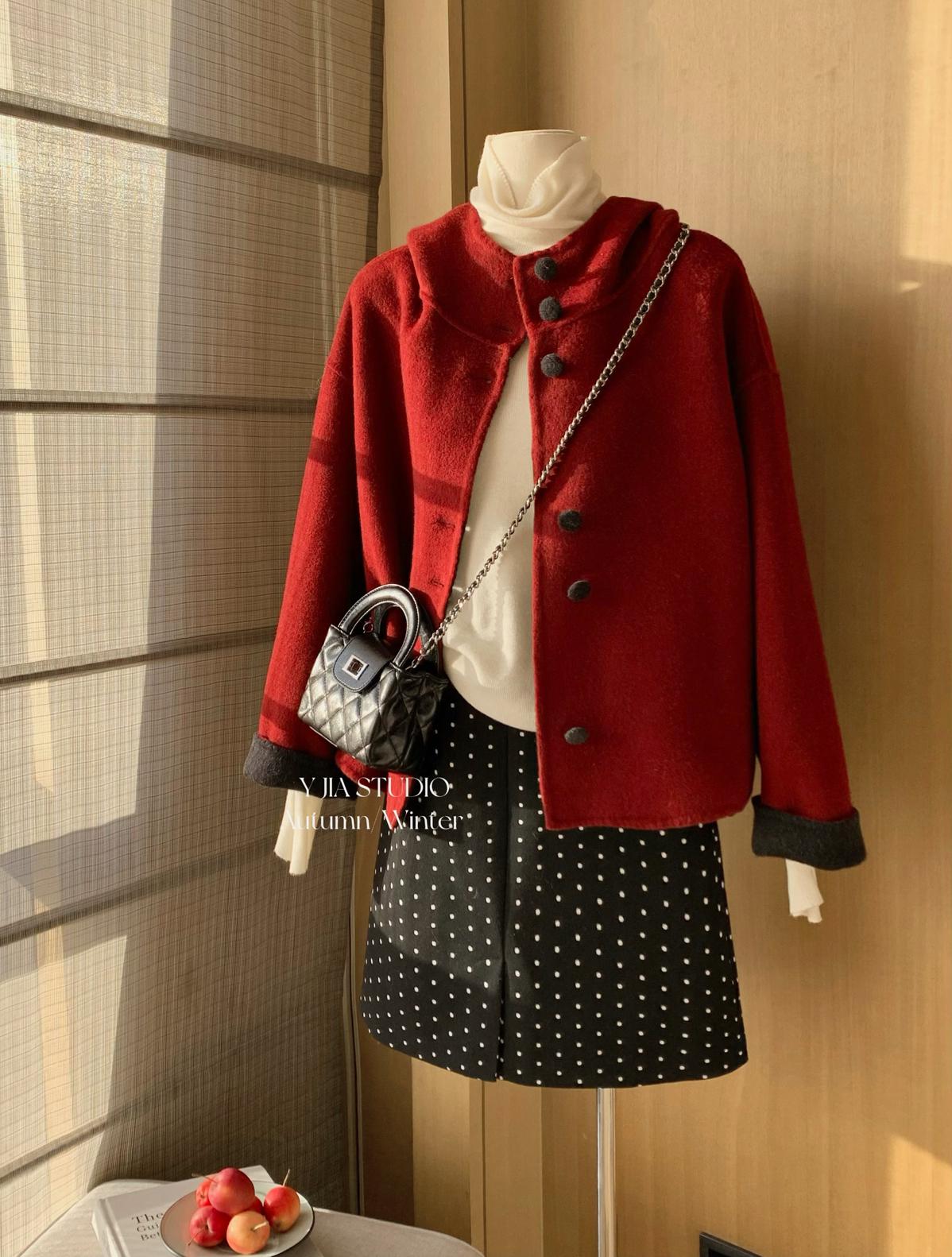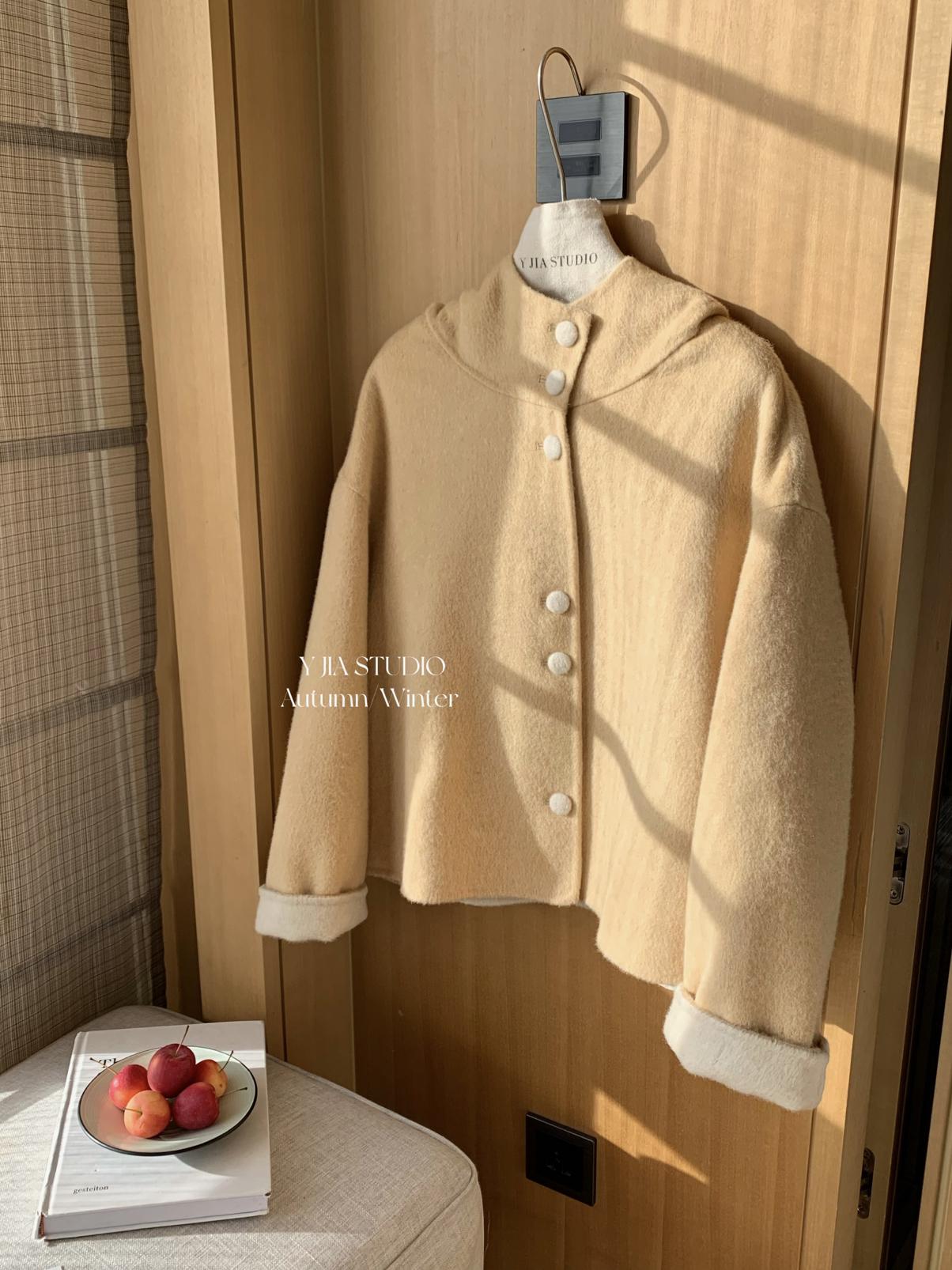 【C8361】撞色雙面呢連帽羊毛短外套羊毛外套(含70.2%羊毛)