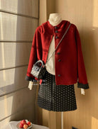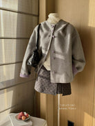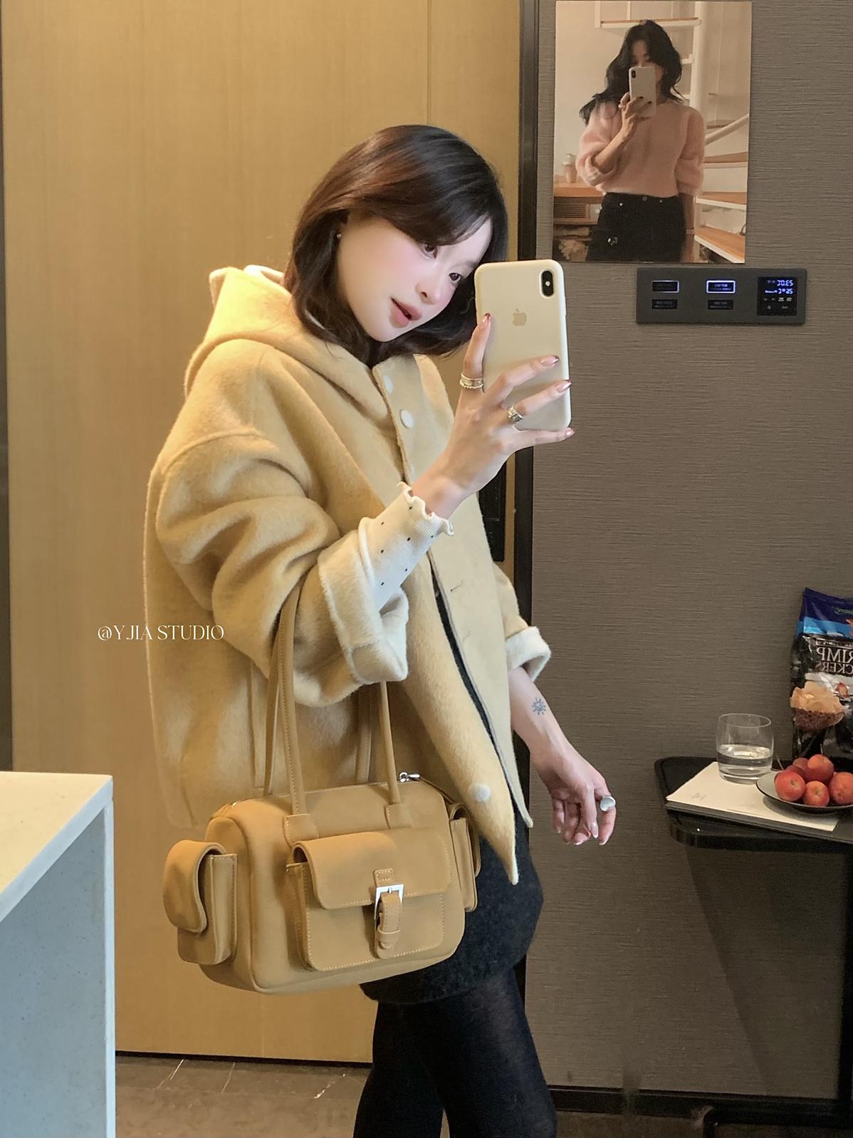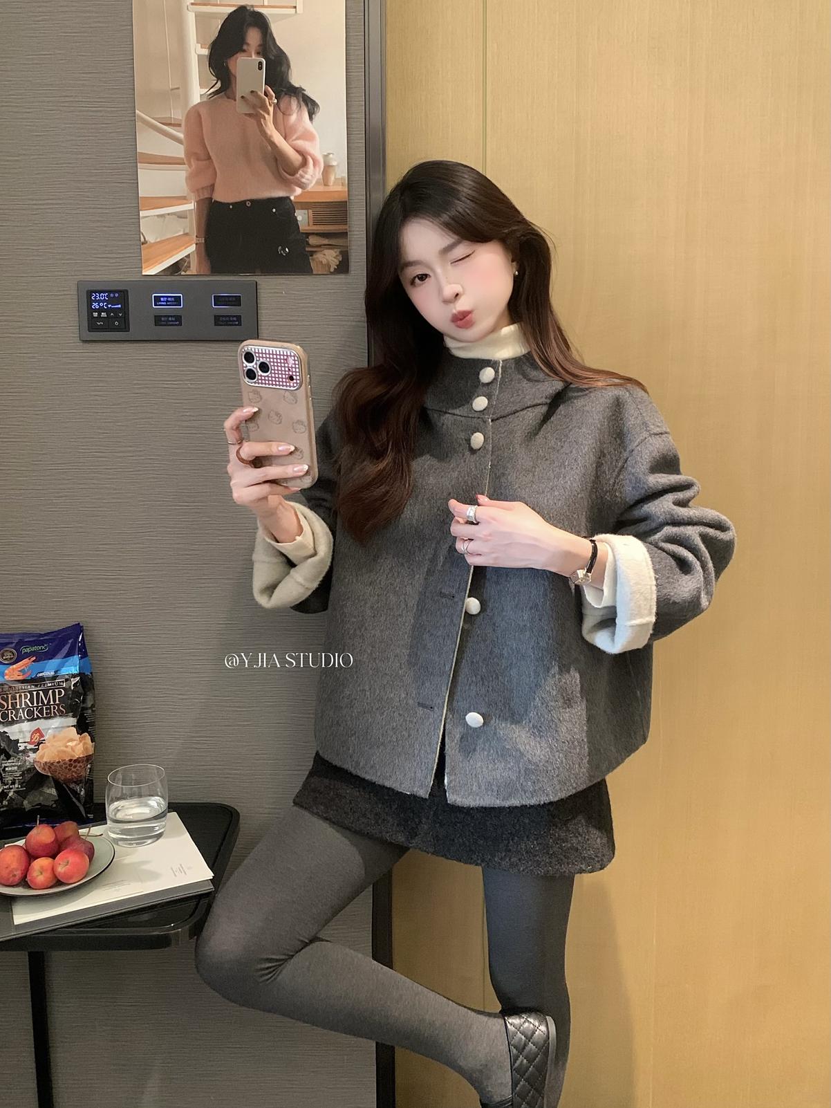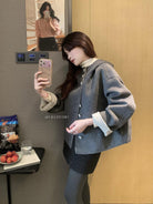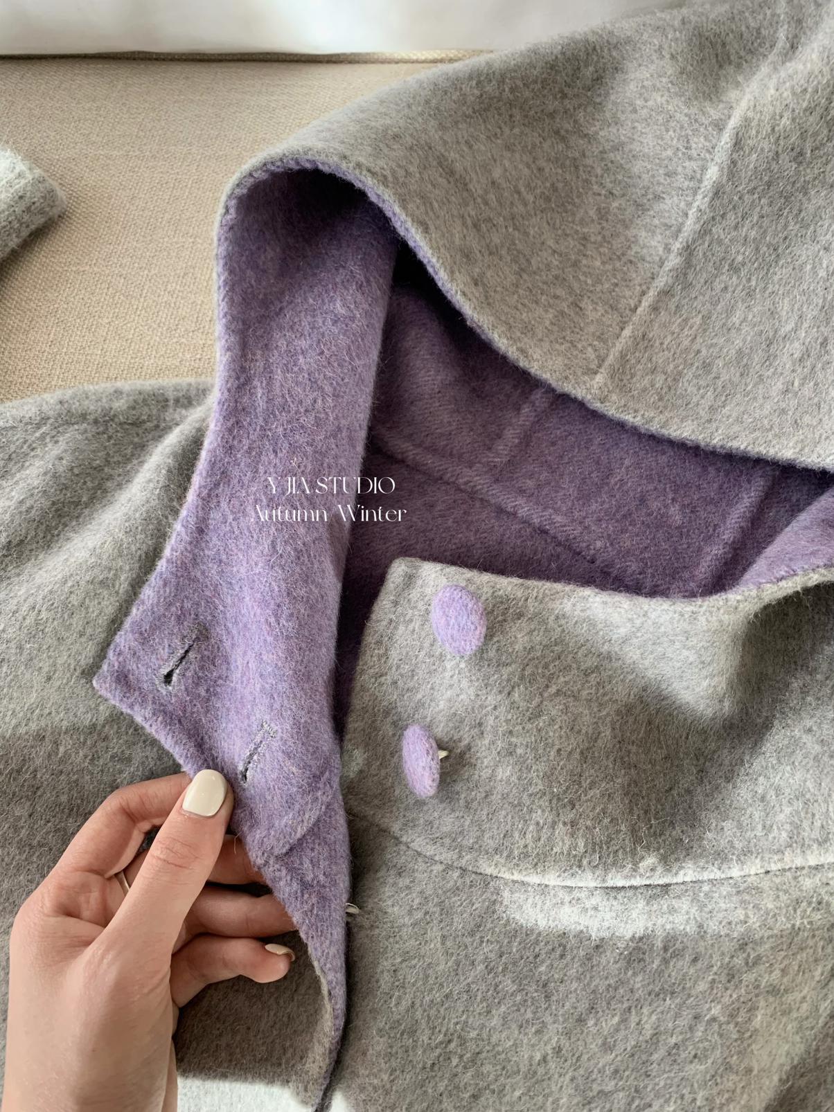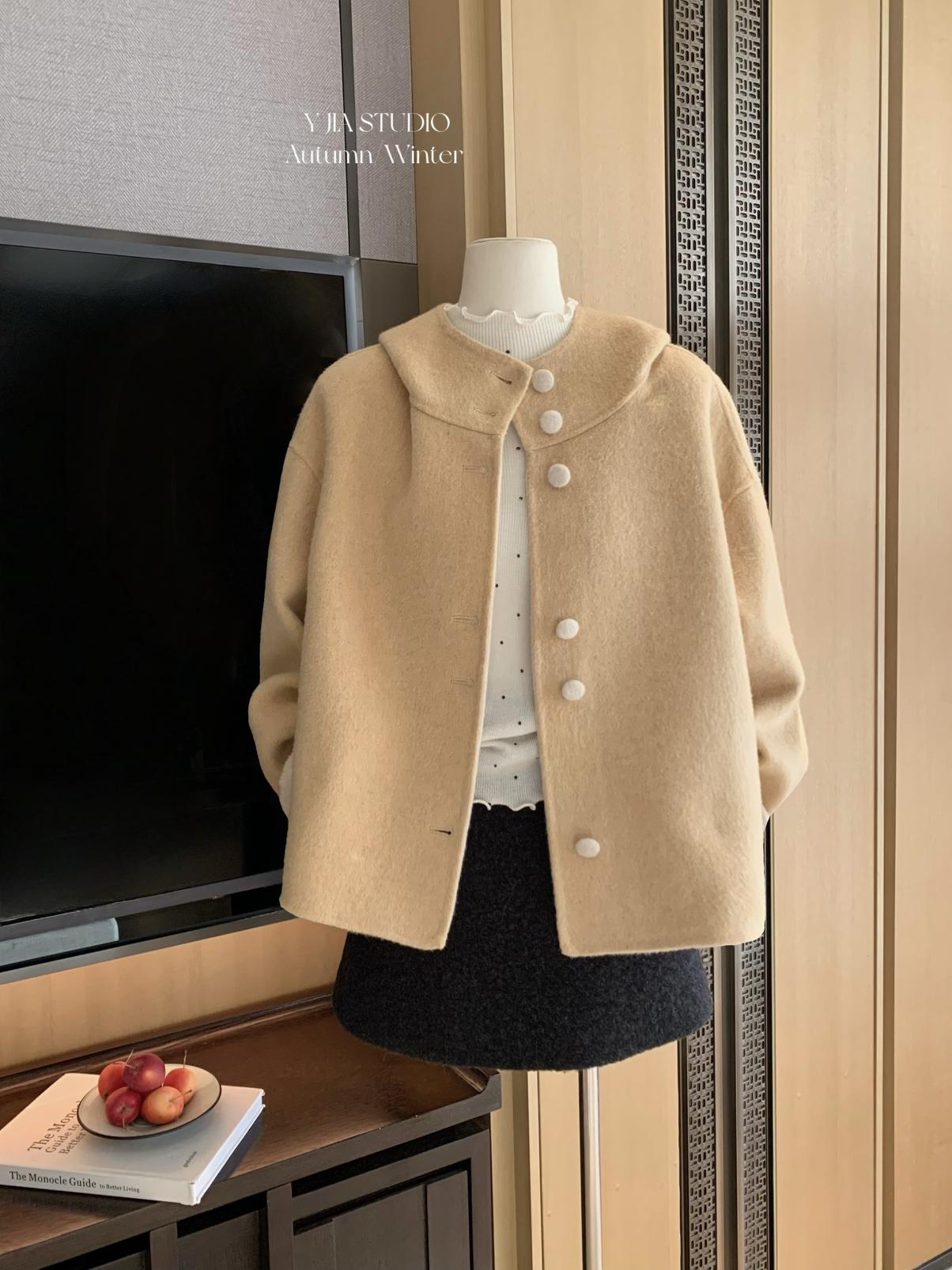 【C8361】撞色雙面呢連帽羊毛短外套羊毛外套(含70.2%羊毛)