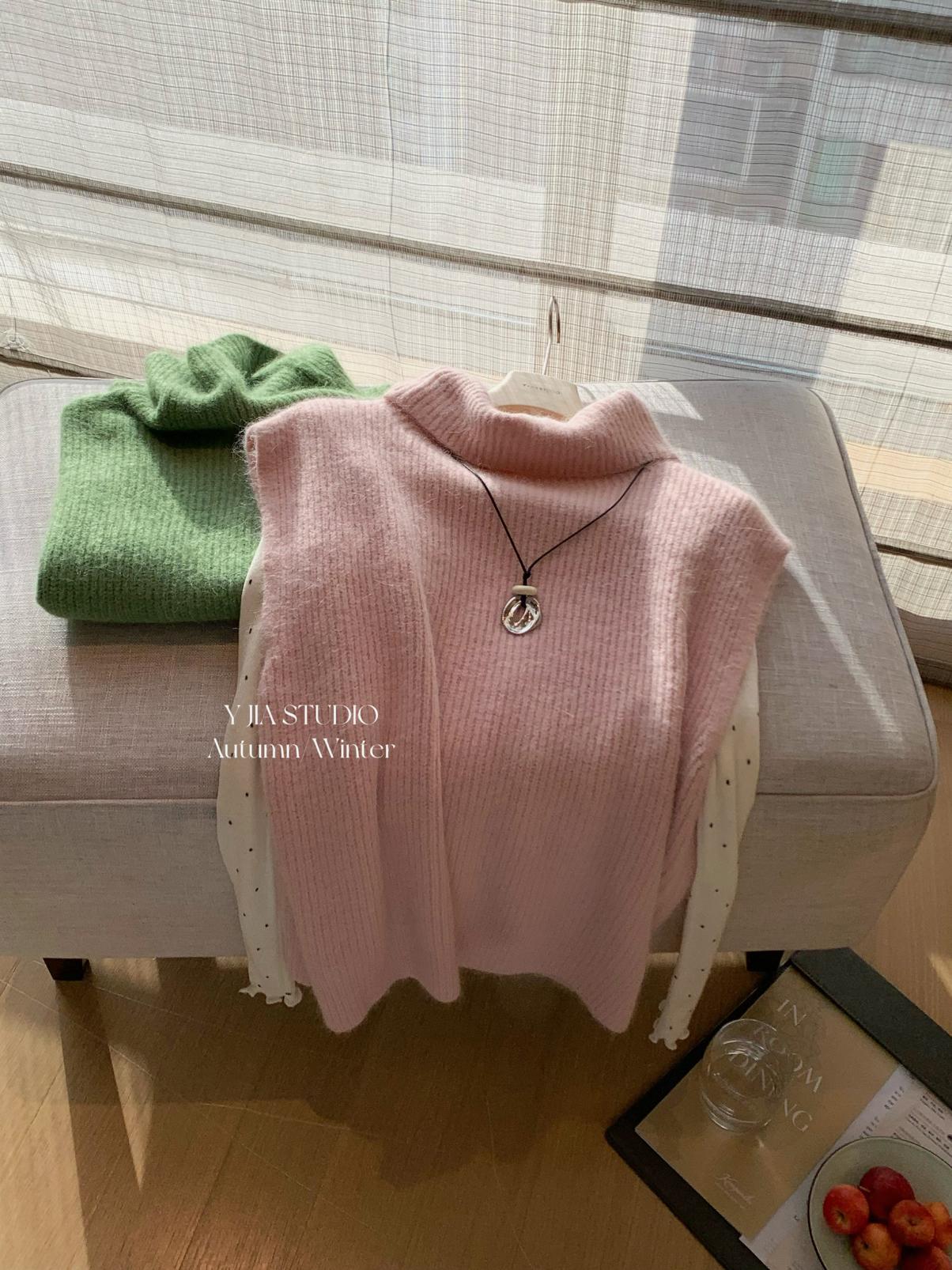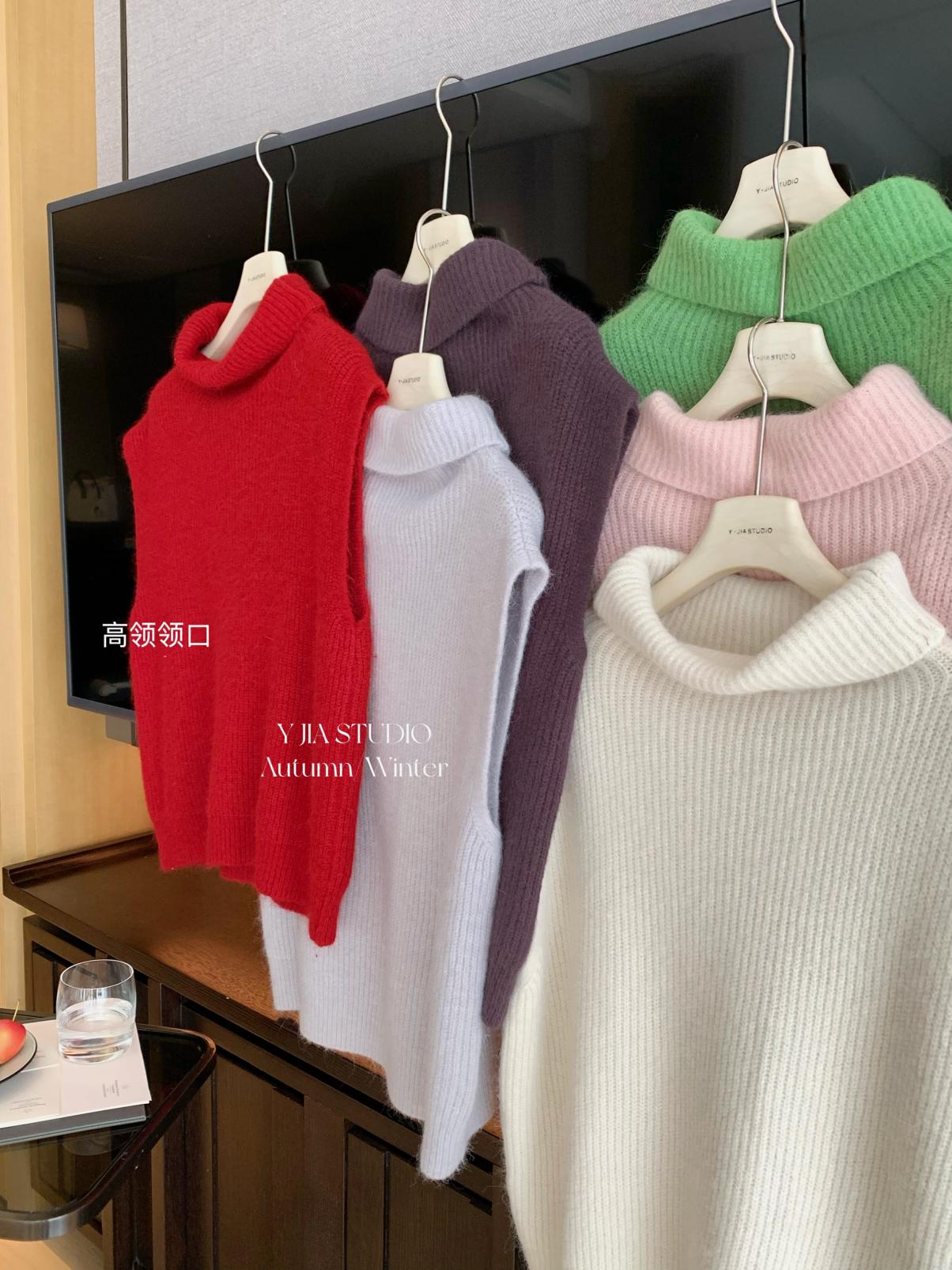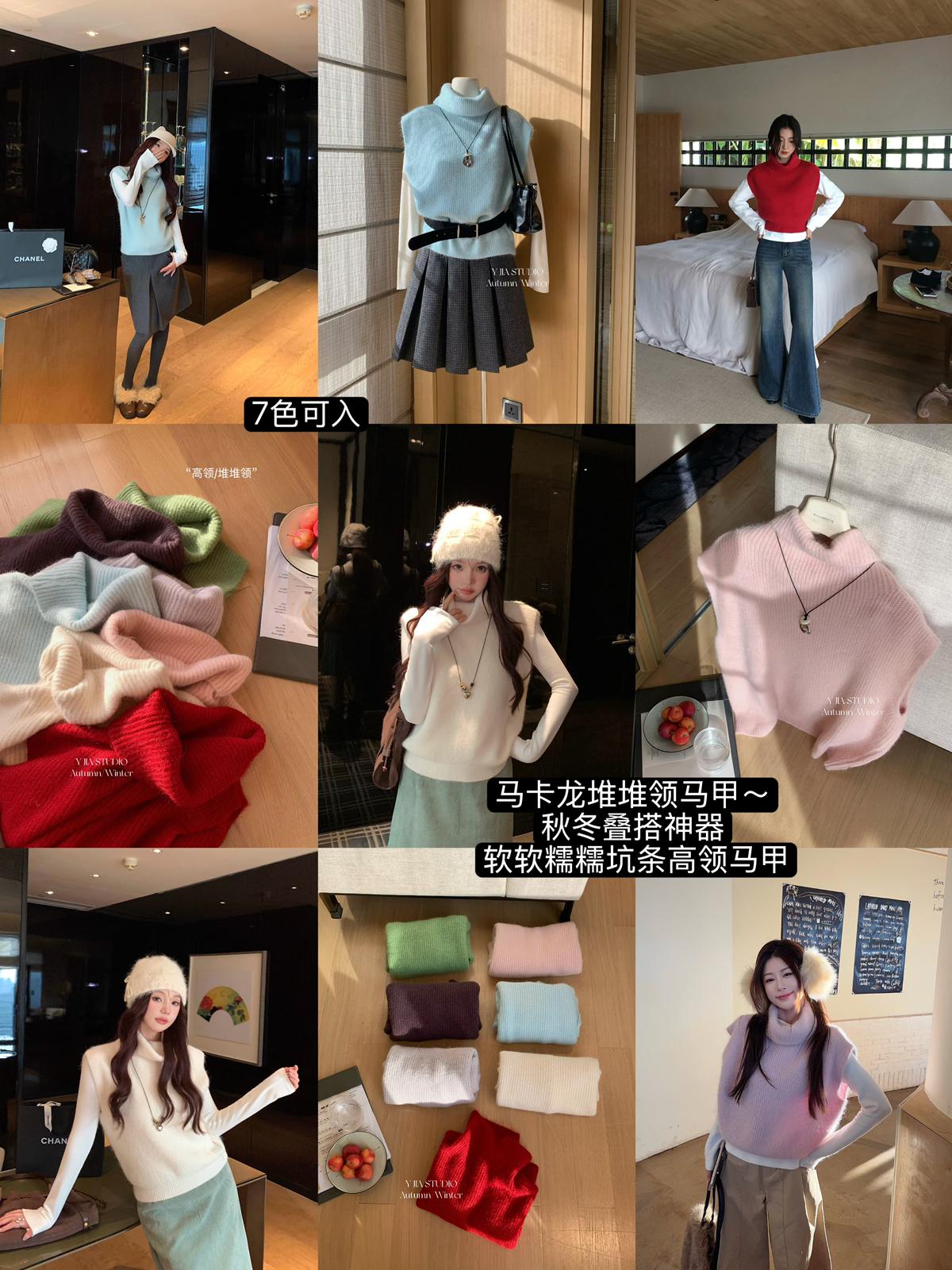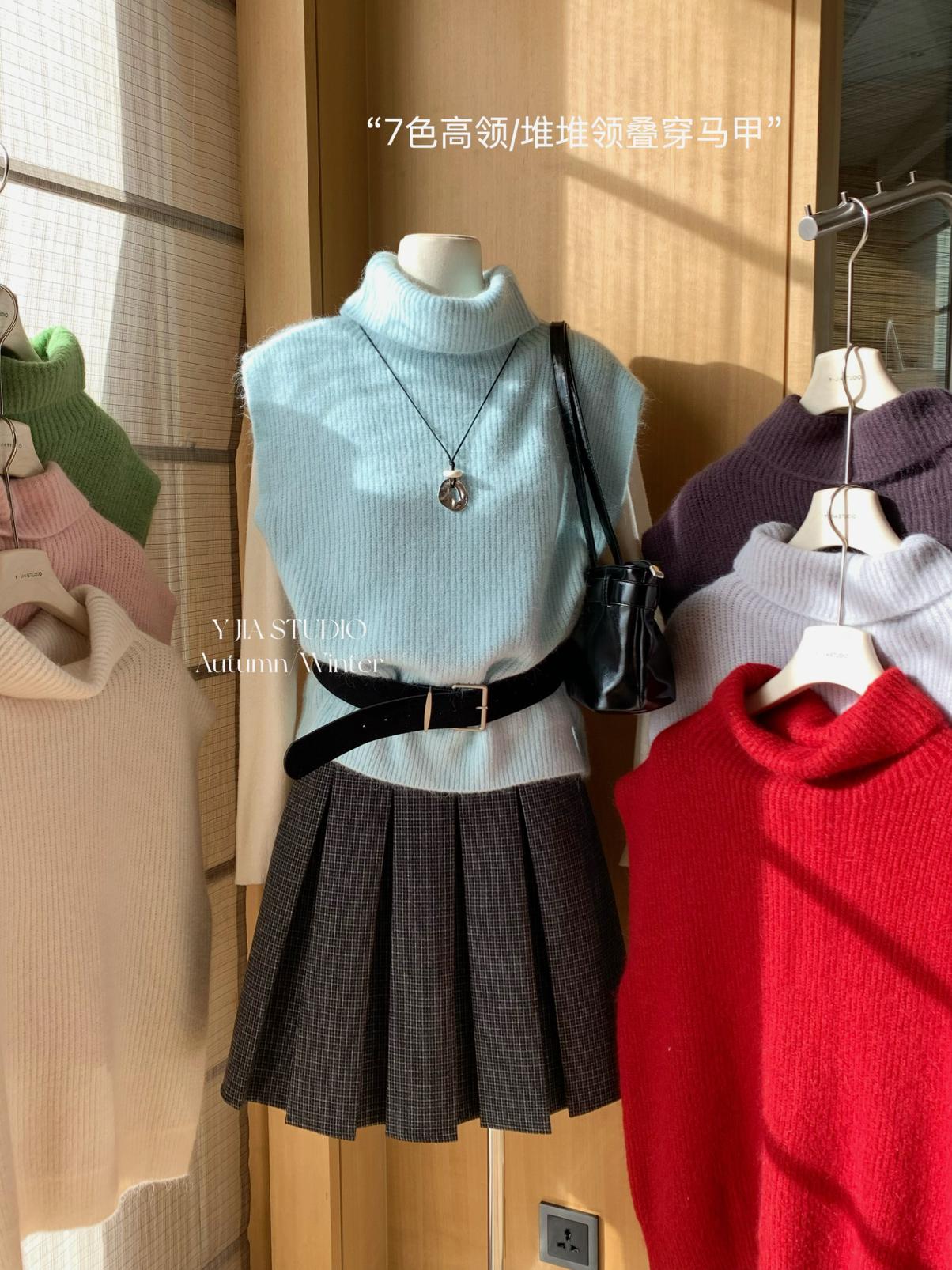 【C8362】馬卡龍堆堆領~秋冬疊搭神器 軟軟糯糯坑條高領保暖毛衣