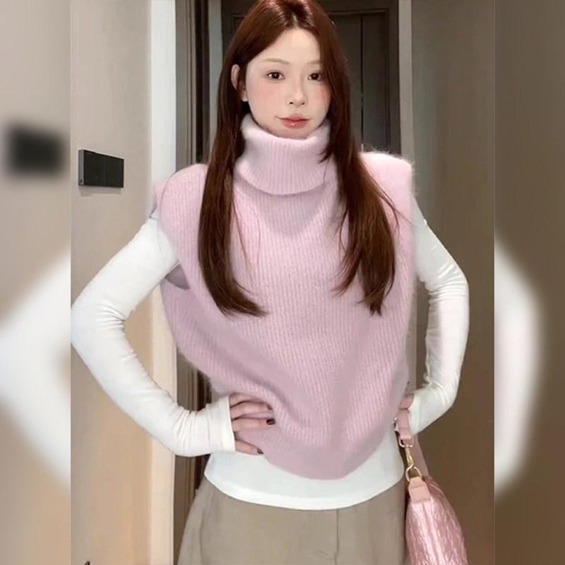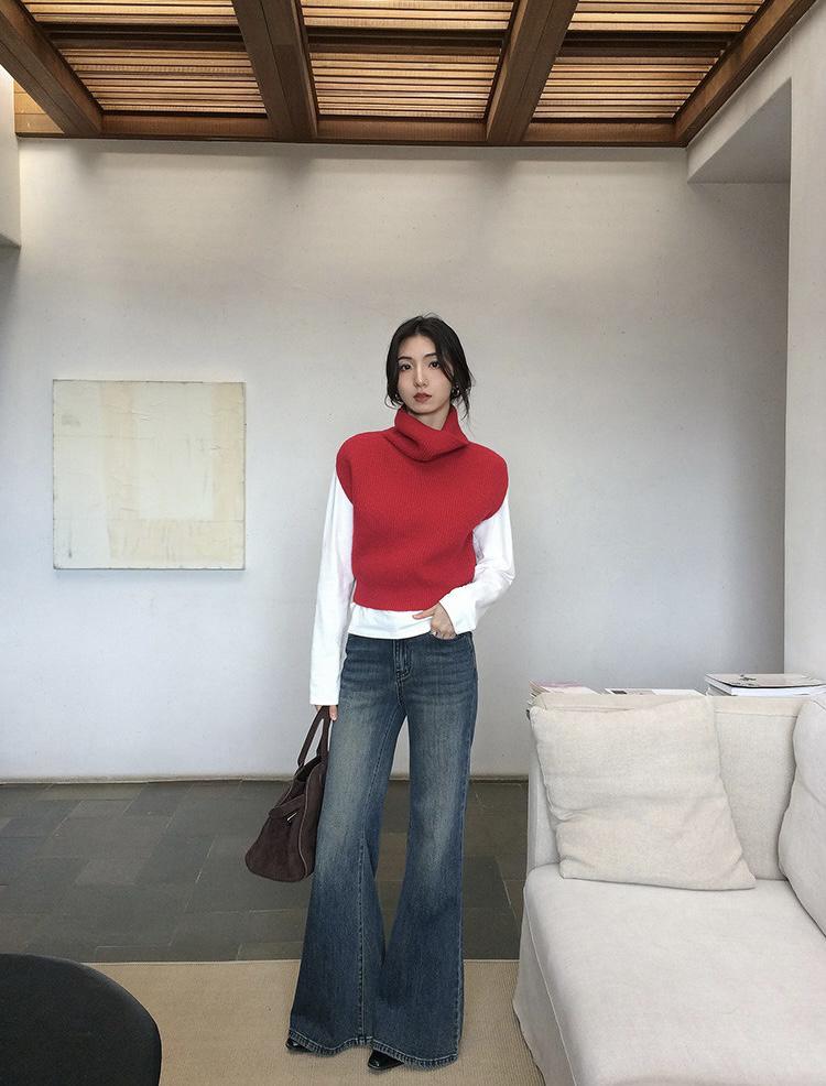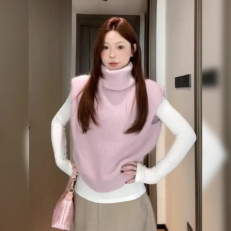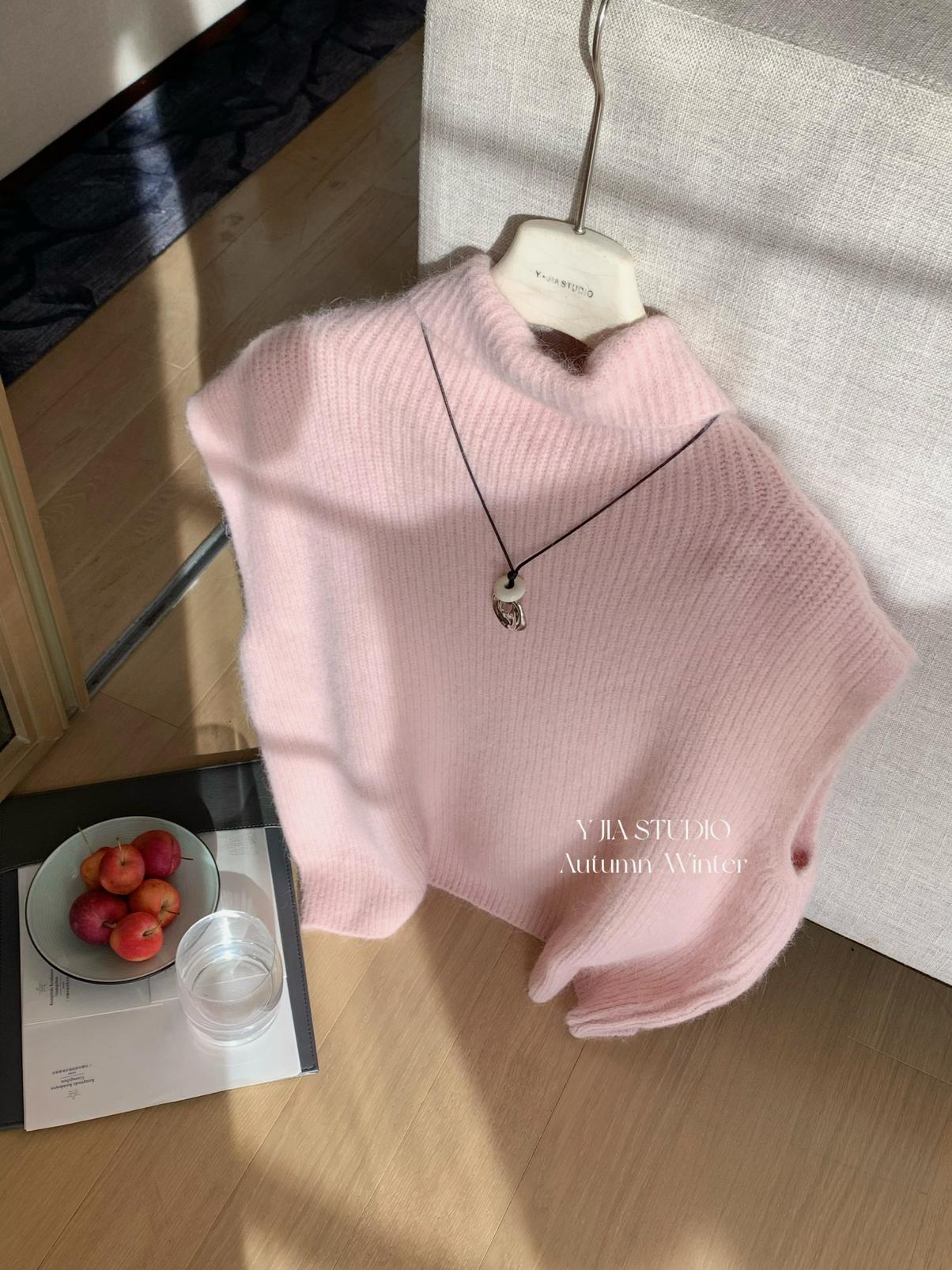 【C8362】馬卡龍堆堆領~秋冬疊搭神器 軟軟糯糯坑條高領保暖毛衣