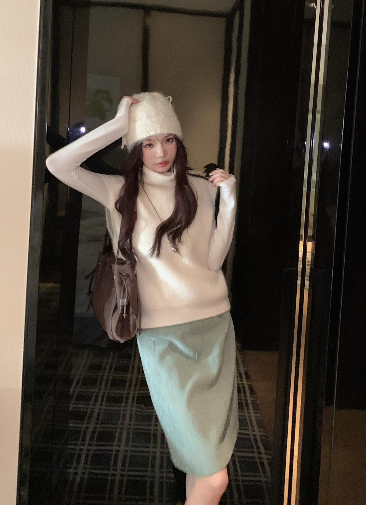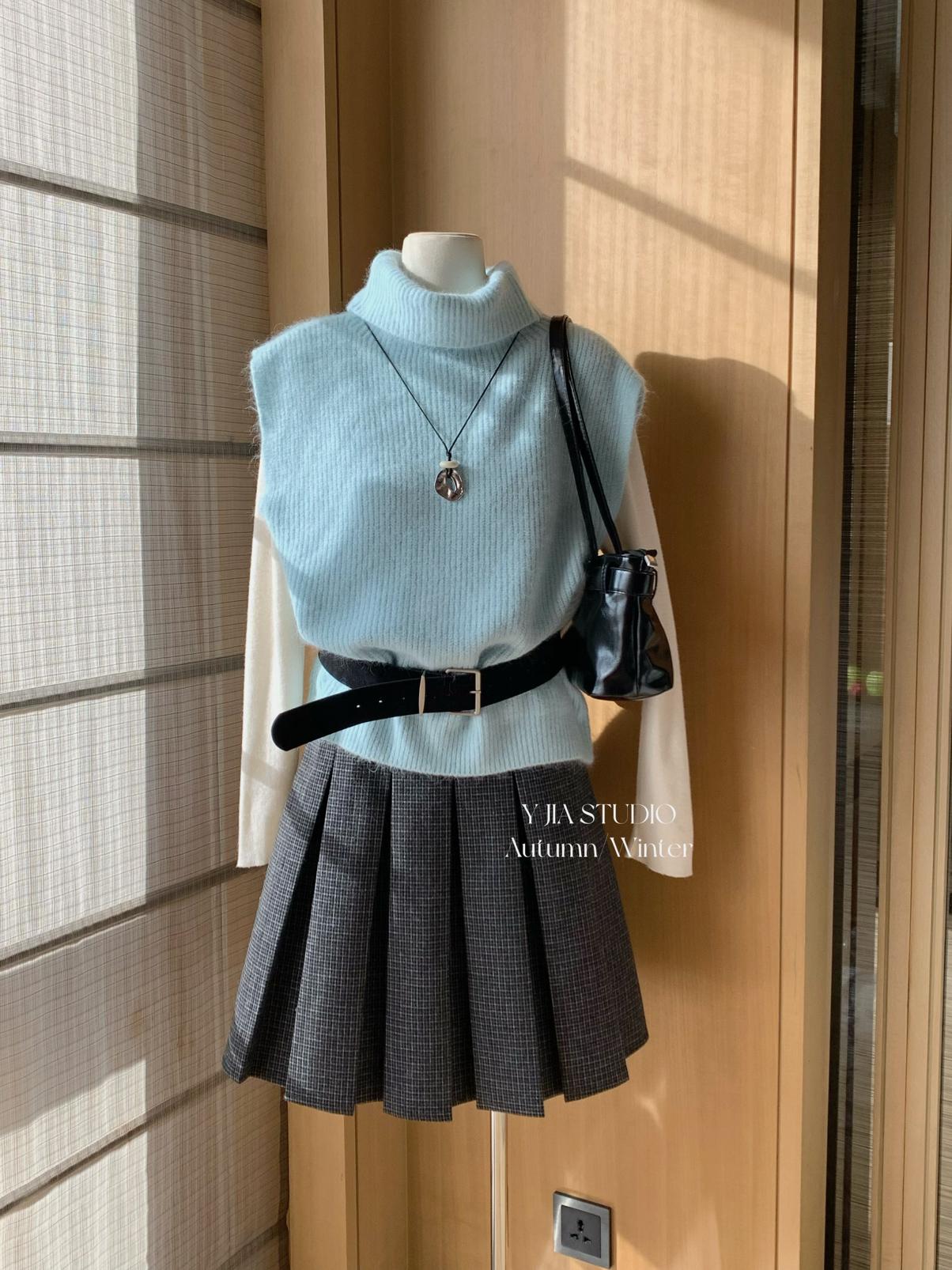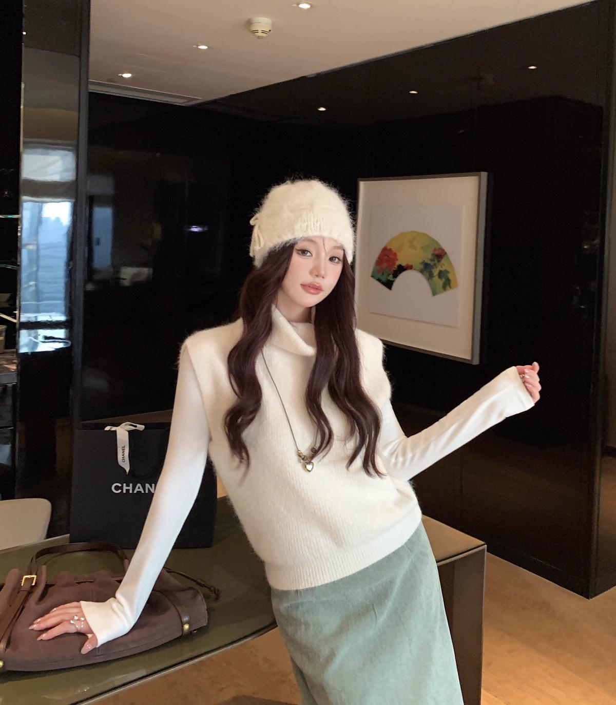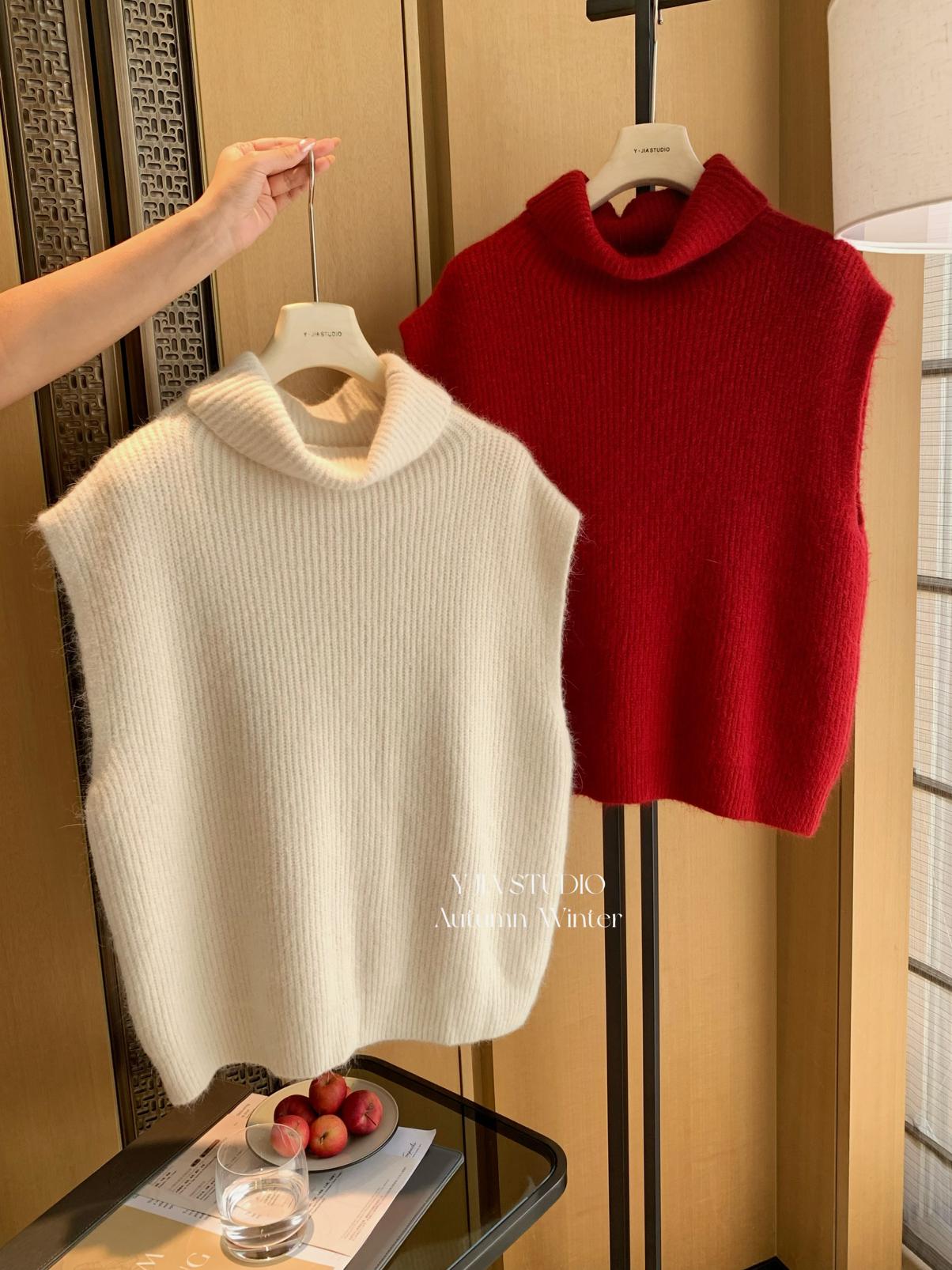 【C8362】馬卡龍堆堆領~秋冬疊搭神器 軟軟糯糯坑條高領保暖毛衣