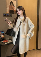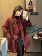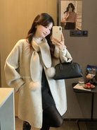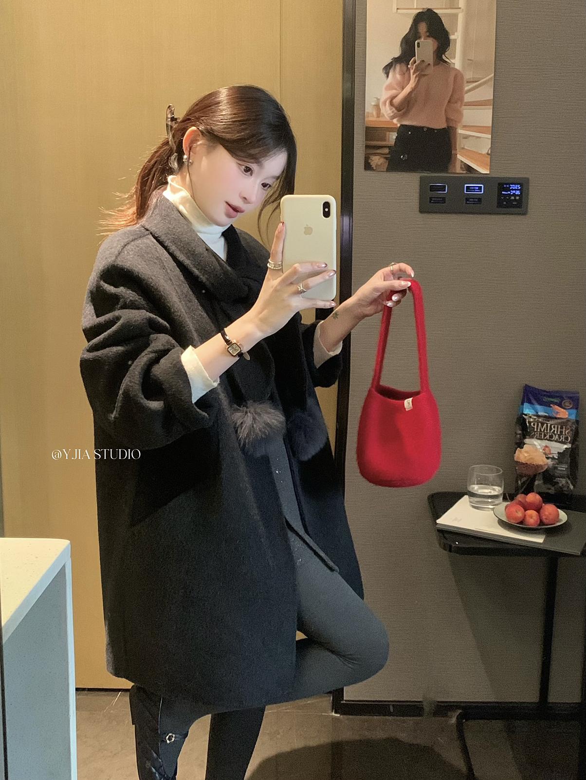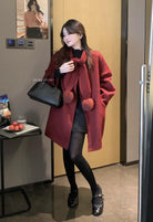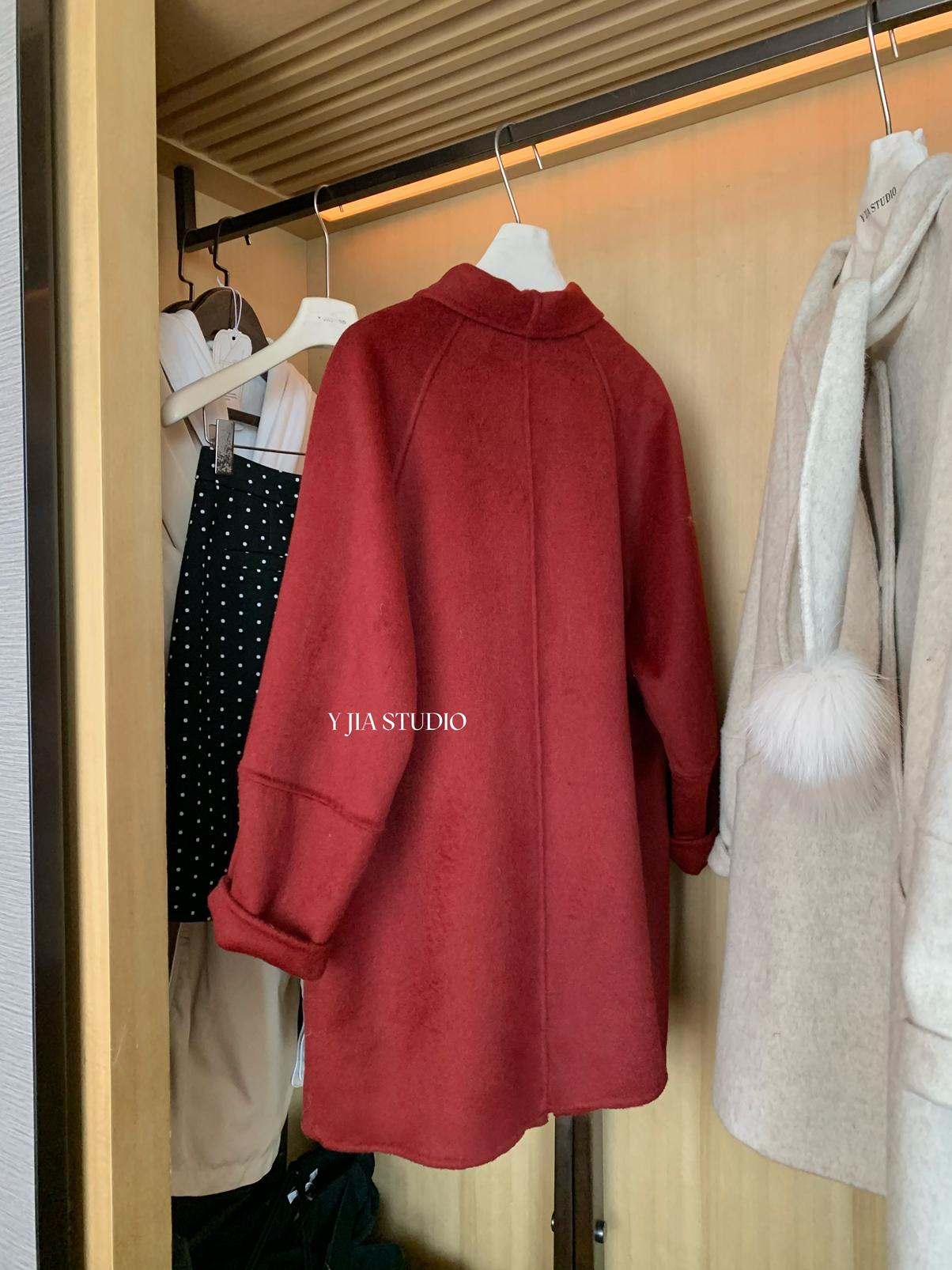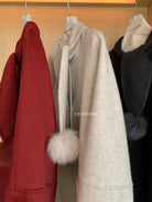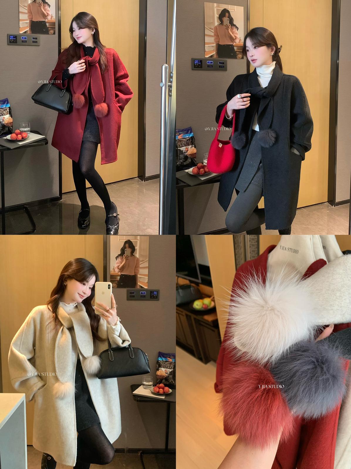 3. 【C8363】減齡可愛兔耳毛球圍脖雙面呢羊毛外套(含100%澳毛)