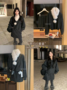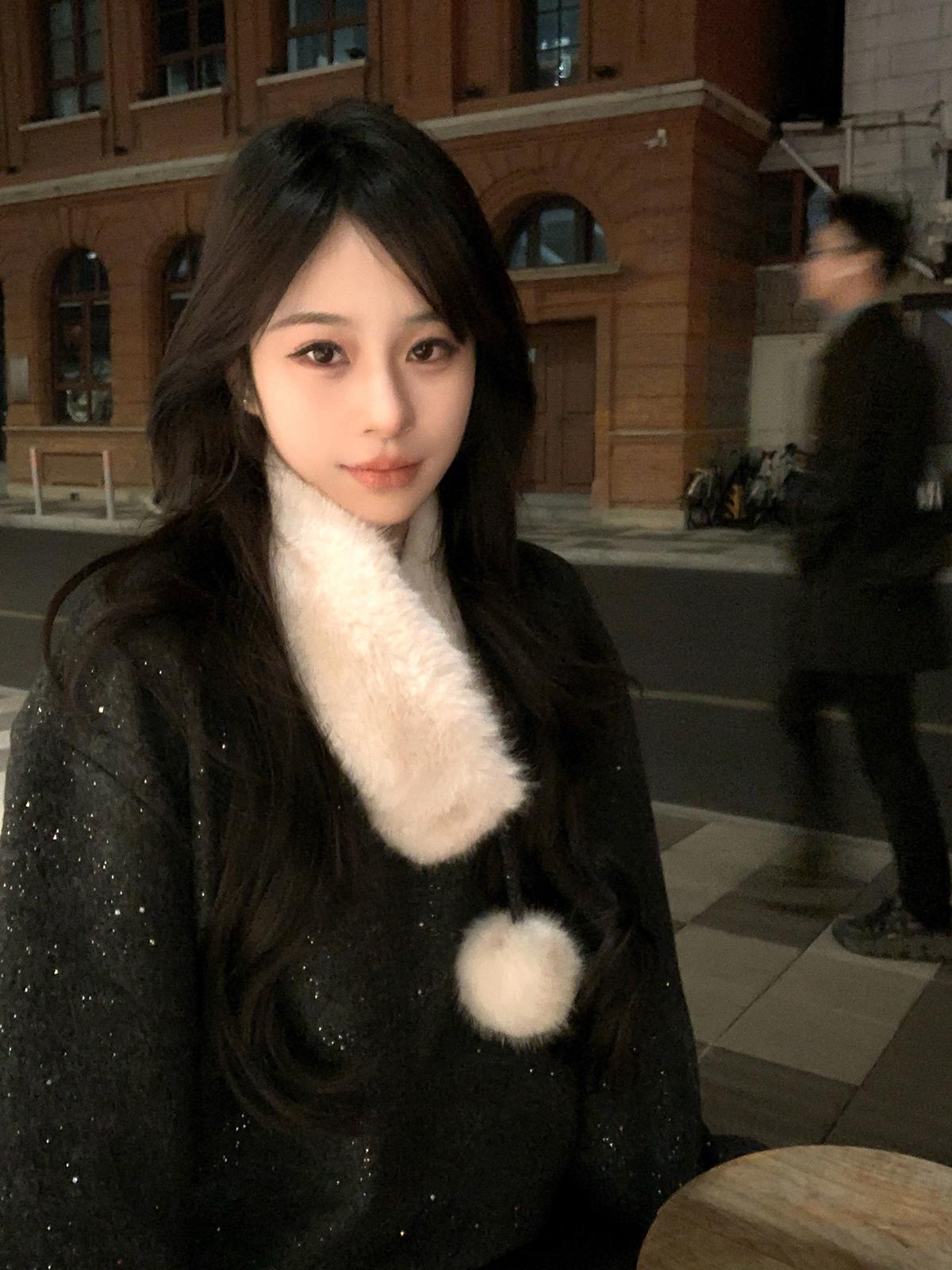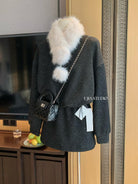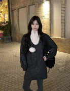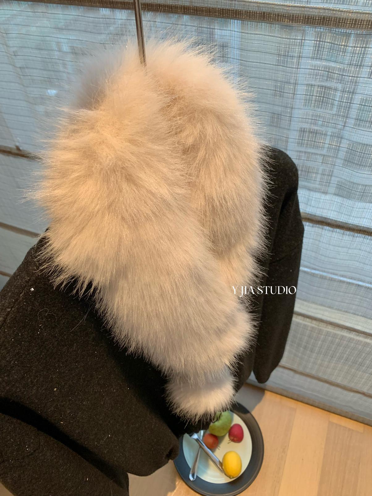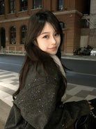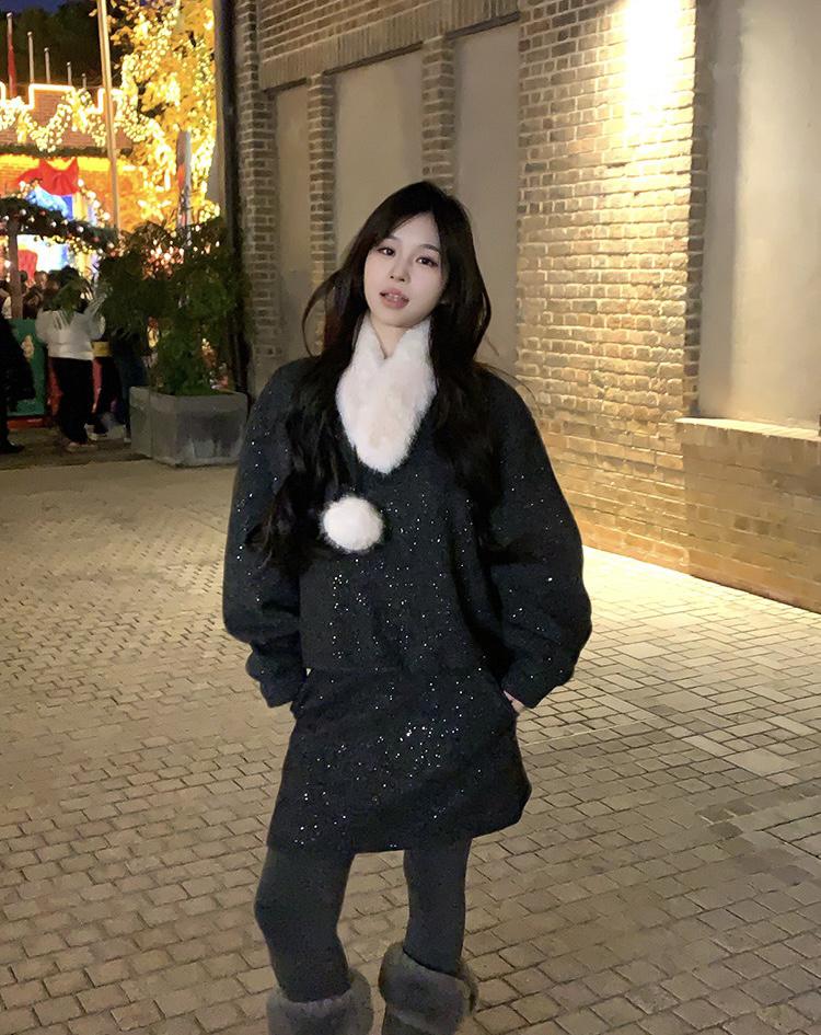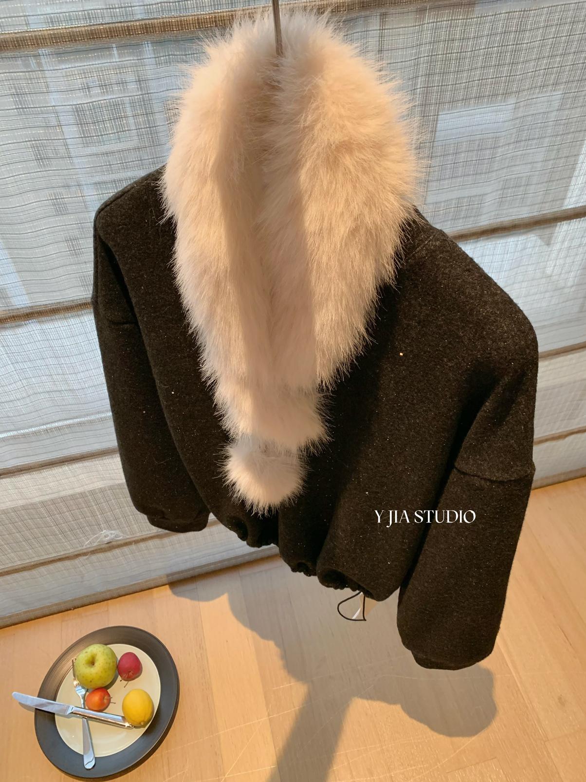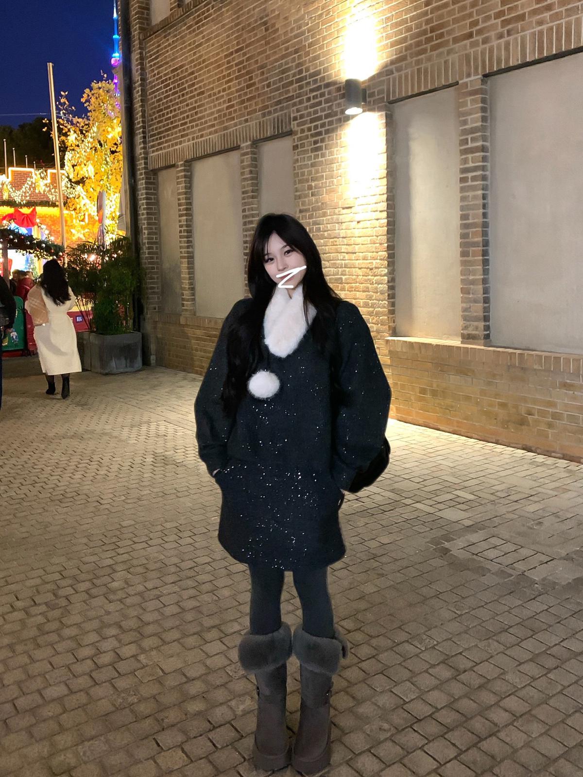 【C8365】亮閃閃套裝”高級感亮片圓領毛呢衛衣+高腰A字半身裙套裝(配可拆卸狐狸毛仿毛毛領)