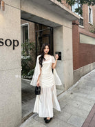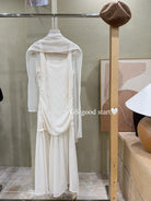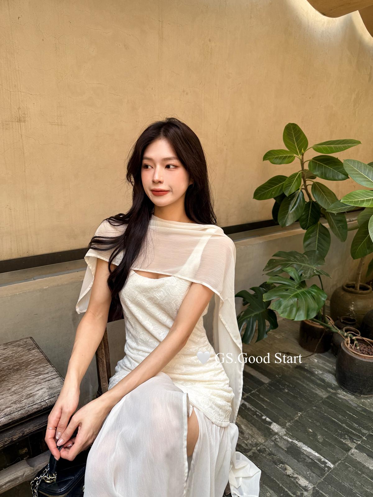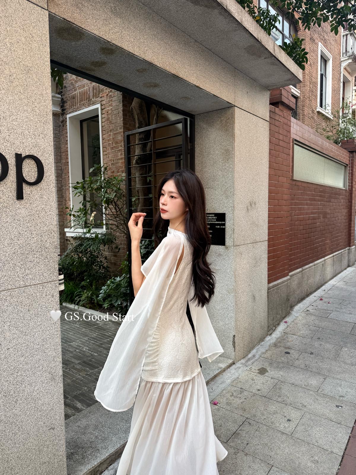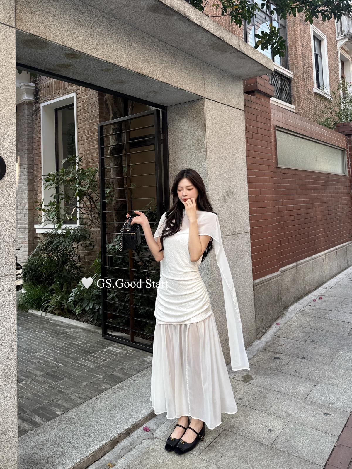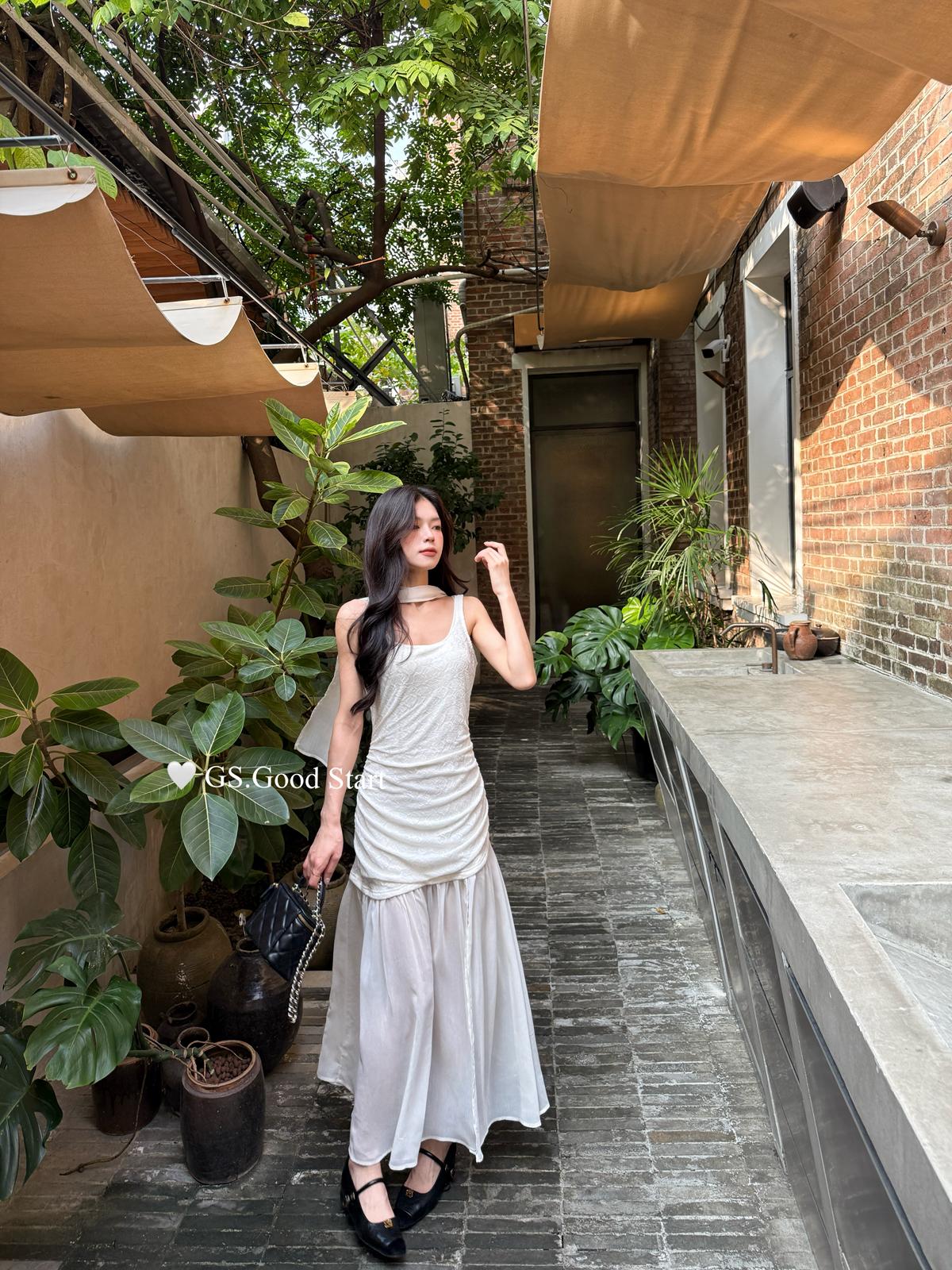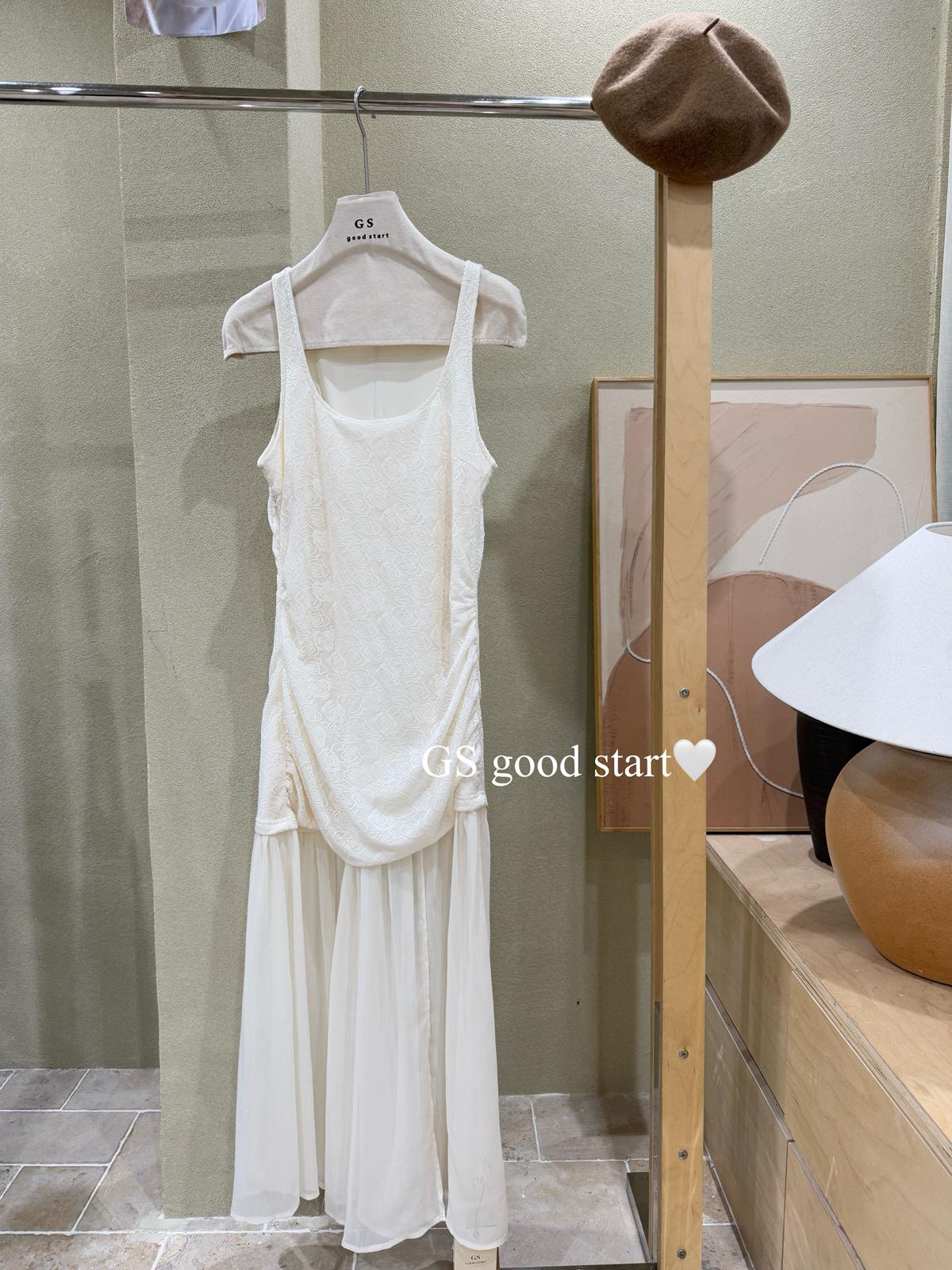 【C8369】美的很權威!氛圍女神~秒被種草!氣質溫柔拼接飄逸設計感連衣裙(配可拆卸飄帶)