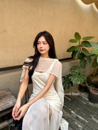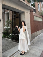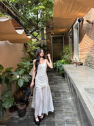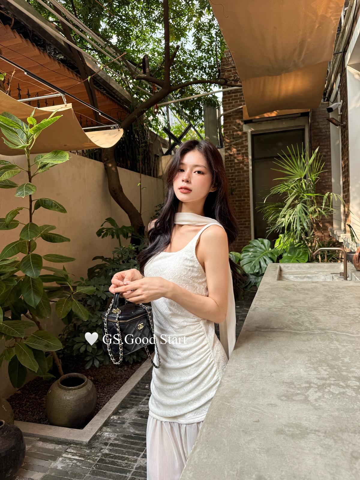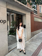 3. 【C8369】美的很權威!氛圍女神~秒被種草!氣質溫柔拼接飄逸設計感連衣裙(配可拆卸飄帶)
