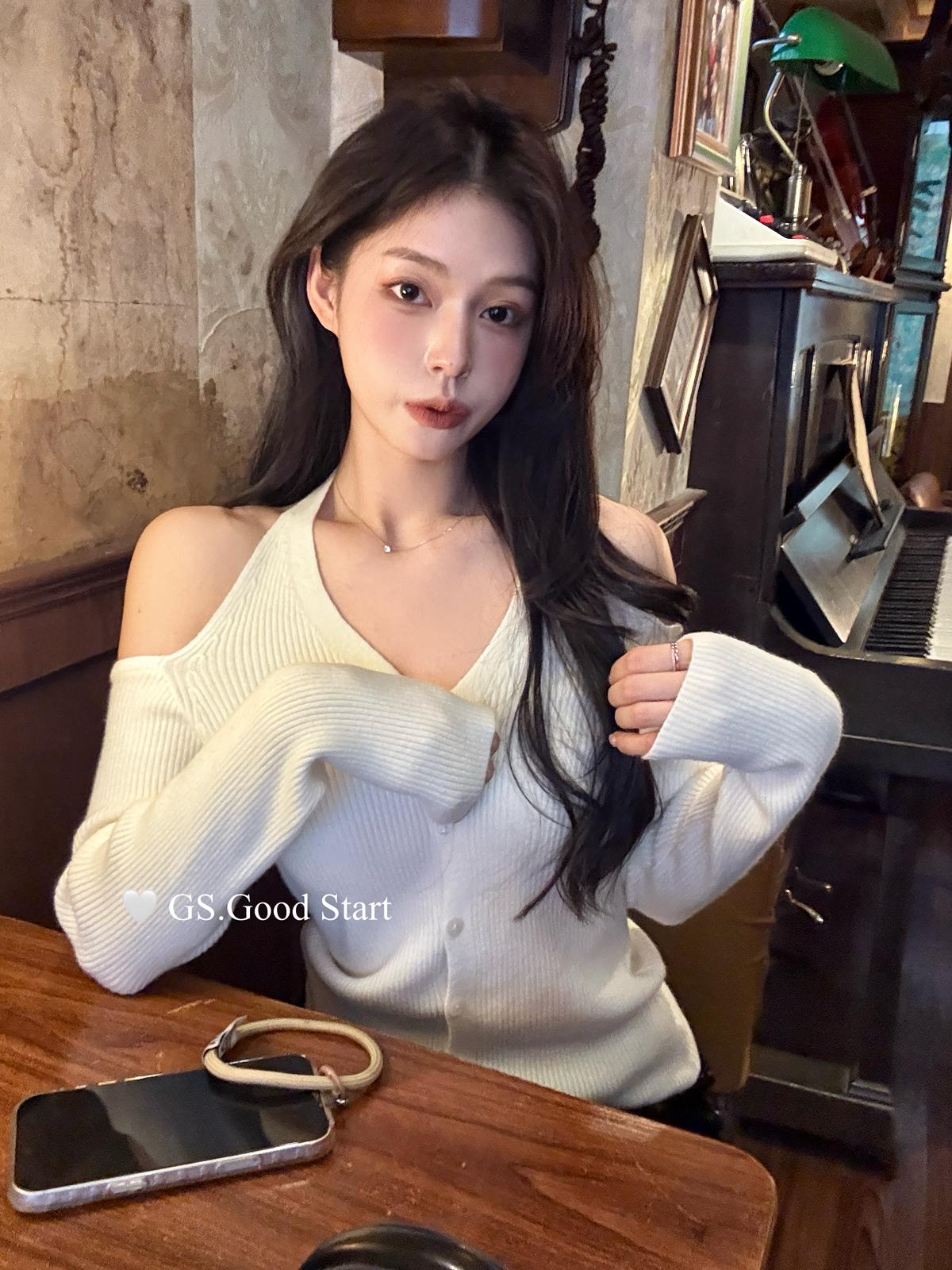 3. 【C8370】經典好賣系列!純欲滿分*閉眼入~冬季純欲氣質掛脖修身針織開衫