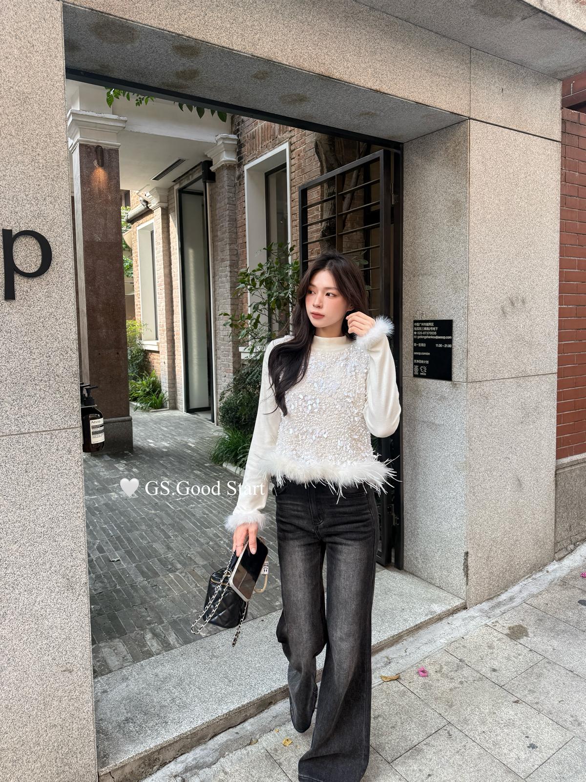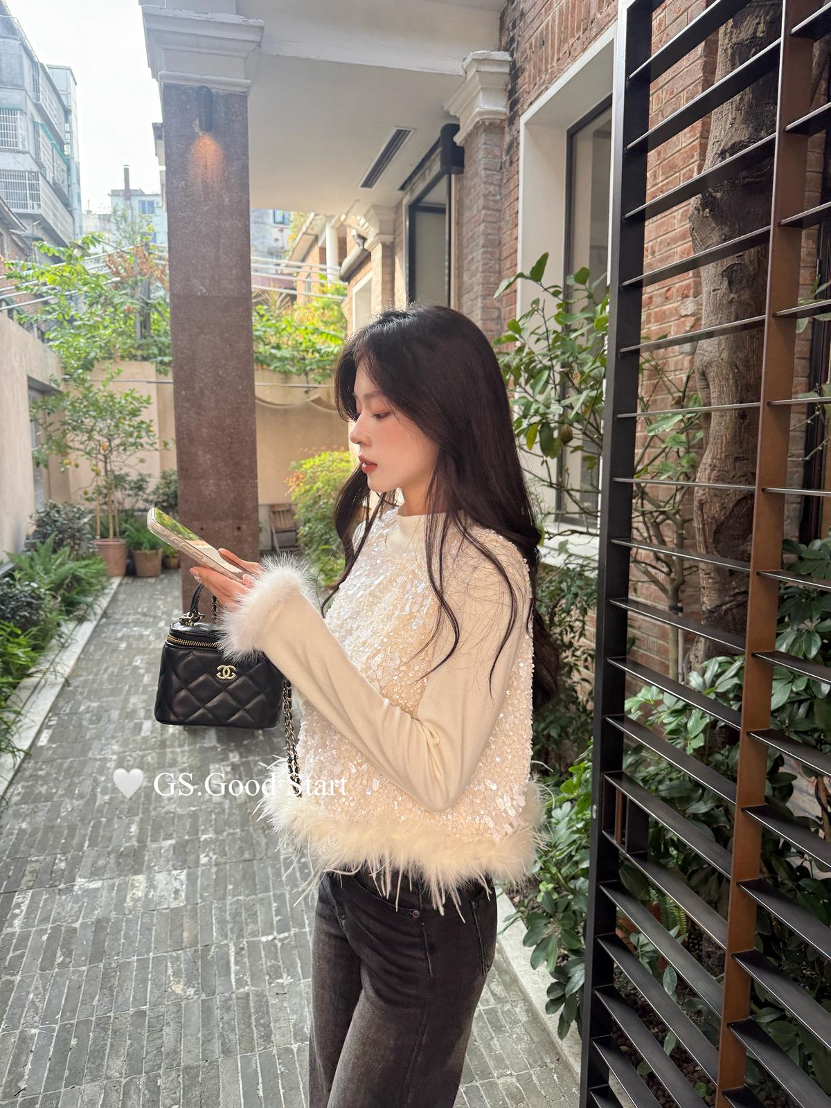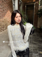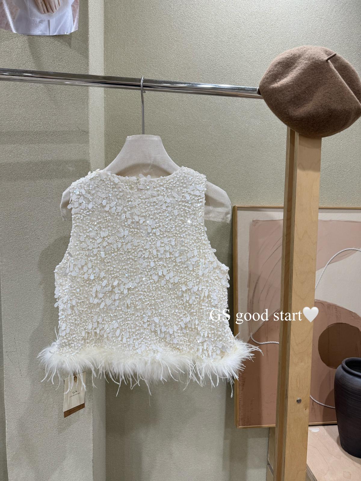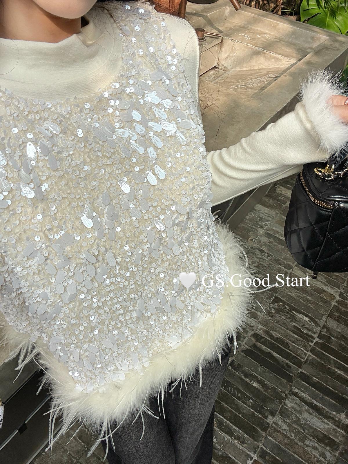 【C8371】首推*節日款!奢感亮片*人人誇美!冬浪漫氣質氛圍感亮片鴕鳥毛馬甲