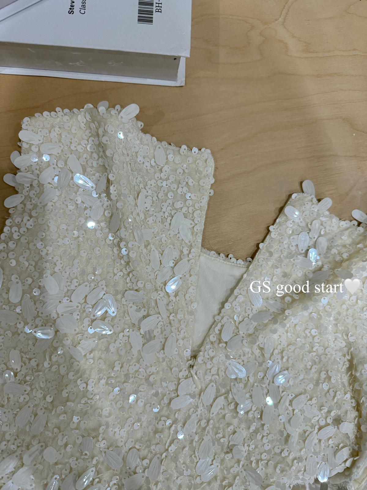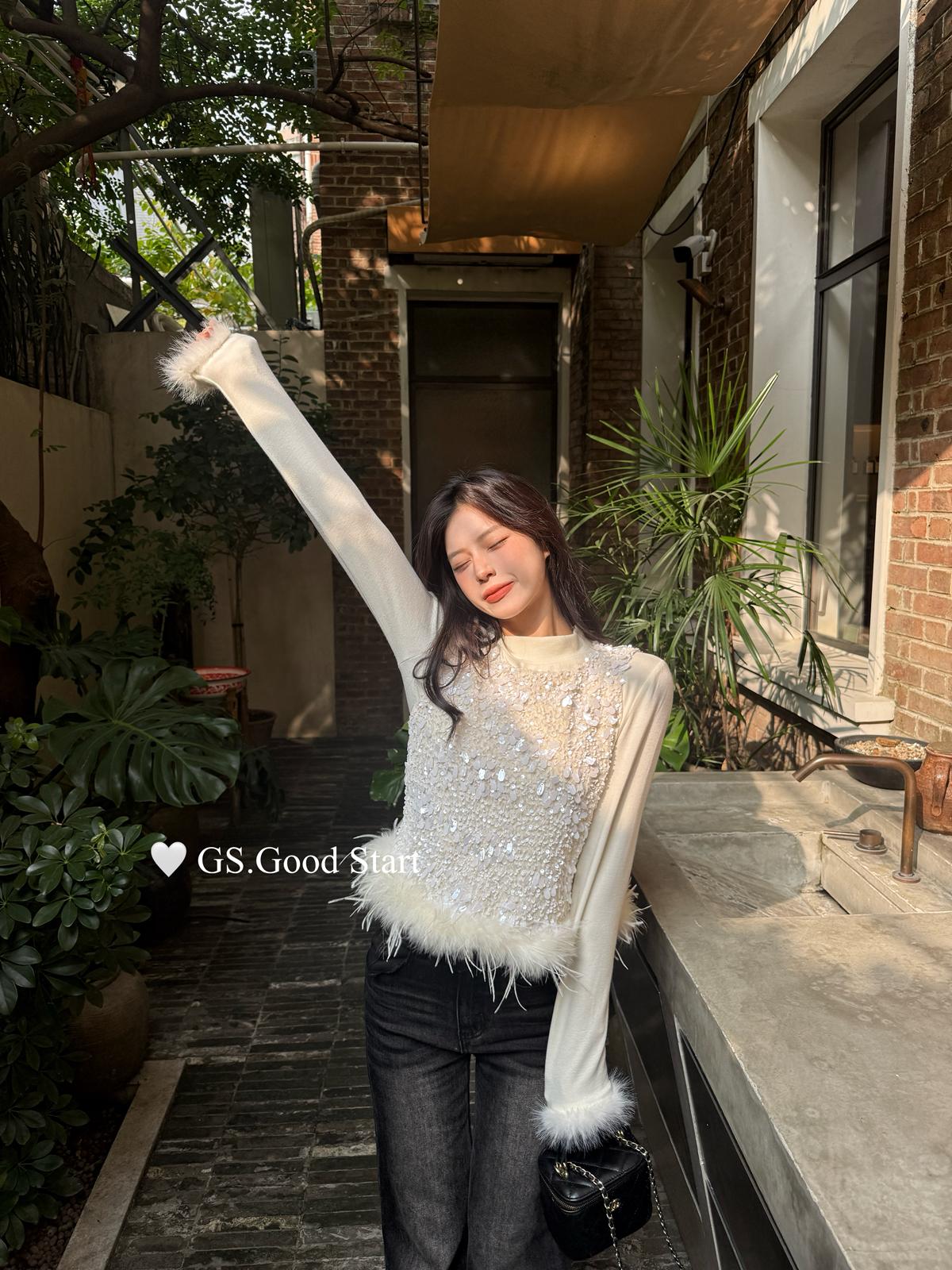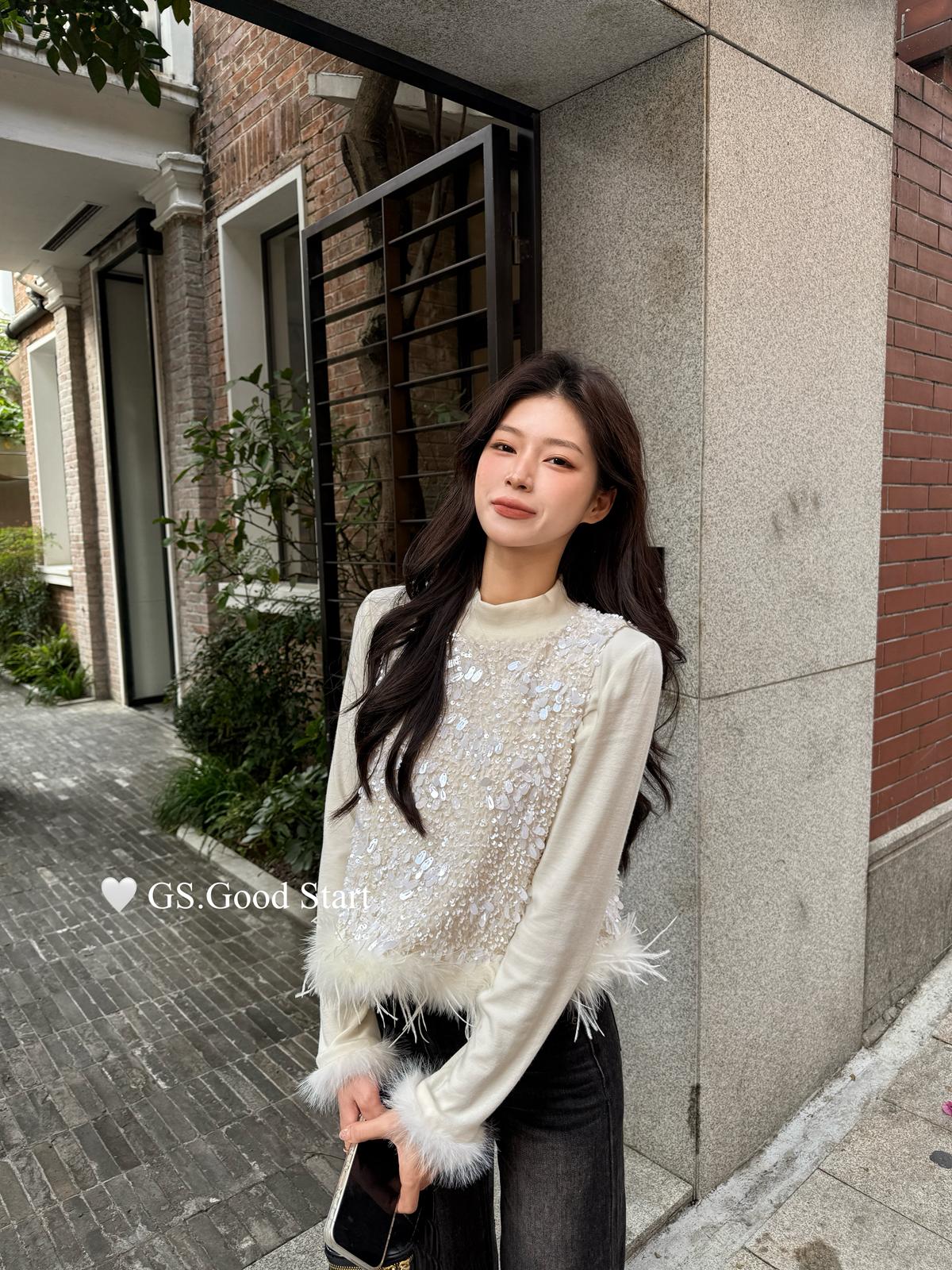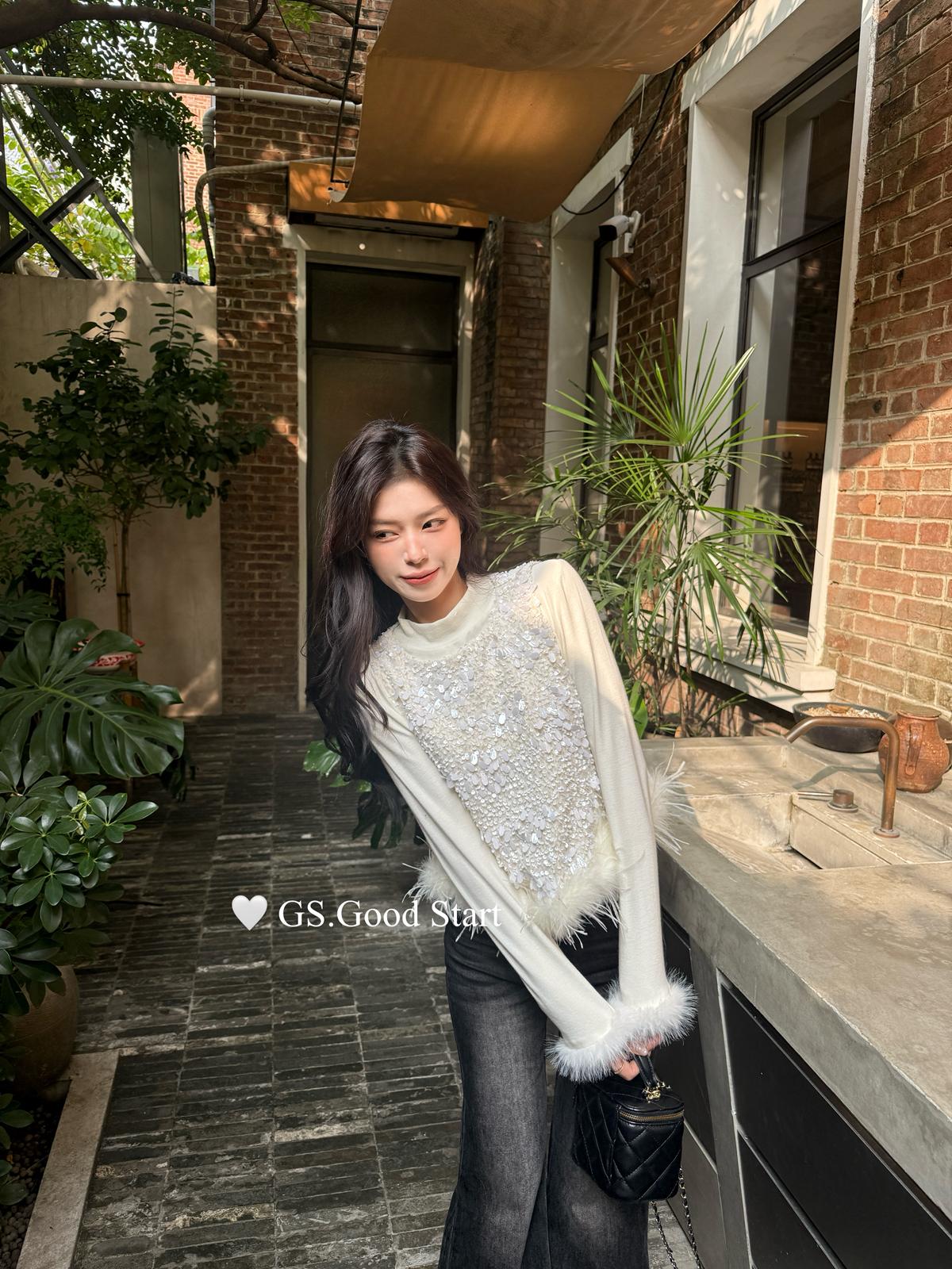 【C8371】首推*節日款!奢感亮片*人人誇美!冬浪漫氣質氛圍感亮片鴕鳥毛馬甲