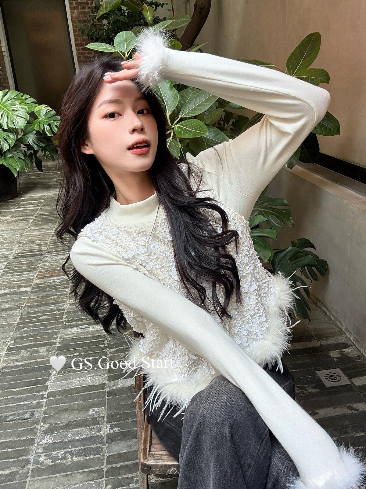 3. 【C8371】首推*節日款!奢感亮片*人人誇美!冬浪漫氣質氛圍感亮片鴕鳥毛馬甲