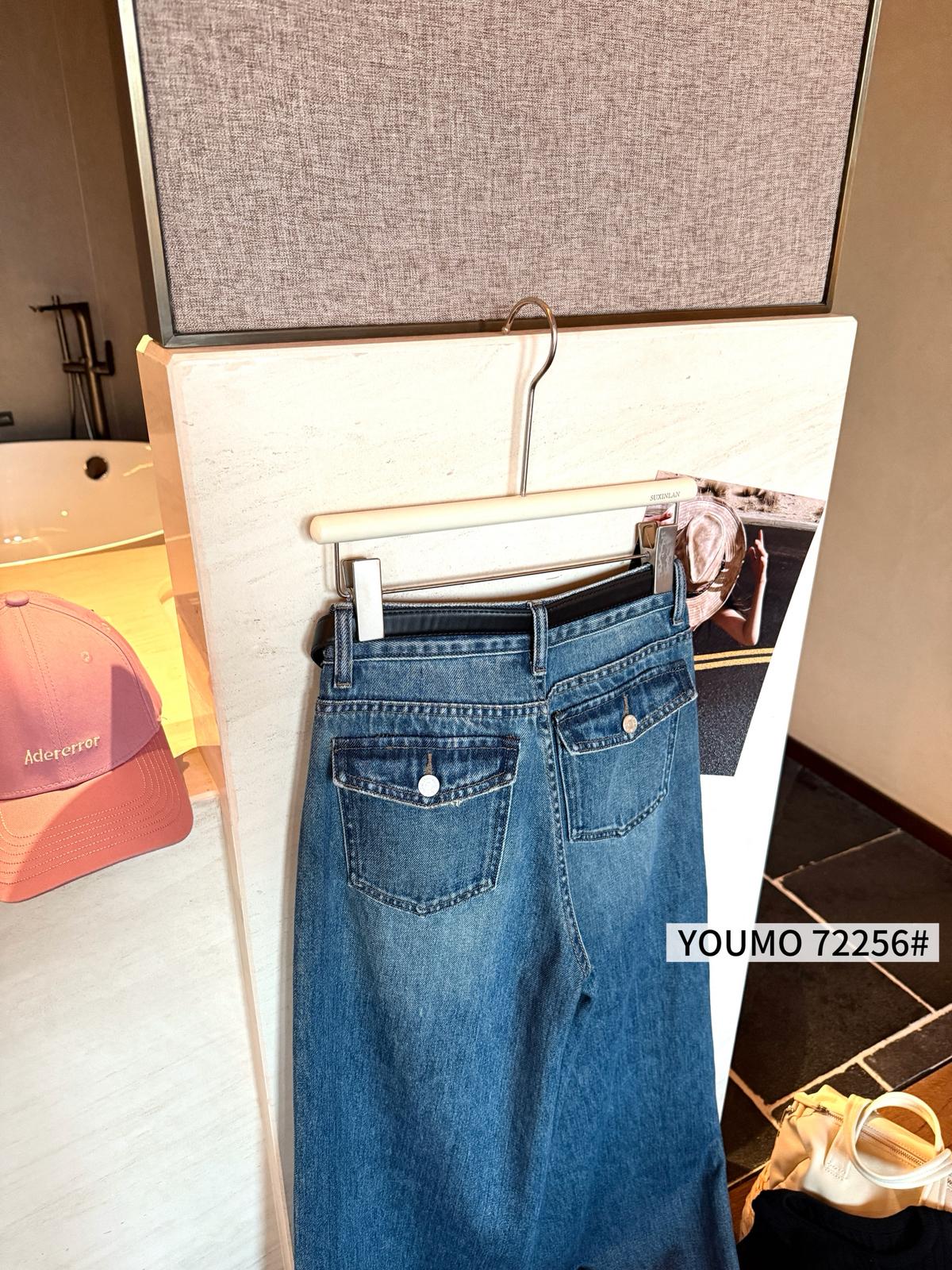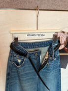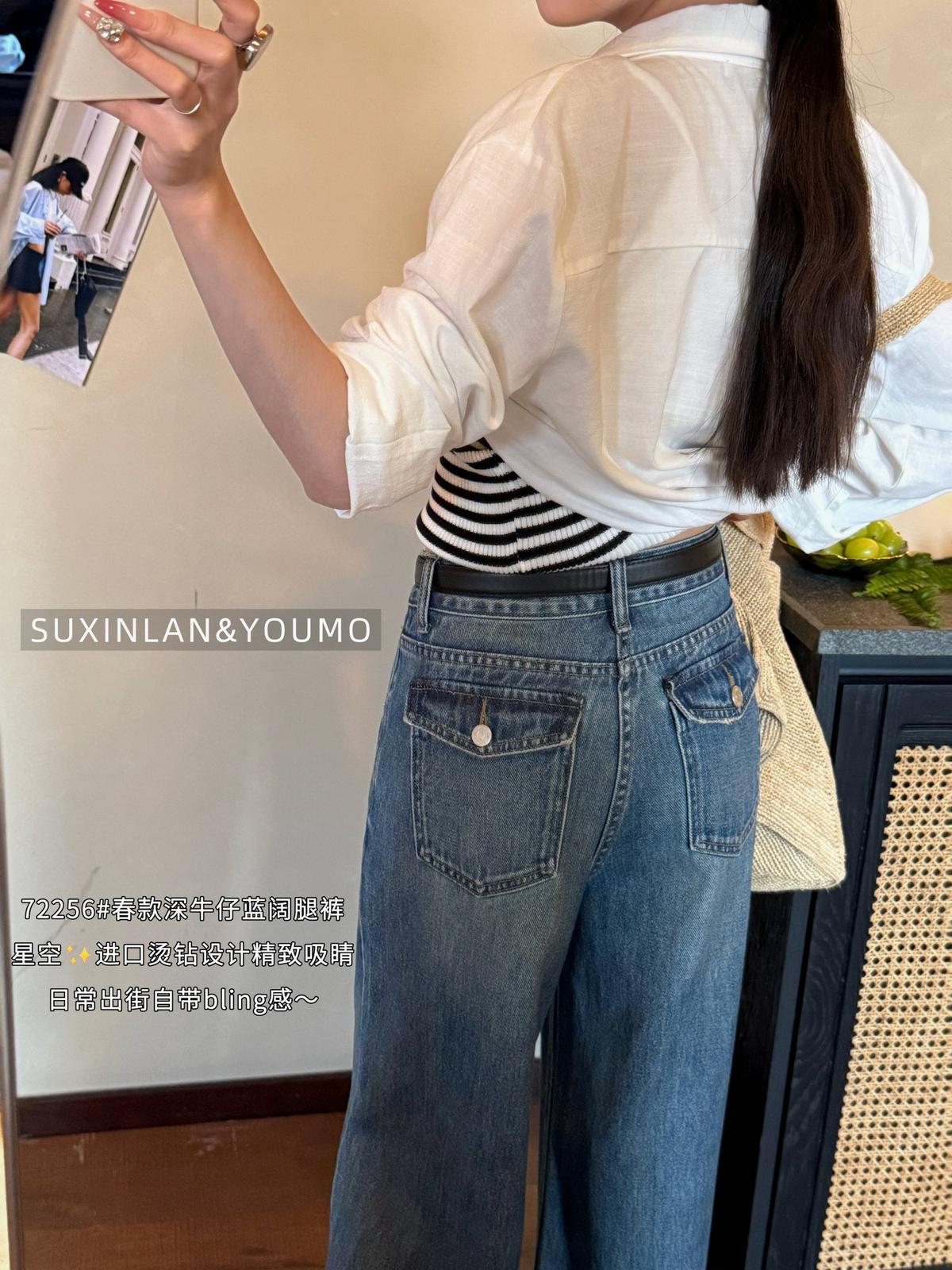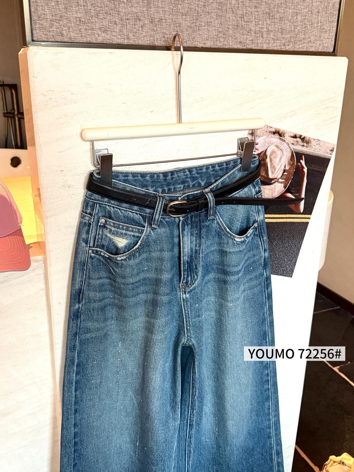 3. 【C8376】法式復古風後口袋設計闊腿牛仔褲(配腰帶)(垂感十足)