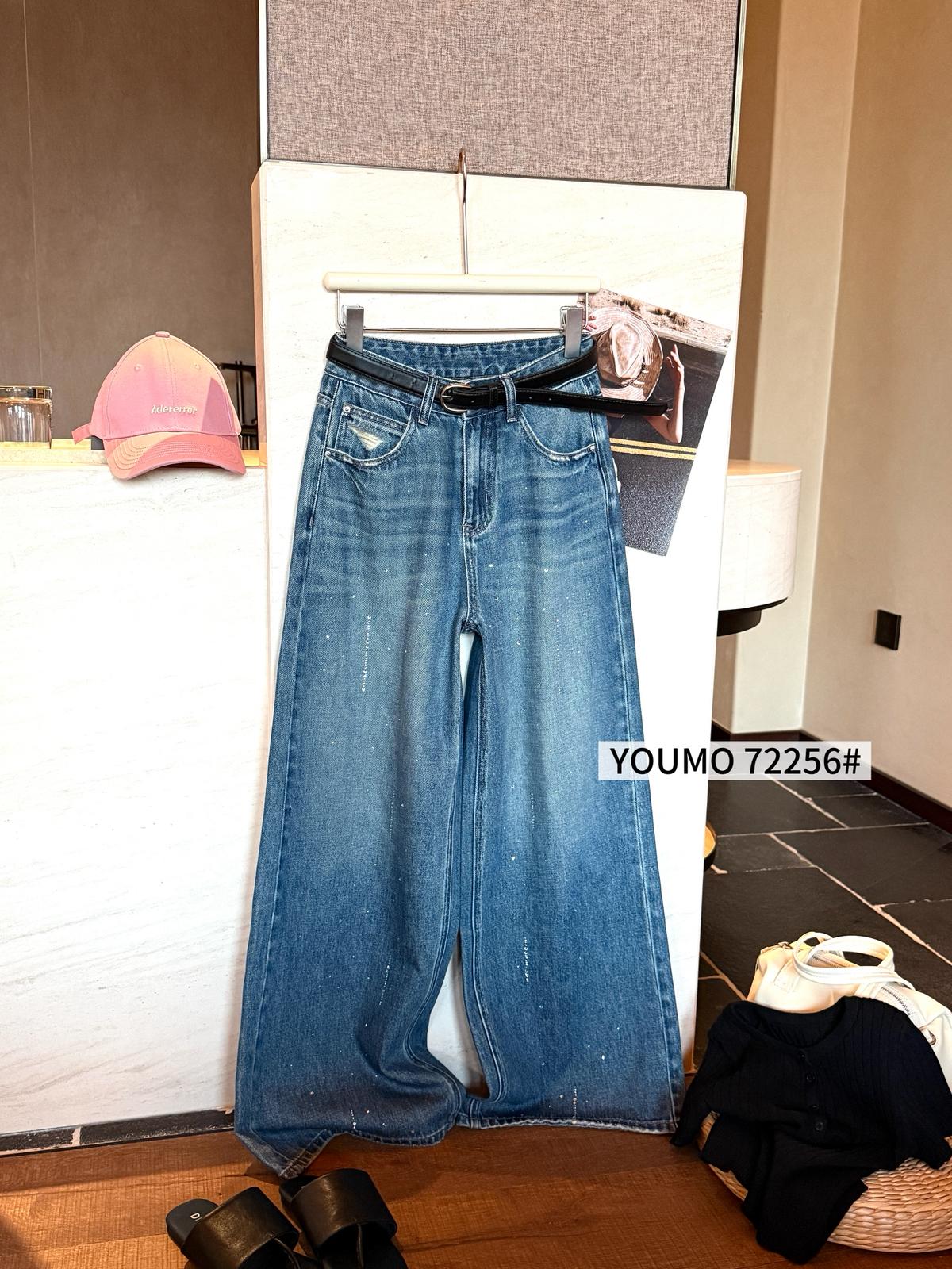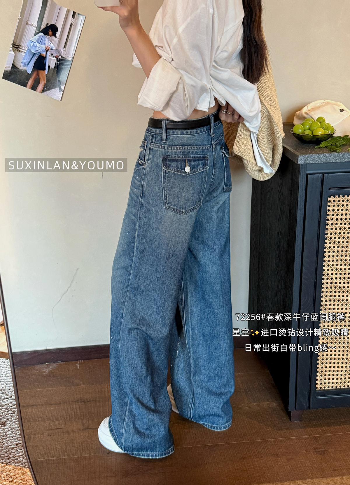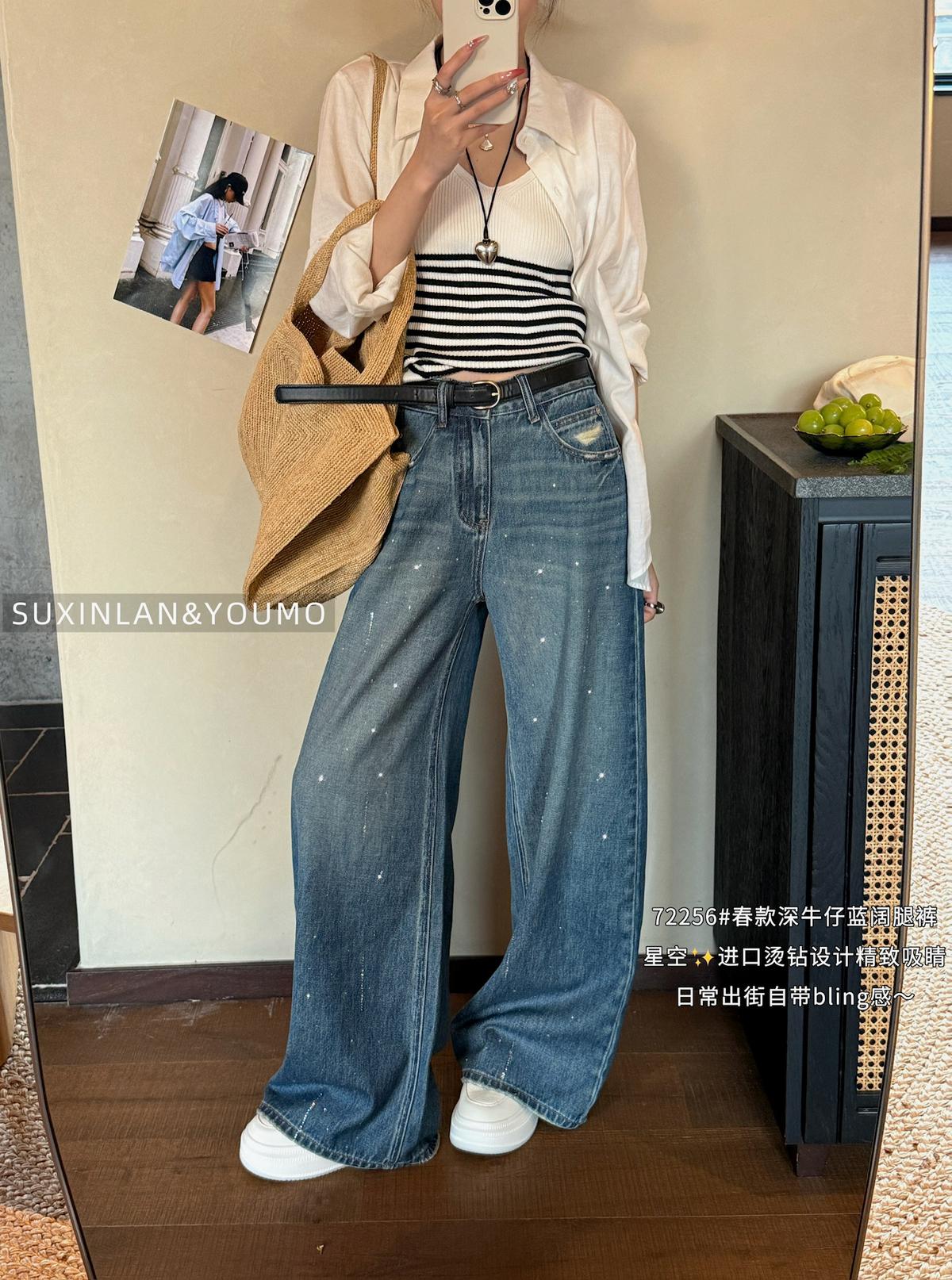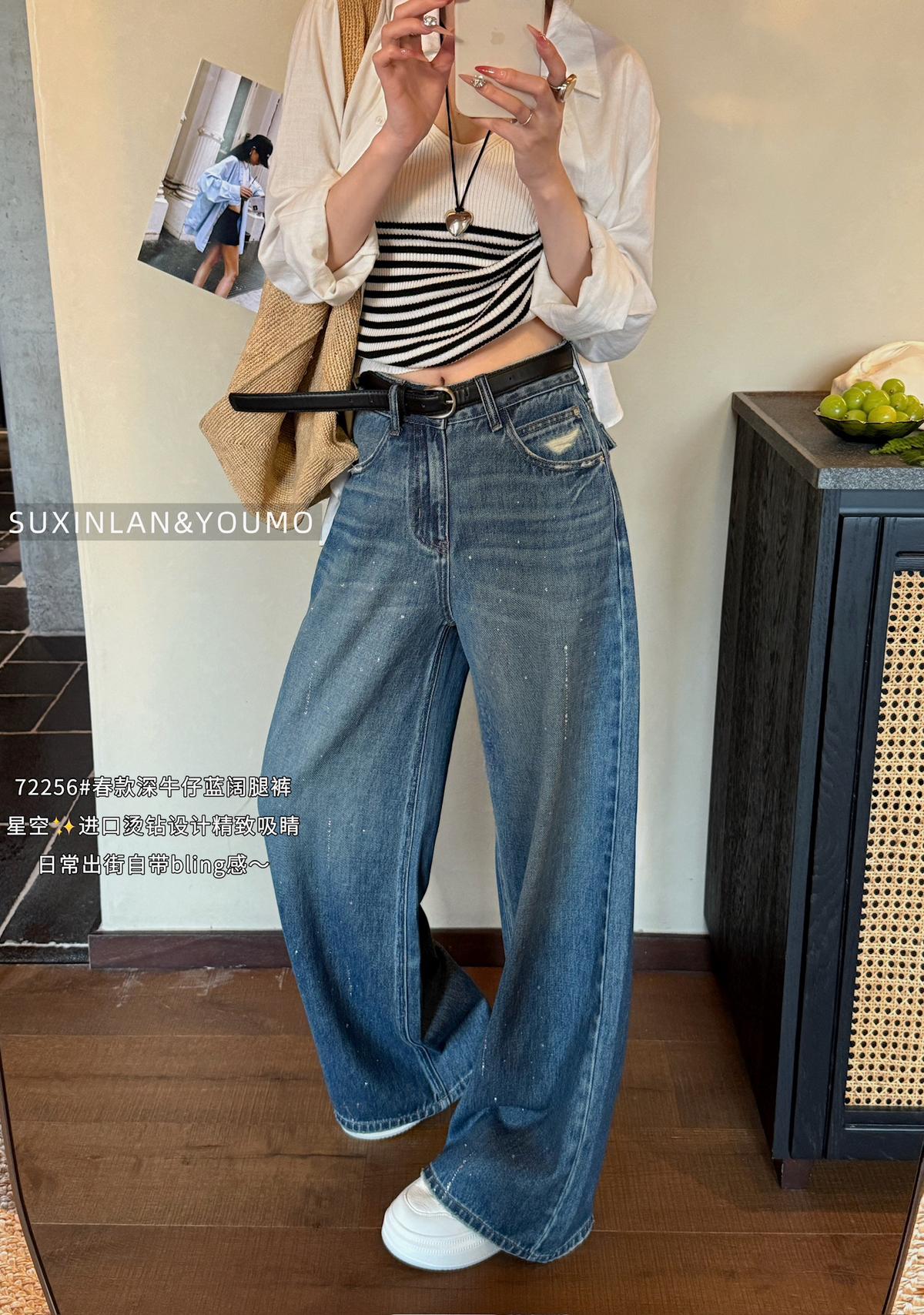 3. 【C8376】法式復古風後口袋設計闊腿牛仔褲(配腰帶)(垂感十足)