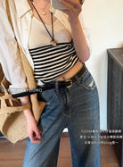 【C8376】法式復古風後口袋設計闊腿牛仔褲(配腰帶)(垂感十足)
