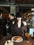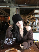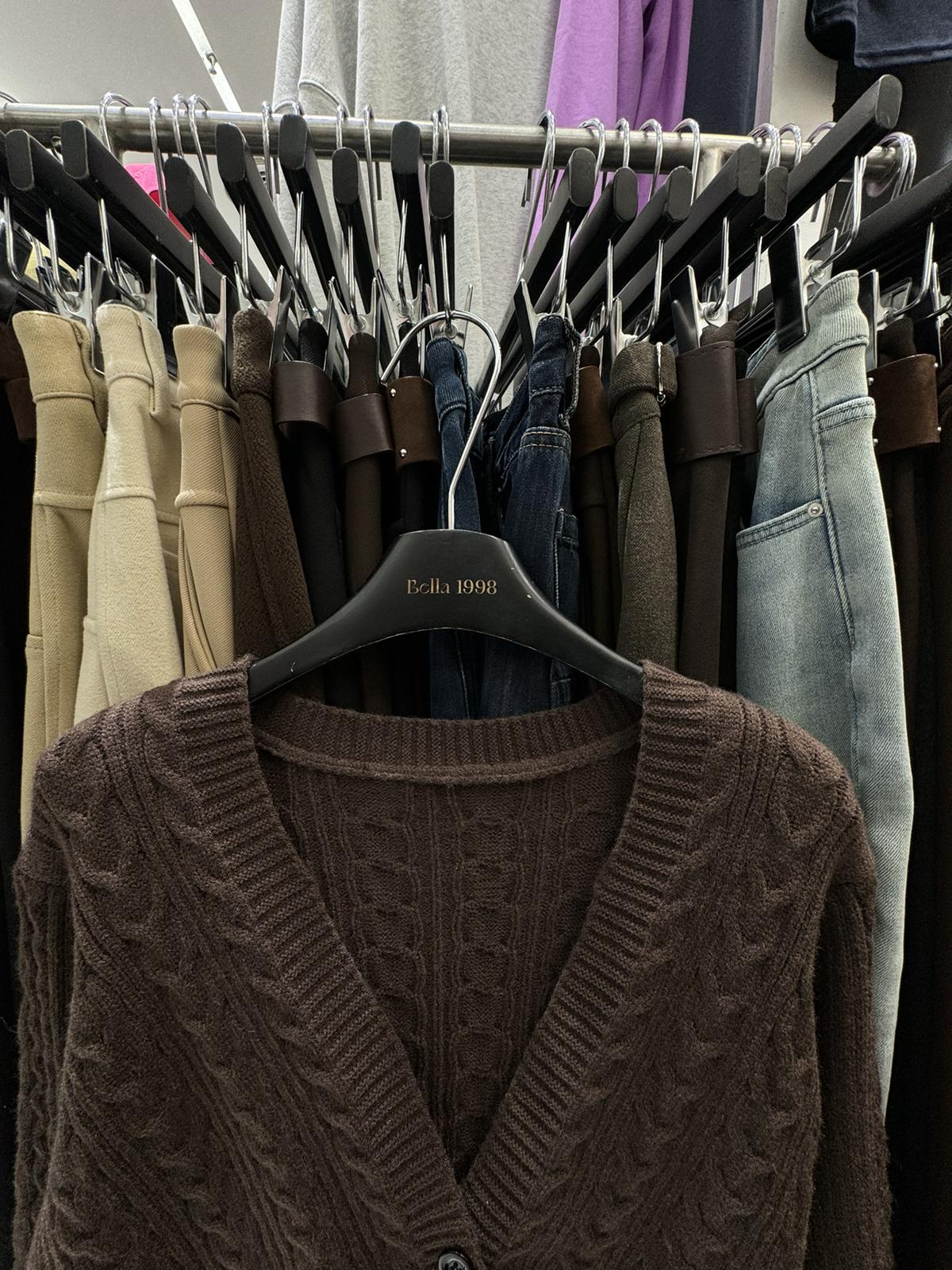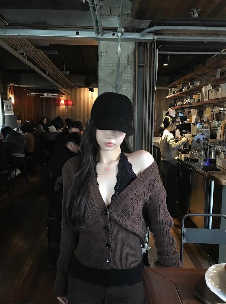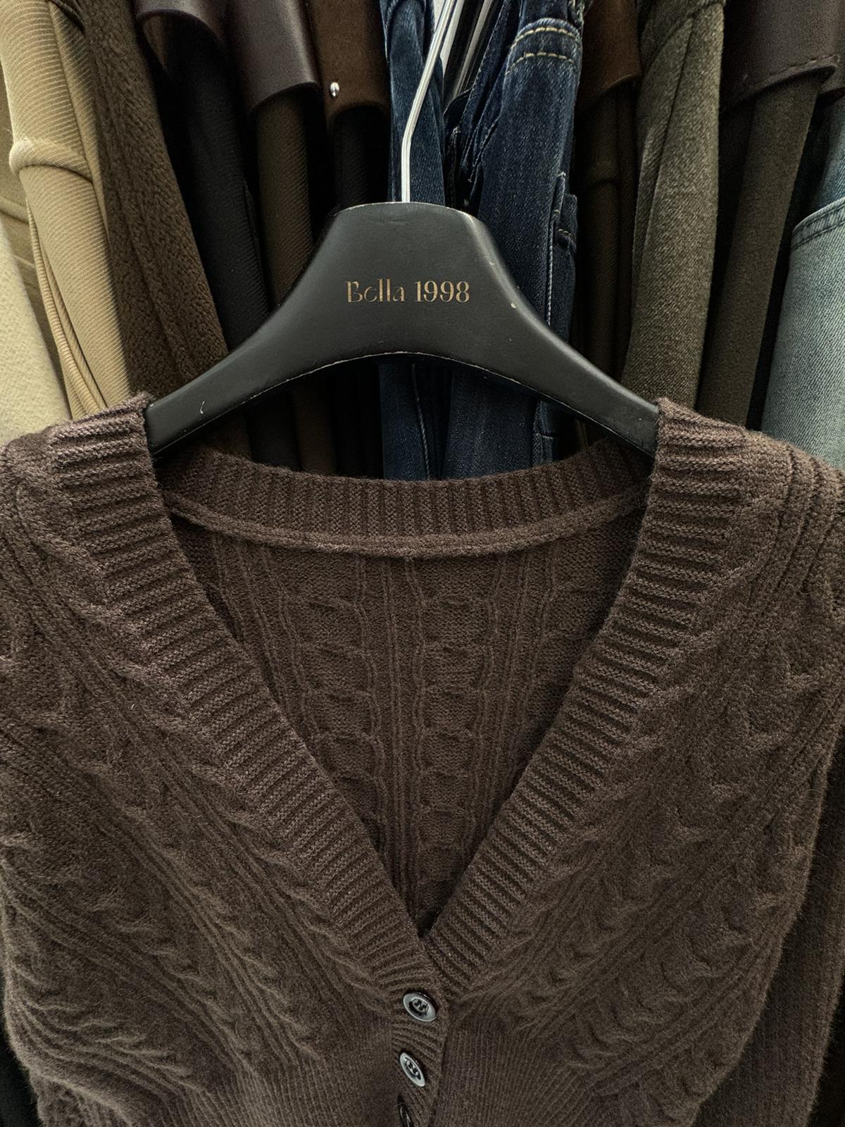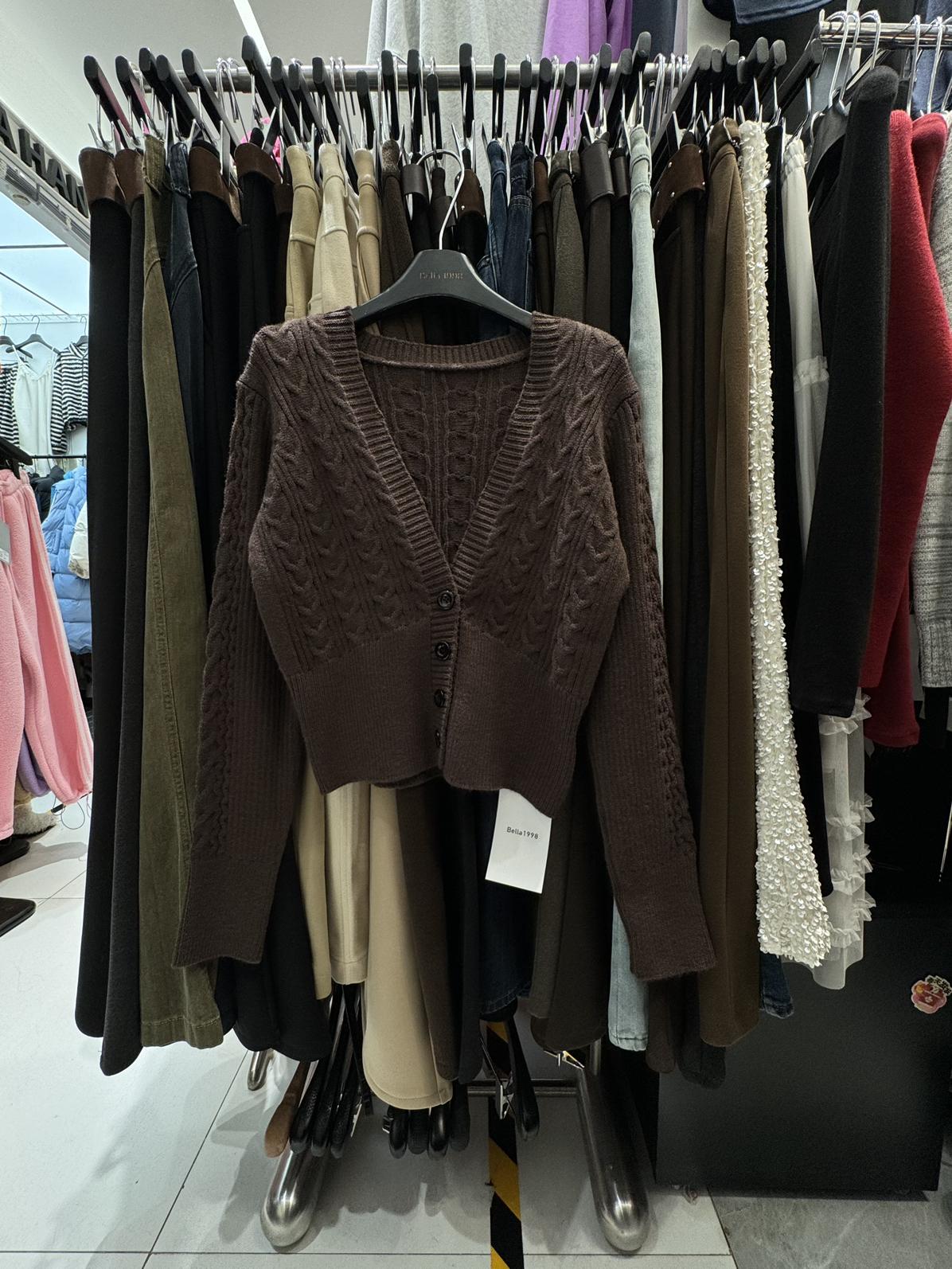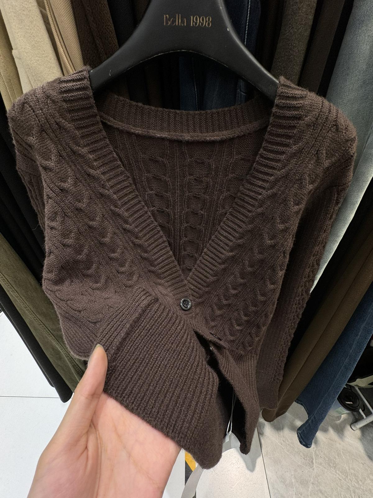 3. 【C8380】美式復古美拉徳咖色辣妹性感絞花修身外套保暖毛衣