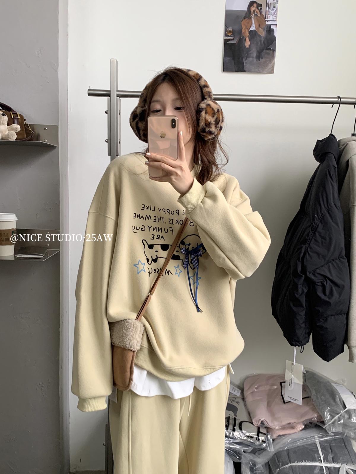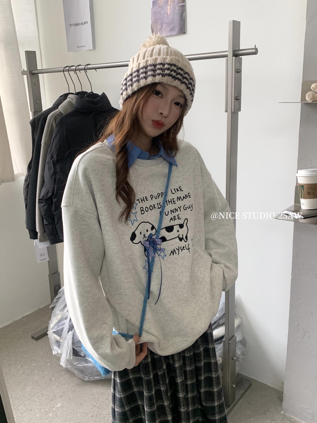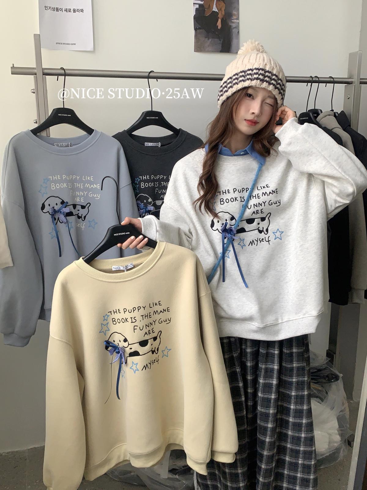 【C8388】小狗工藝印花加絨薄絨衛衣